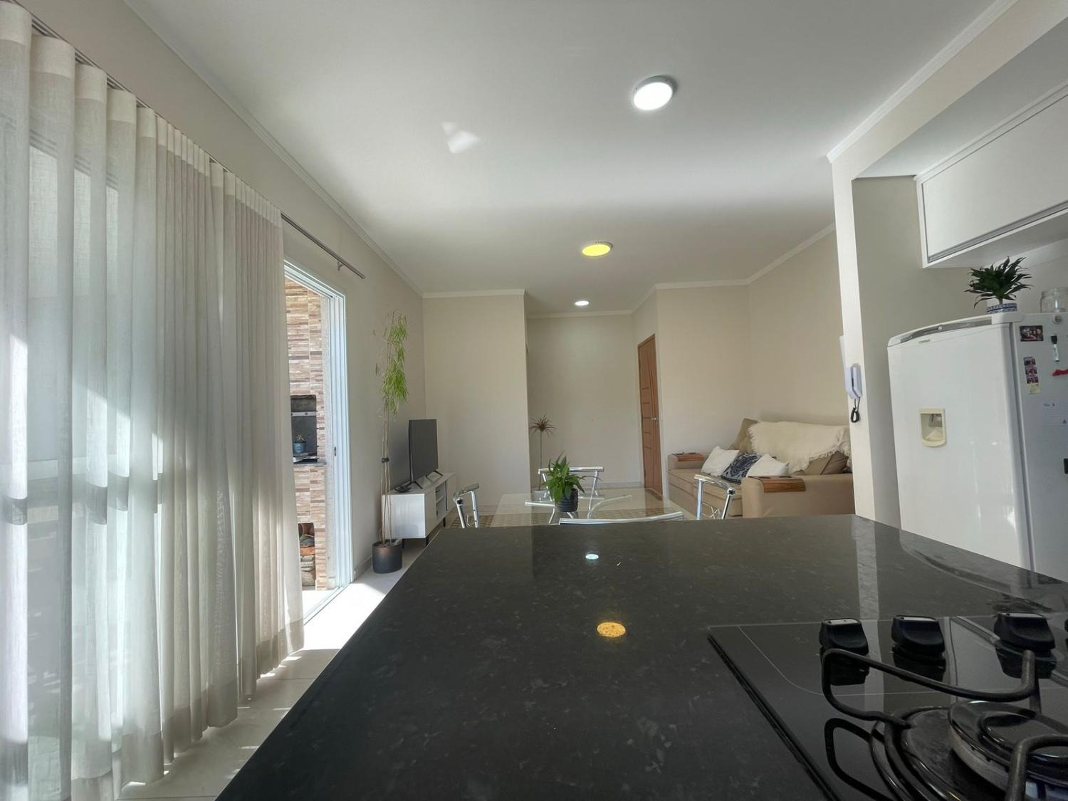 Apartamento tem 2 dormitórios sendo 1 suíte, sala ampla com varanda gourmet com churrasqueira, sacada na suíte, 2 vagas cobertas livres, condomínio e iptu com valor baixo, elevador e câmeras de segurança, armários planejados, banheiros modernos, ampla lavanderia, Sala ampla para 2 ambientes integrada a cozinha e varanda