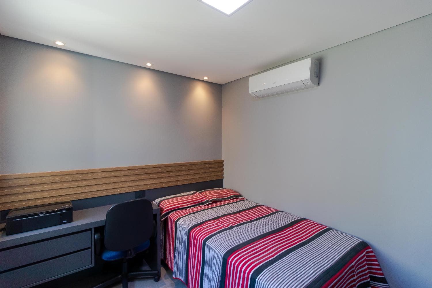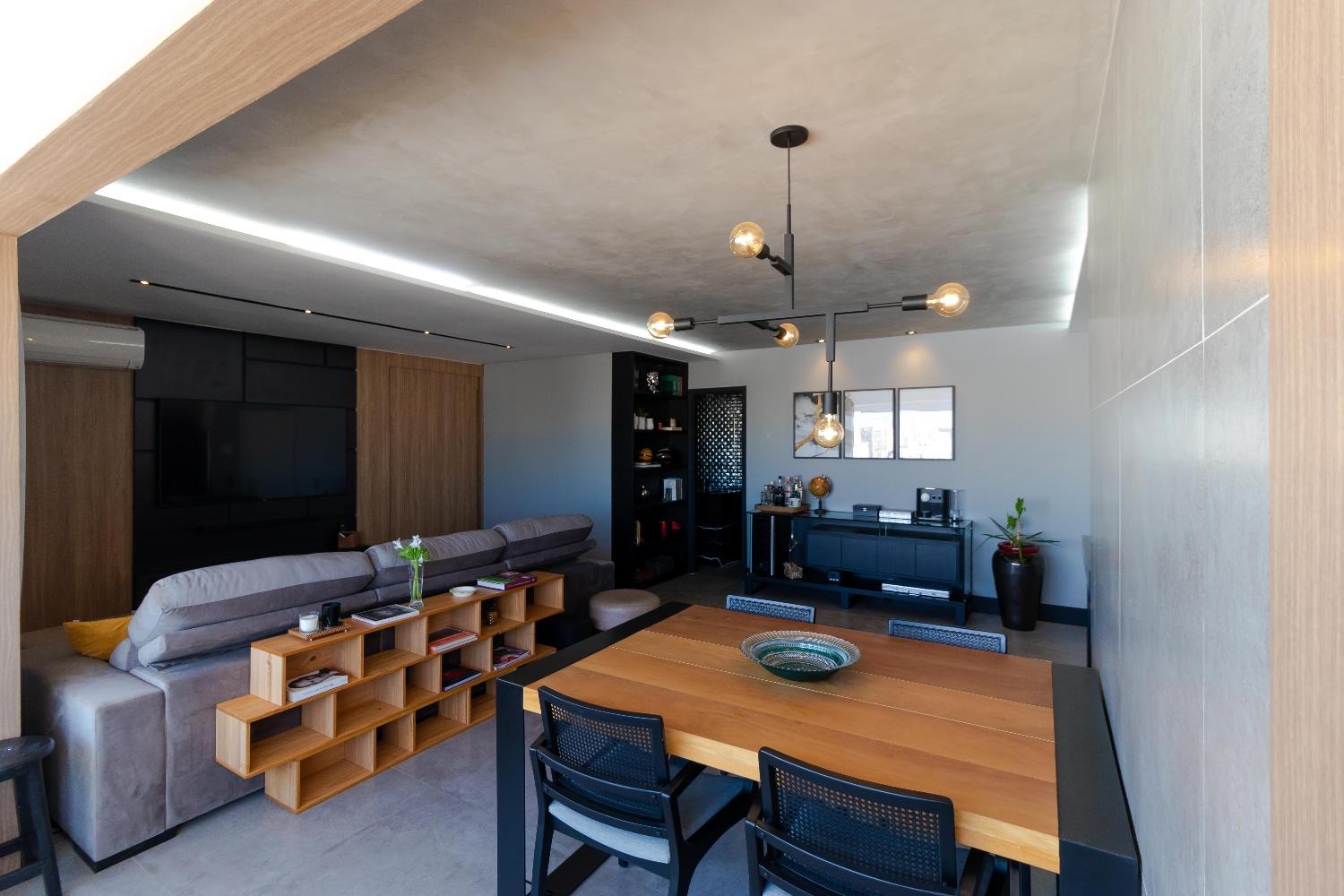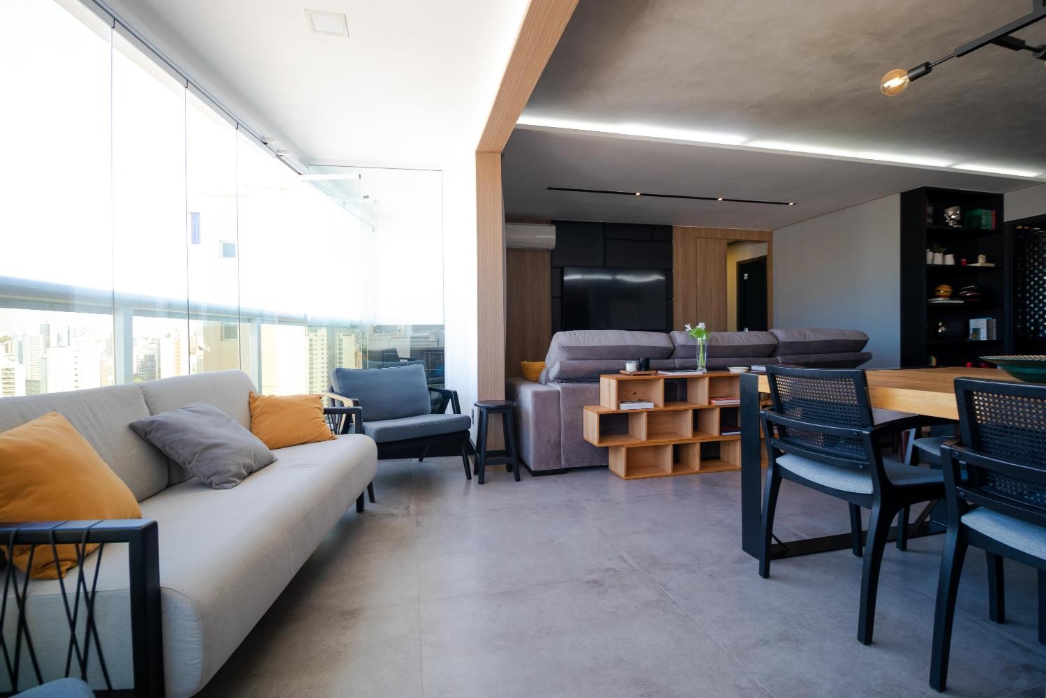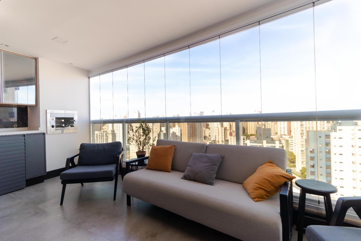 Todo planejado, com ar-condicionado, cortinas elétricas, mobiliário incluso pronto para morar.