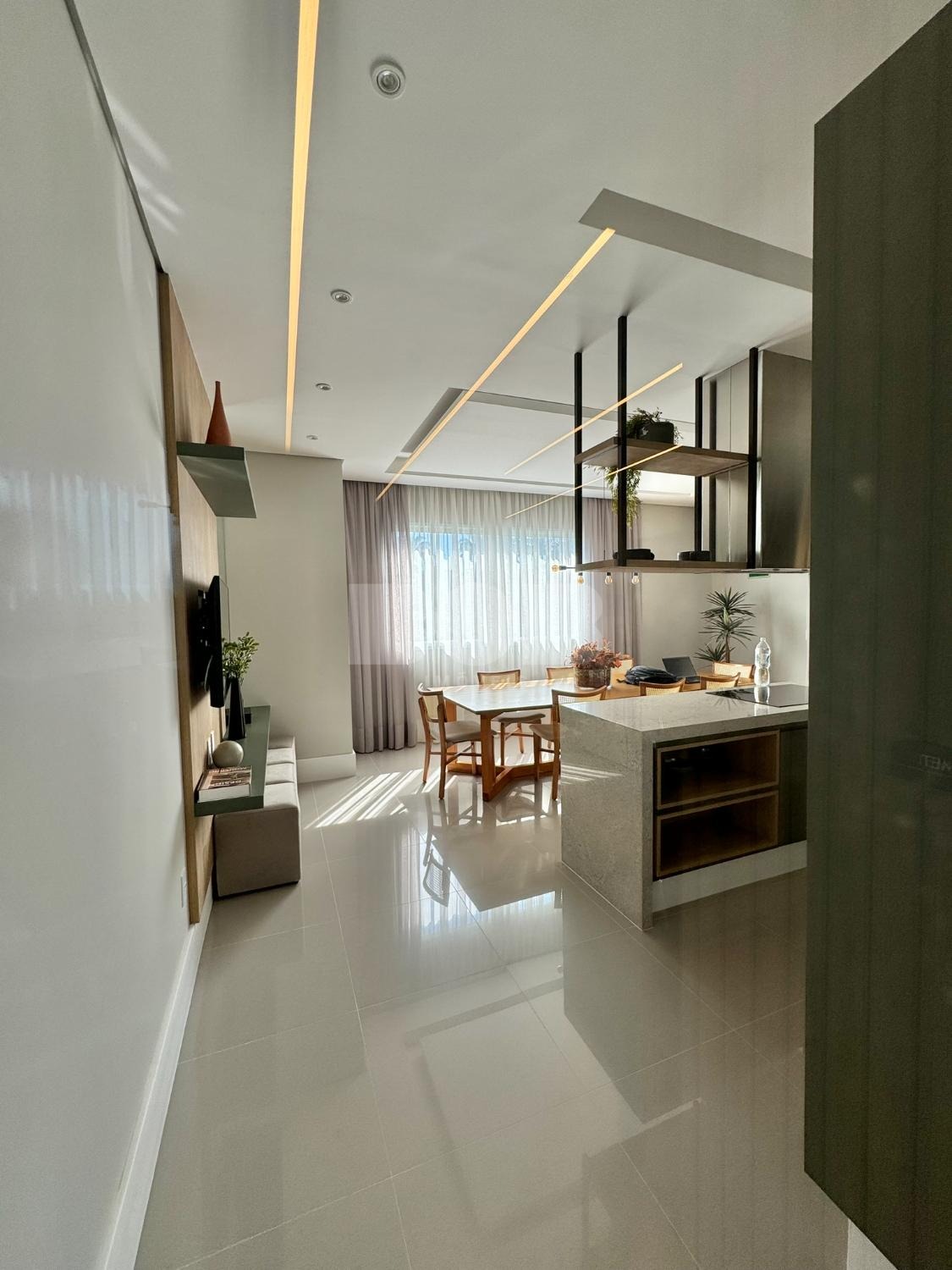 Os apartamentos do MANDARIM serão entregues com piso de porcelanato em toda sua área, pia da cozinha em granito e banheiro com box de vidro e nicho porta shampoo.