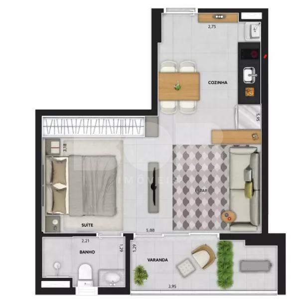 Compactos, mas muito confortáveis, os 160 studios de 41,7m² do MANDARIM GUANABARA integram suíte, sala e cozinha num ambiente único e ainda contam com uma ampla varanda com vista privilegiada de toda cidade.