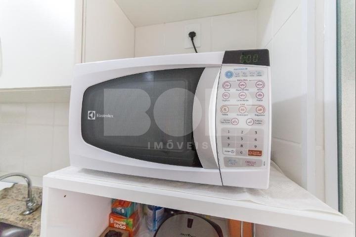 Os banheiros apresentam box e armários embutidos, enquanto a cozinha vem equipada com geladeira frost free, micro-ondas e armários planejados, proporcionando comodidade e funcionalidade. Os quartos são equipados com camas de casal box (com baú) e guarda-roupas, garantindo conforto e organização, sendo que um dos quartos também inclui escrivaninha com cadeira profissional e cômoda.