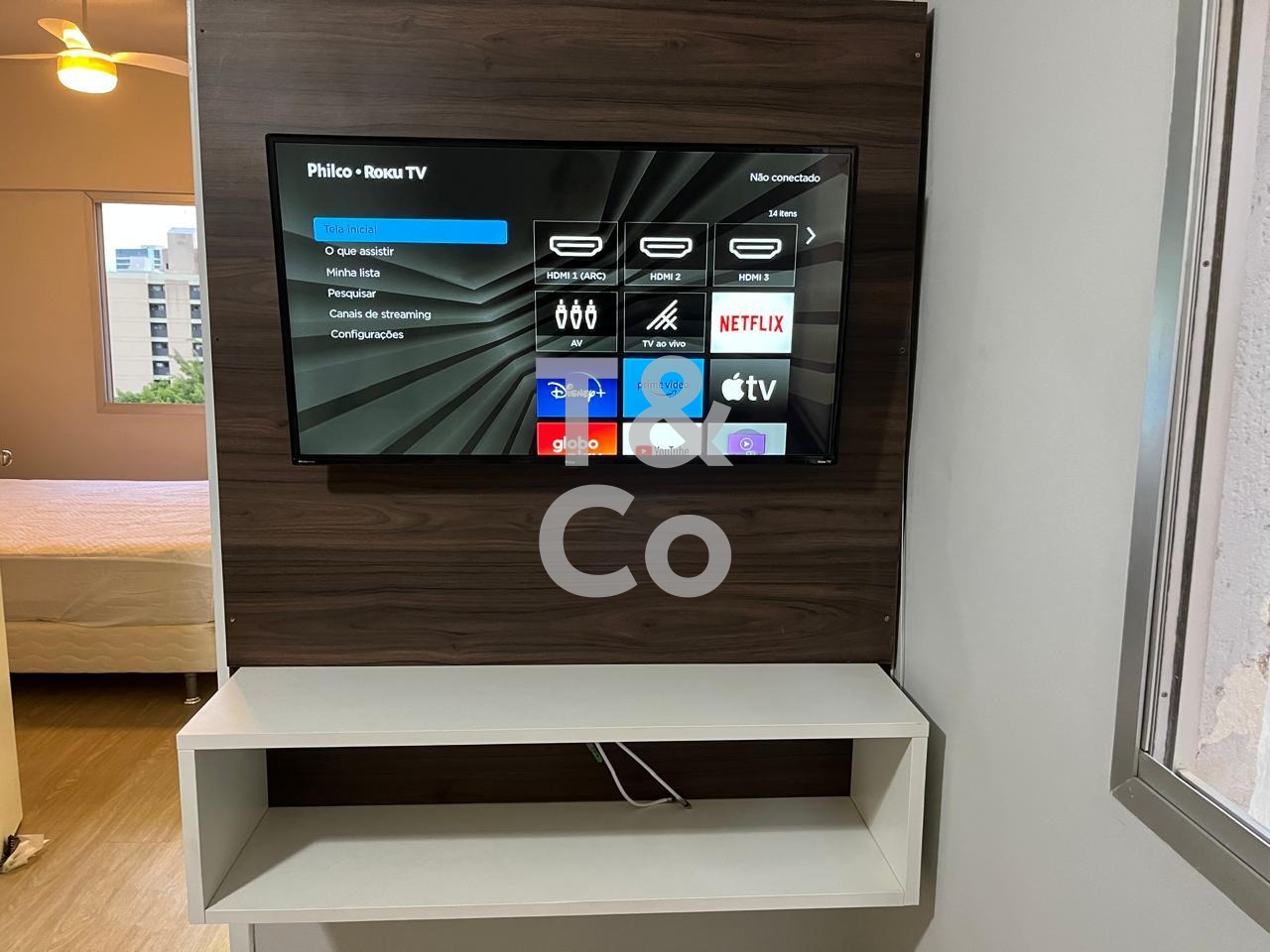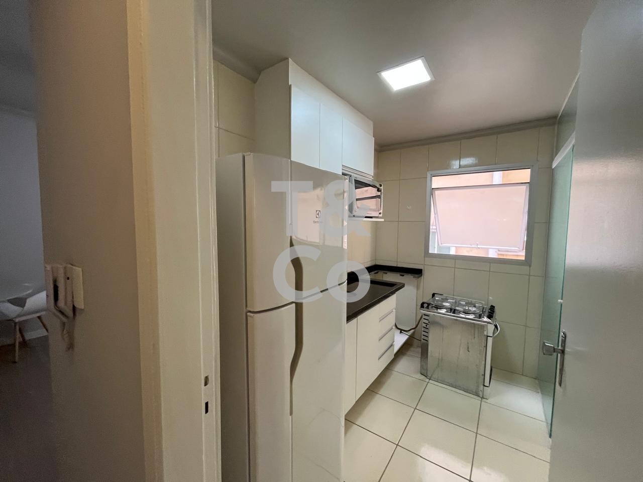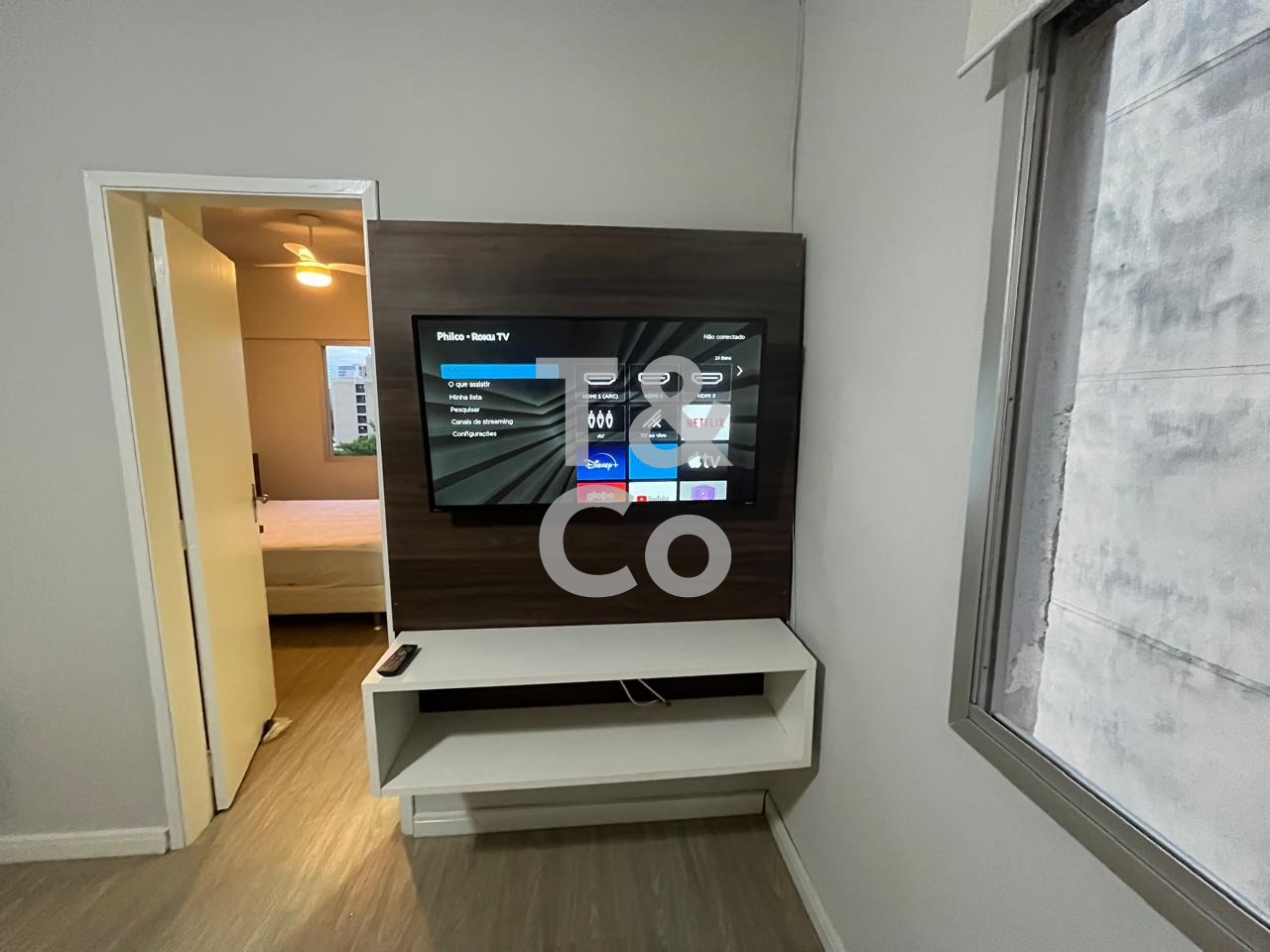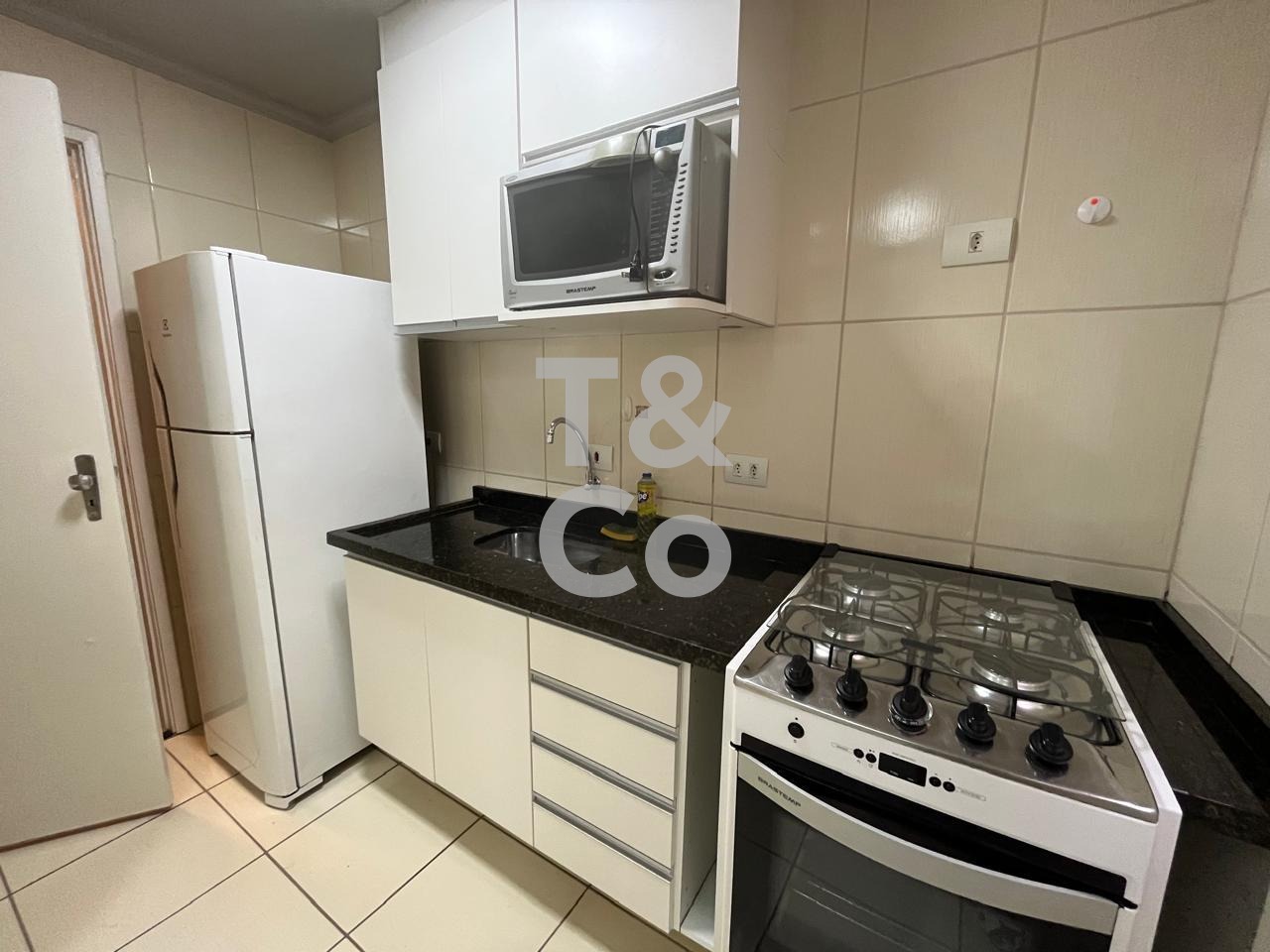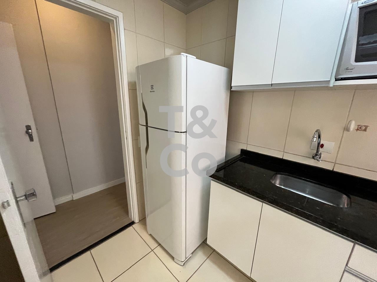 Mobiliado - Itens inclusos no apartamento: Geladeira, microondas, sofá, ventiladores, armários planejados no quarto, armários no banheiro, armários na cozinha e dispensa, cama queen, painel de tv no quarto e cozinha, fogão e forno embutido, mesa e cadeiras na sala, sofá, tv na sala, cortina, luzes.