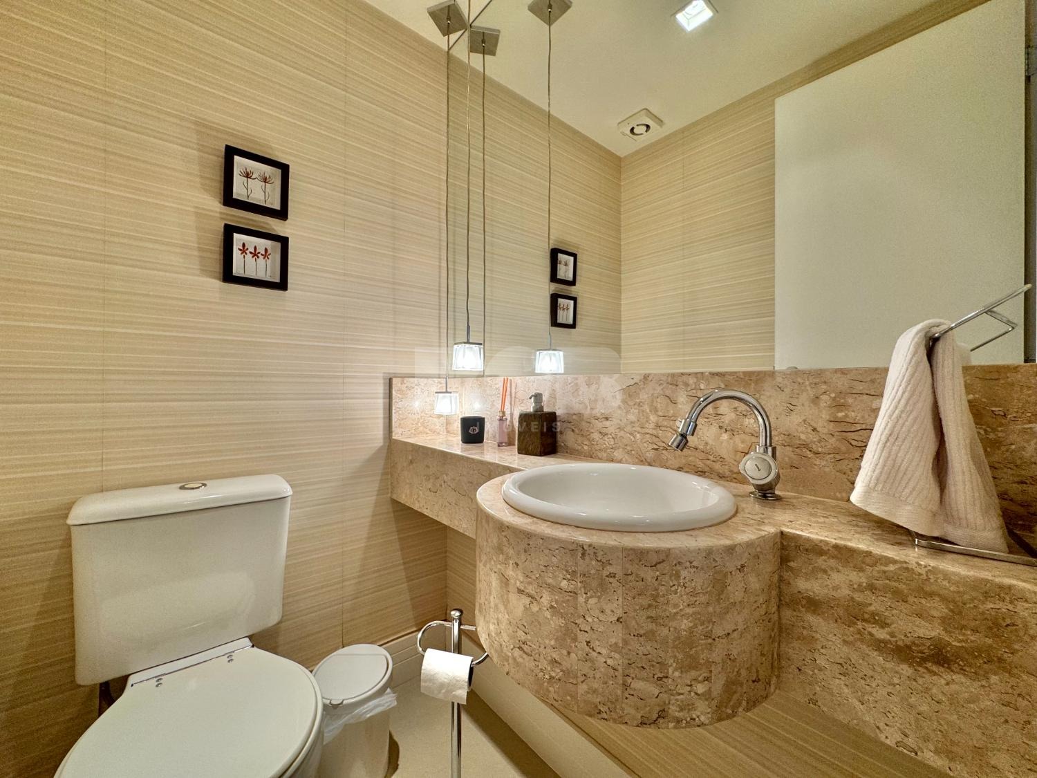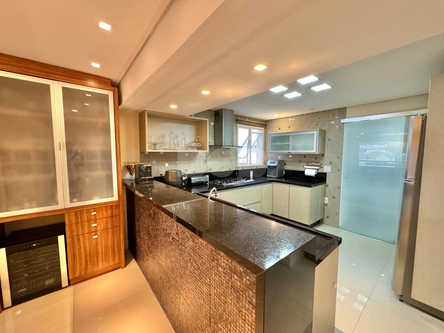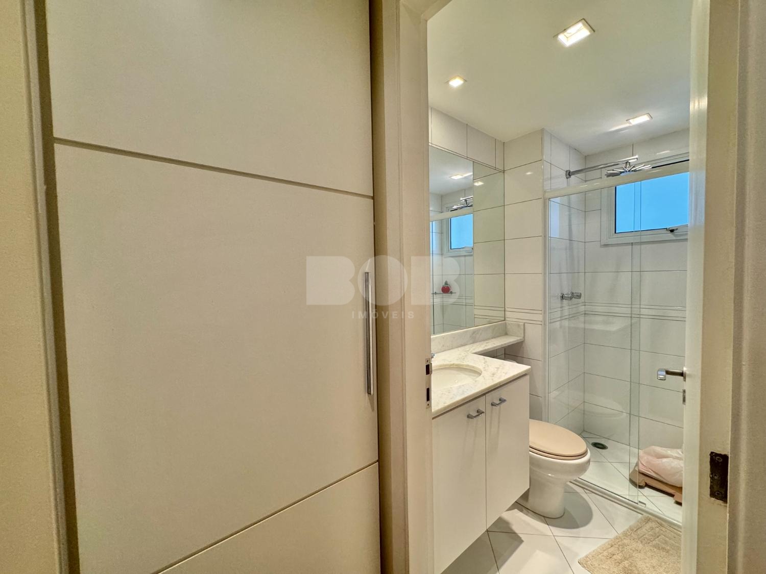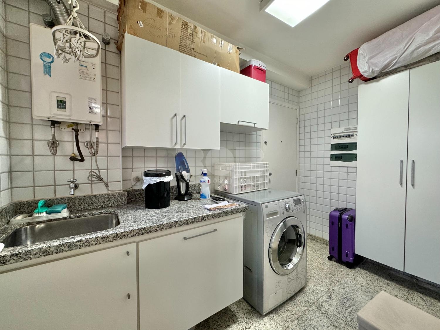 Este apartamento possui 3 suítes, todas ricas em armários embutidos e planejados, proporcionando organização e praticidade. A cozinha americana moderna e arejada é integrada com a sala, criando um ambiente harmonioso e acolhedor. A lavanderia e um banheiro de serviço adicionam ainda mais comodidade ao dia a dia.