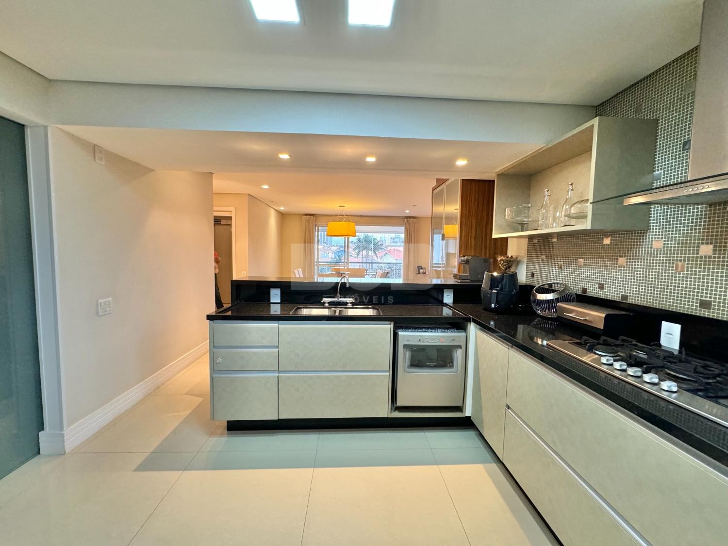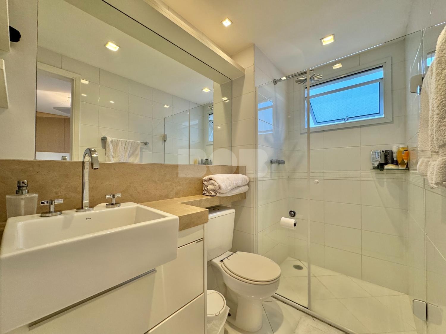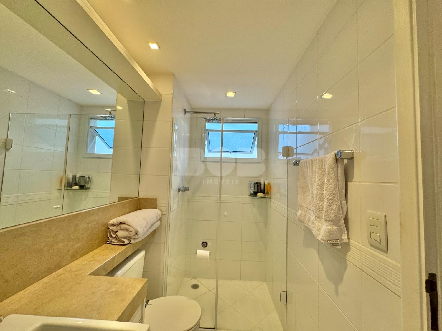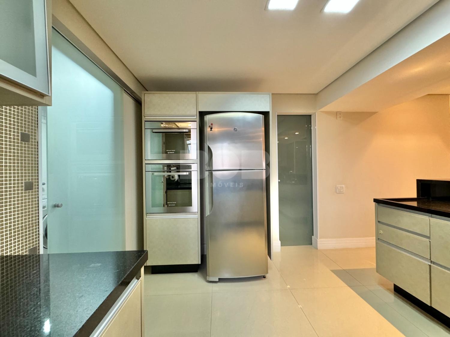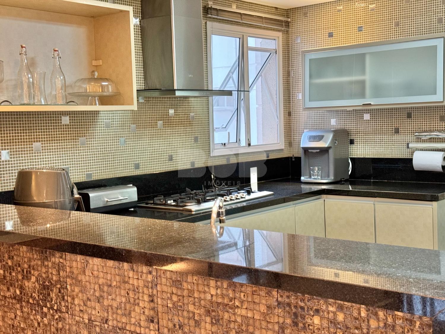 Este apartamento possui 3 suítes, todas ricas em armários embutidos e planejados, proporcionando organização e praticidade. A cozinha americana moderna e arejada é integrada com a sala, criando um ambiente harmonioso e acolhedor. A lavanderia e um banheiro de serviço adicionam ainda mais comodidade ao dia a dia.