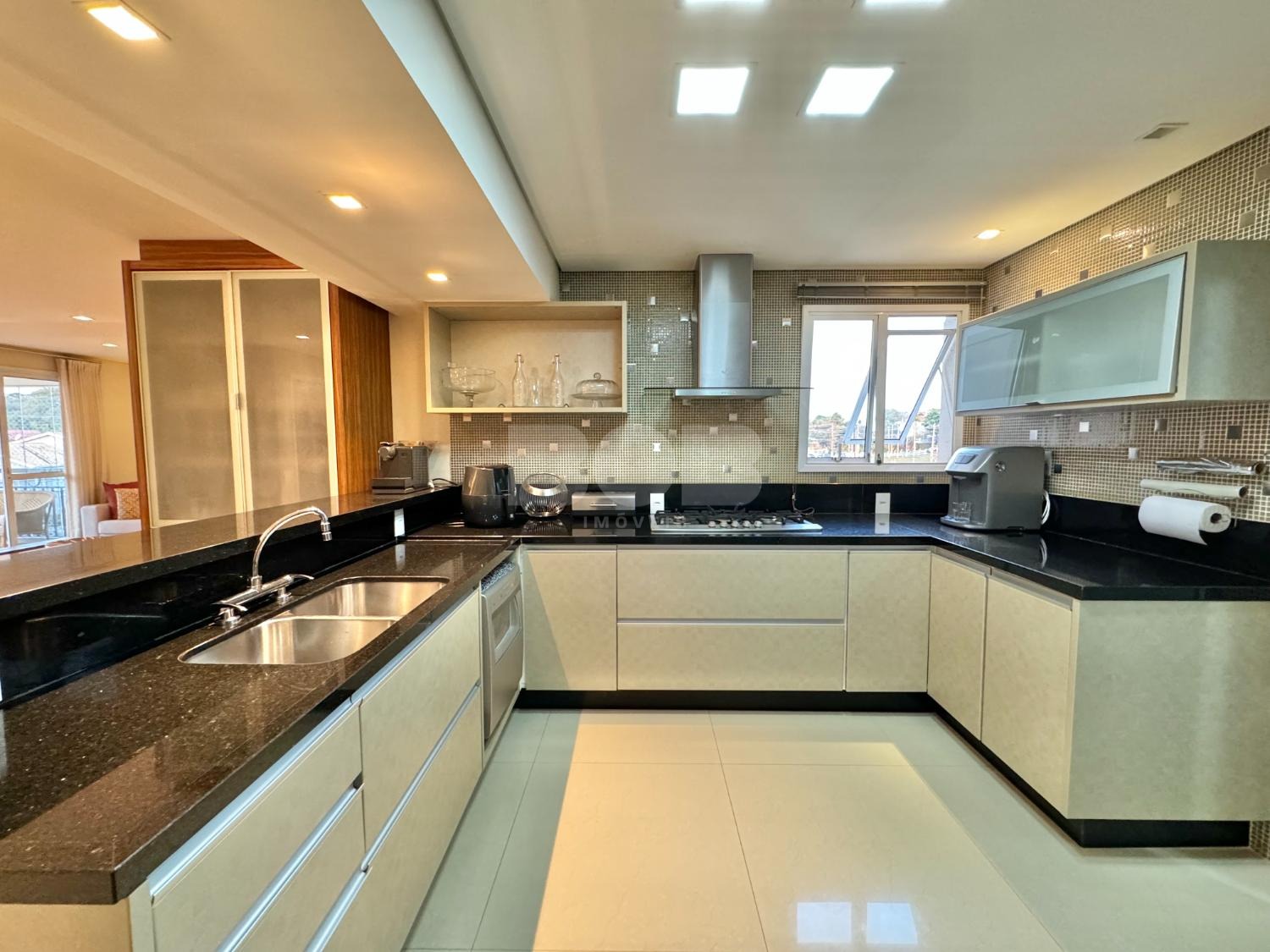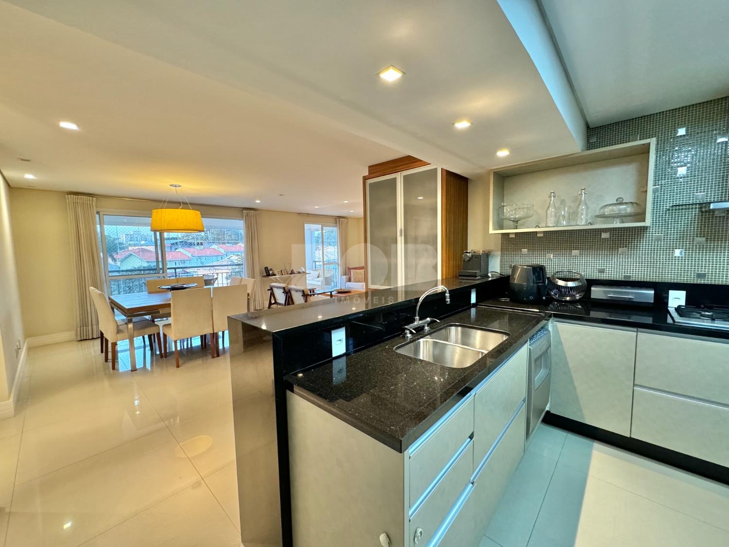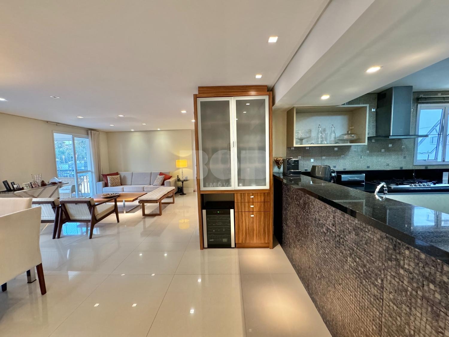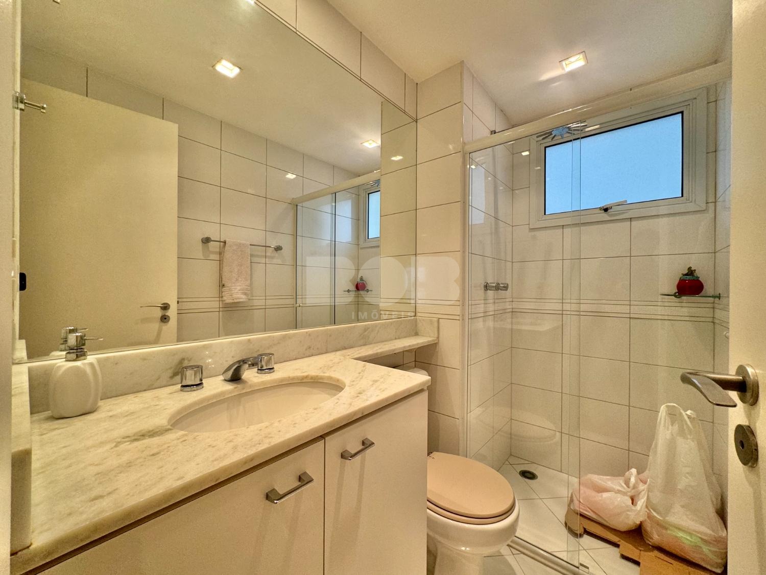 Este apartamento possui 3 suítes, todas ricas em armários embutidos e planejados, proporcionando organização e praticidade. A cozinha americana moderna e arejada é integrada com a sala, criando um ambiente harmonioso e acolhedor. A lavanderia e um banheiro de serviço adicionam ainda mais comodidade ao dia a dia.