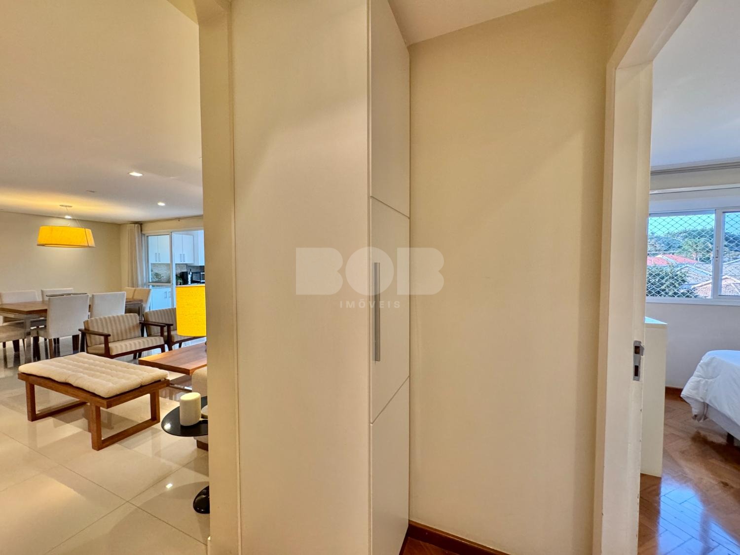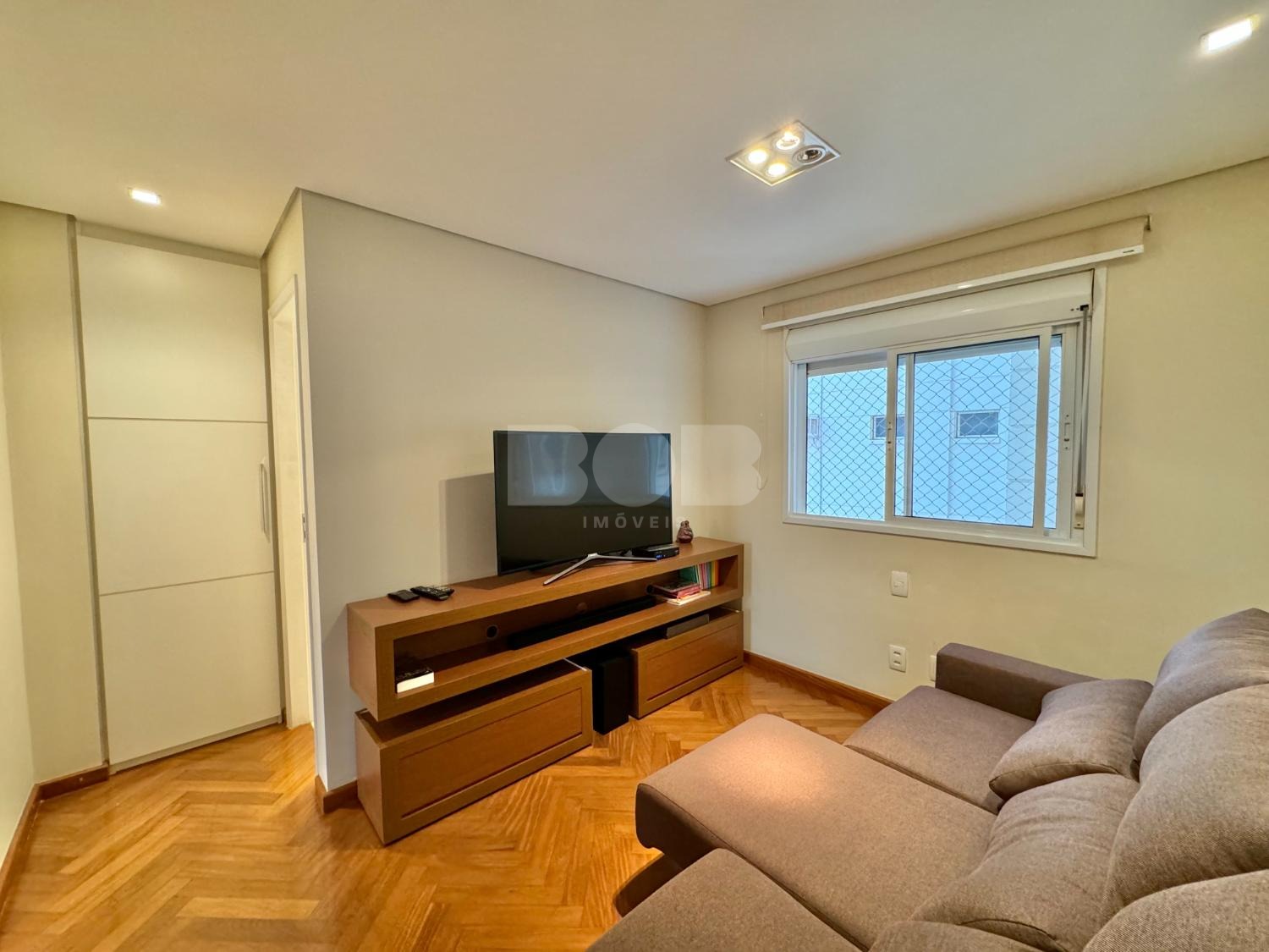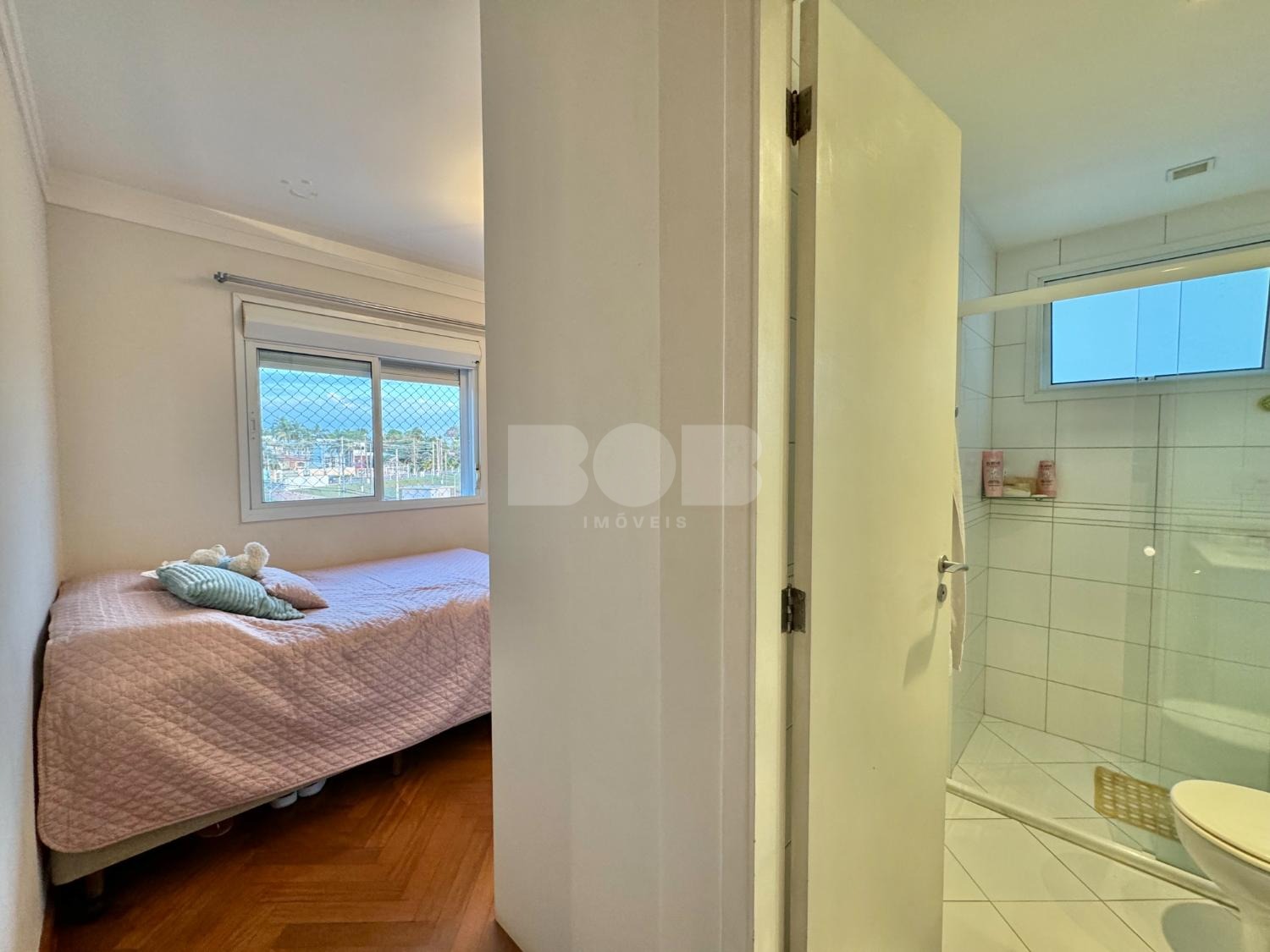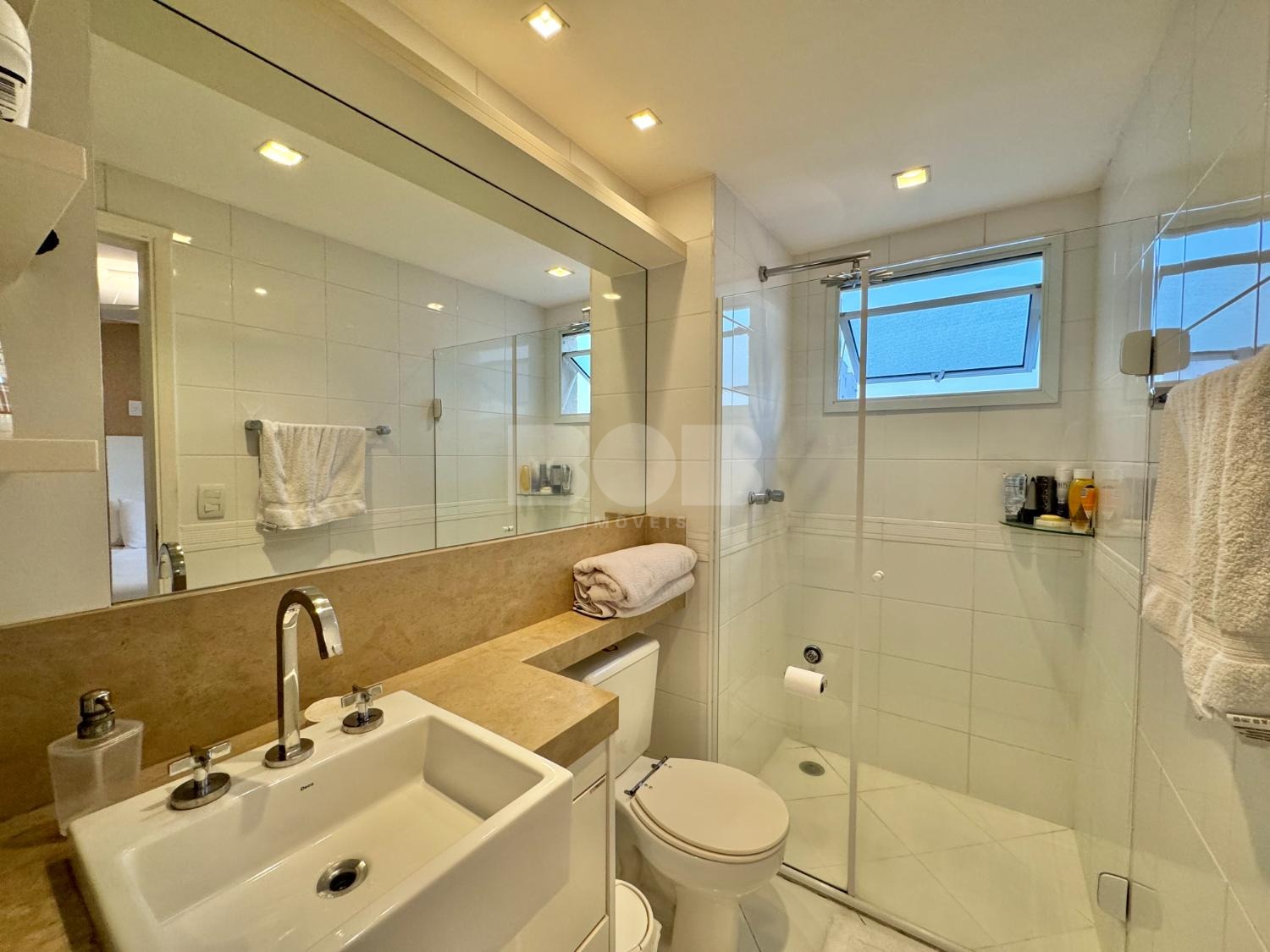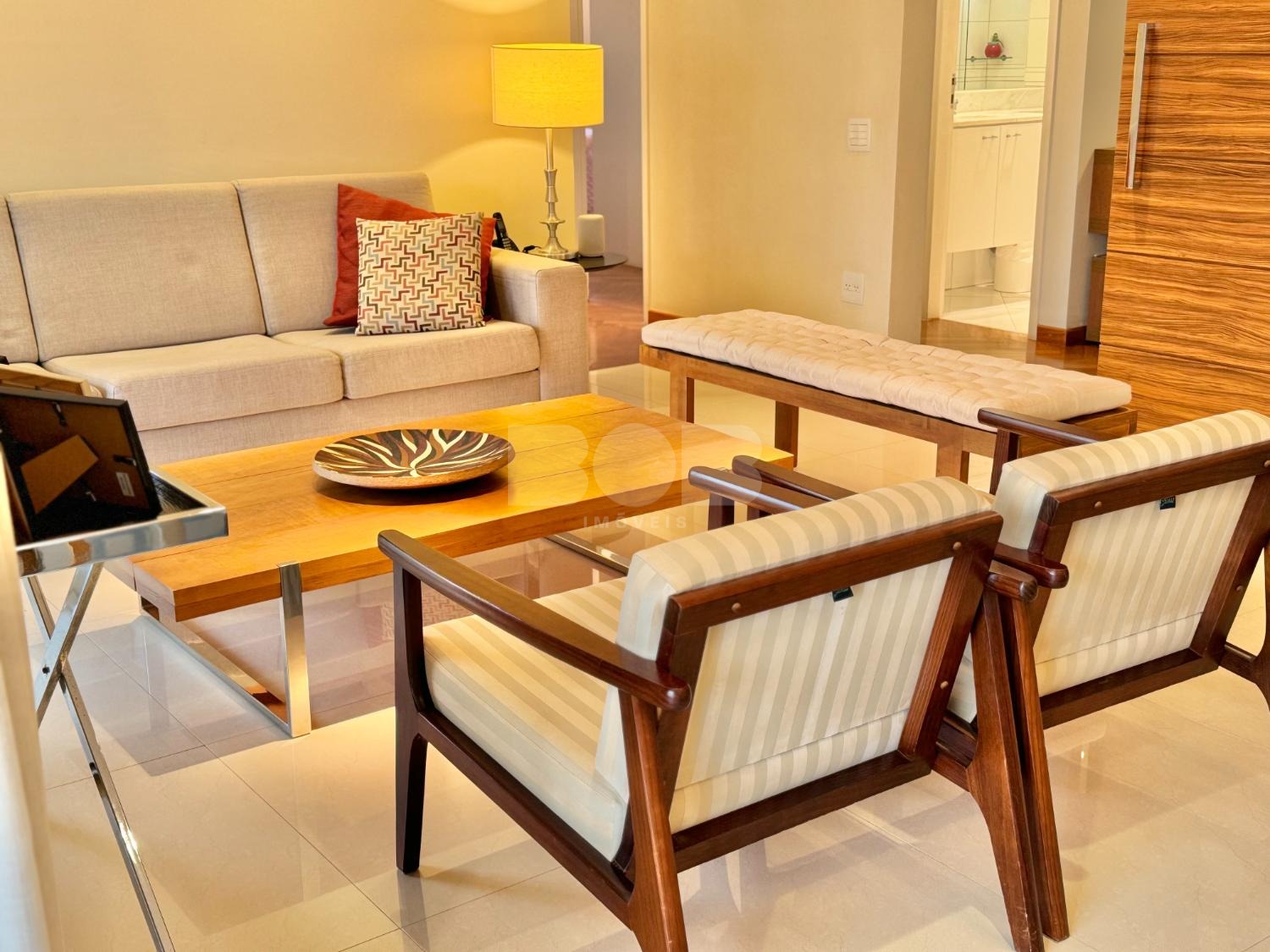 Este apartamento possui 3 suítes, todas ricas em armários embutidos e planejados, proporcionando organização e praticidade. A cozinha americana moderna e arejada é integrada com a sala, criando um ambiente harmonioso e acolhedor. A lavanderia e um banheiro de serviço adicionam ainda mais comodidade ao dia a dia.