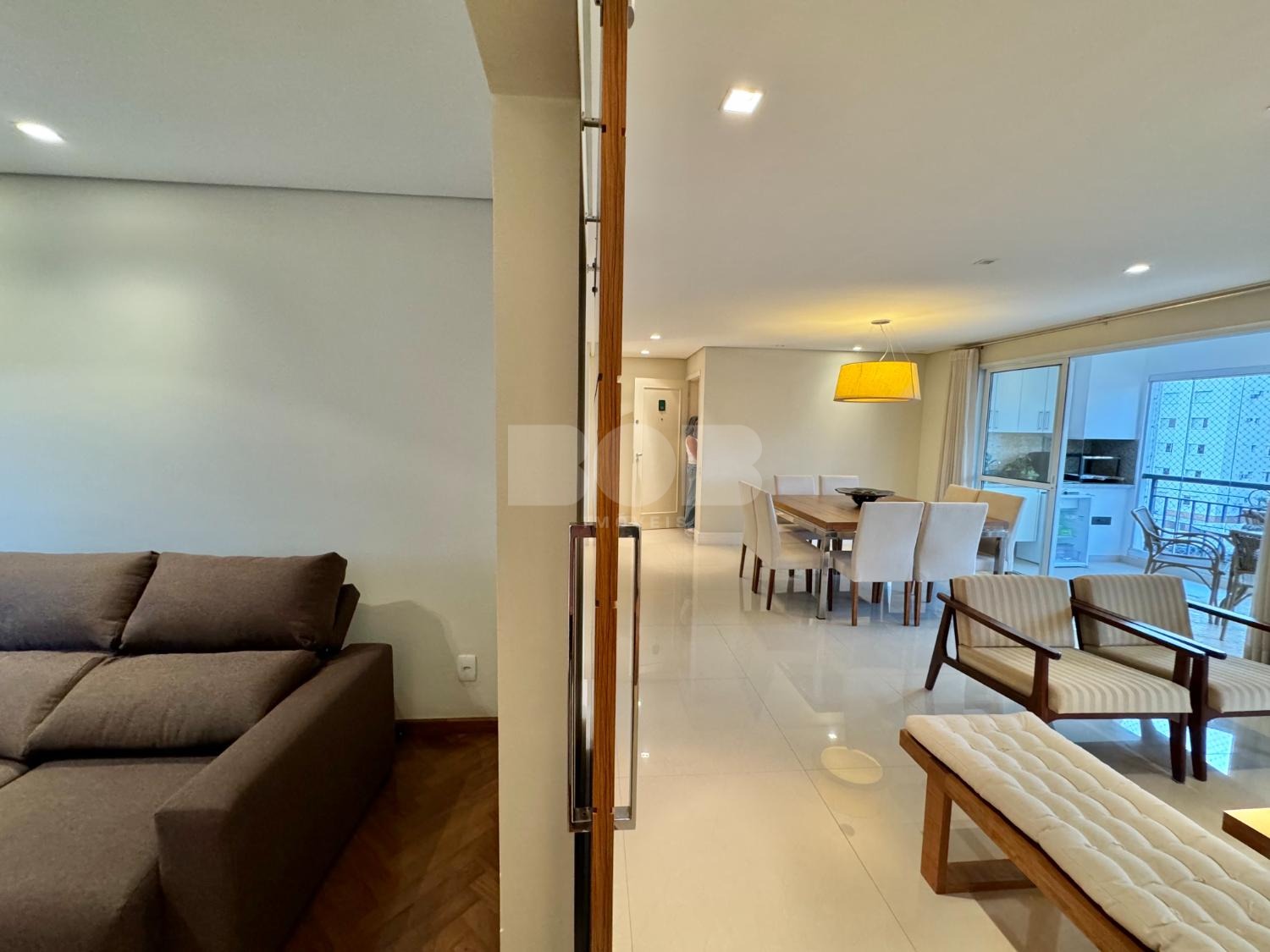 A ampla sala oferece uma integração completa entre os espaços de estar, jantar e TV, e se estende a uma maravilhosa varanda gourmet. A varanda, com vista panorâmica, é o lugar perfeito para apreciar o nascer do sol, tornando as manhãs ainda mais especiais.