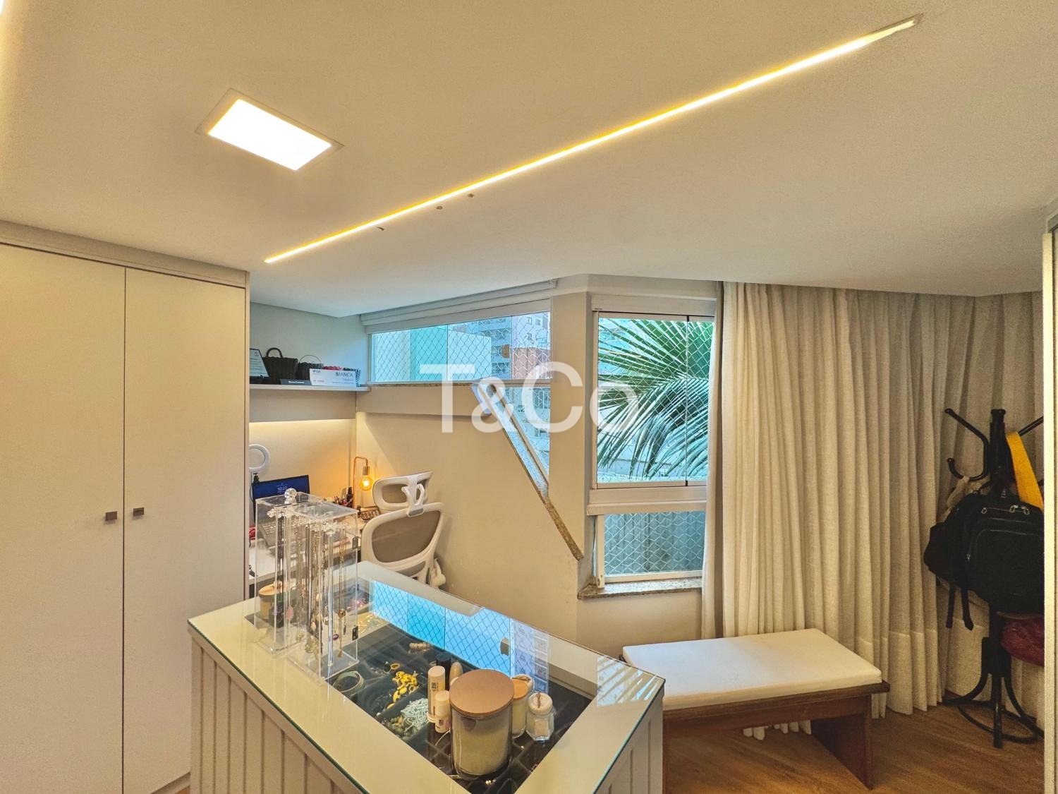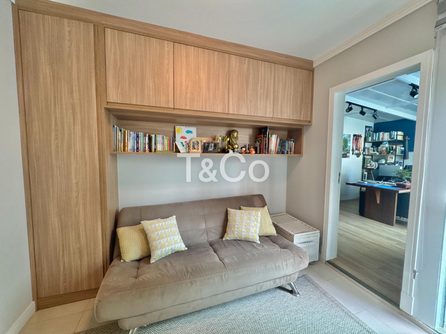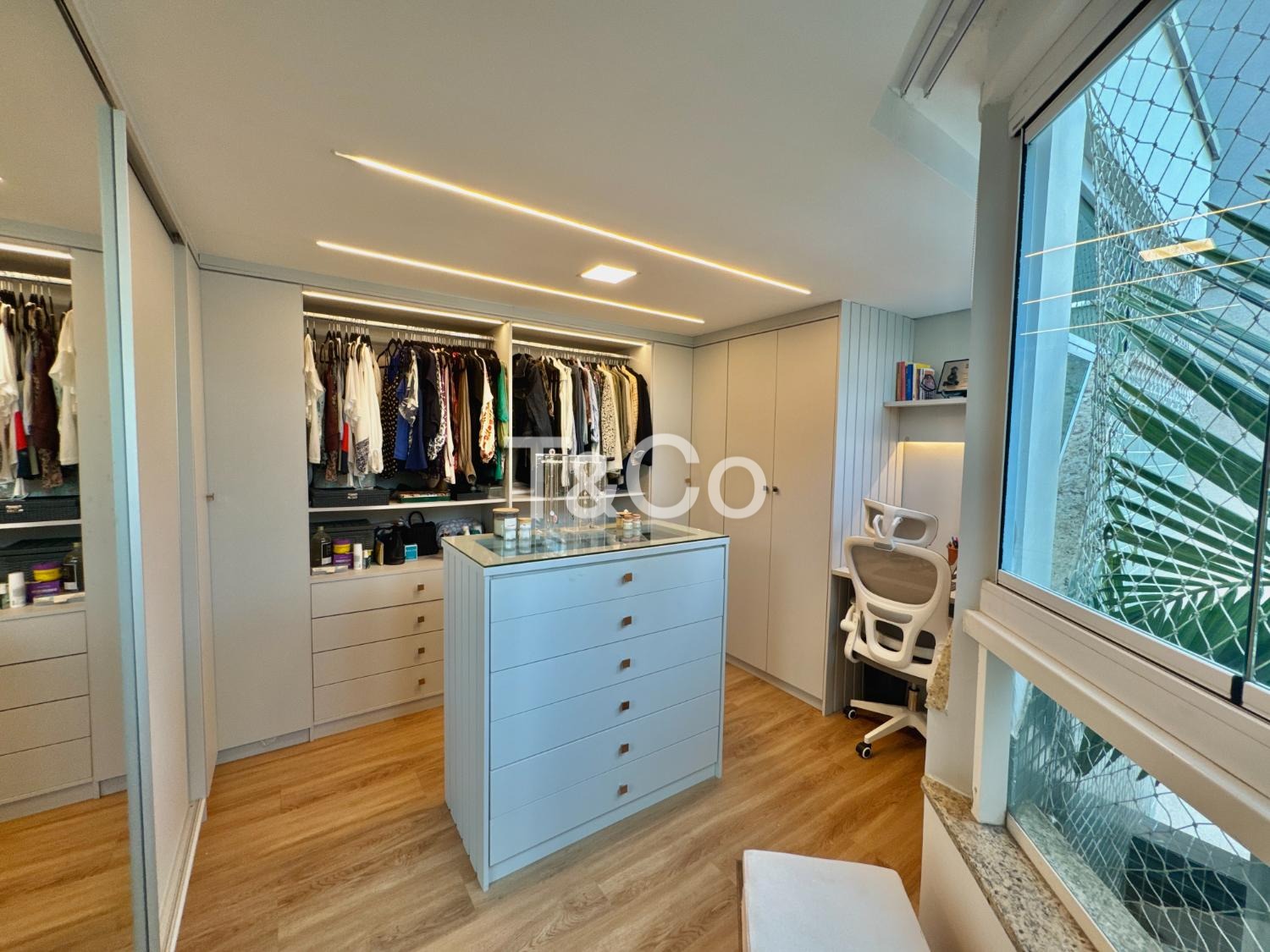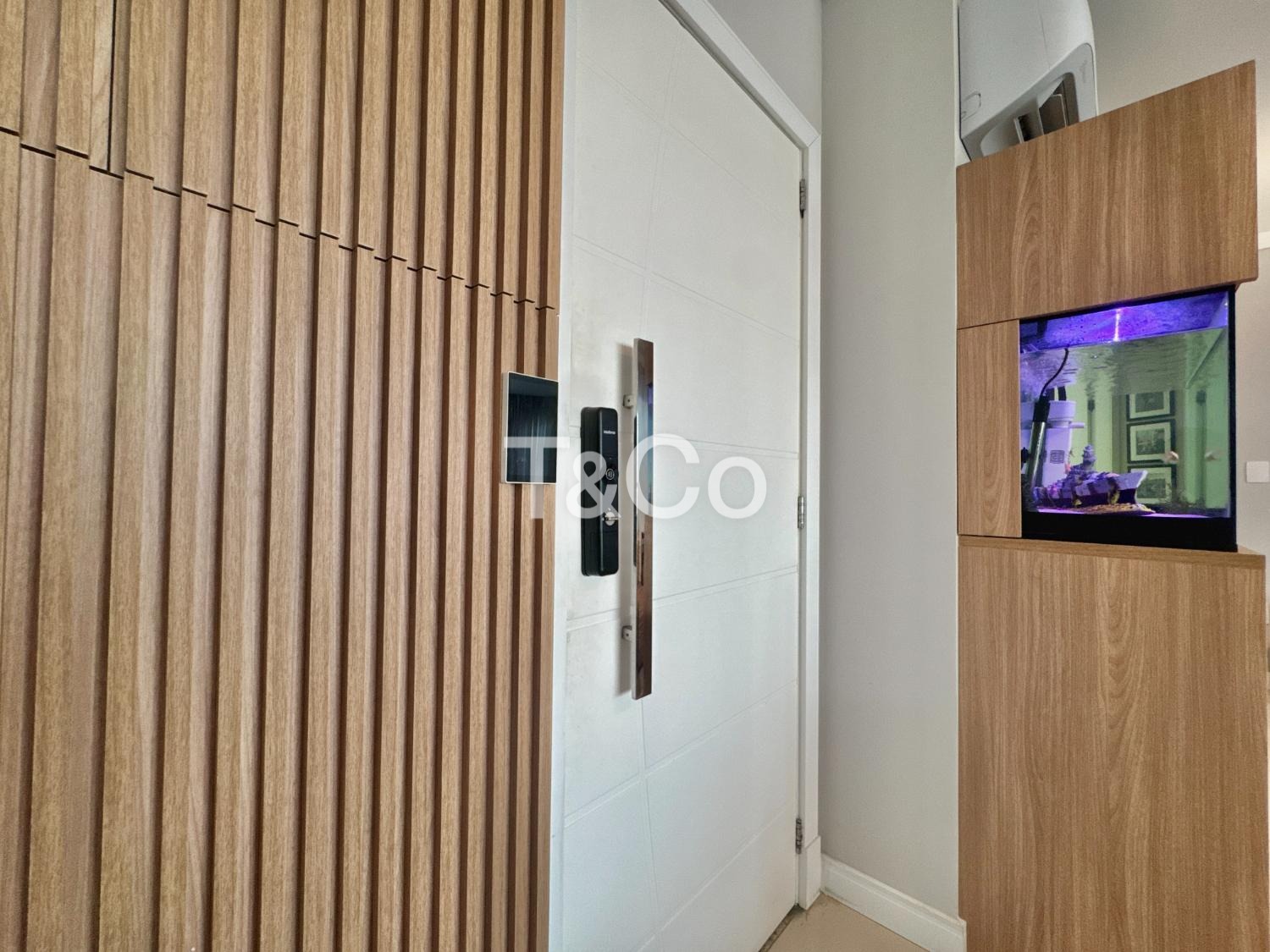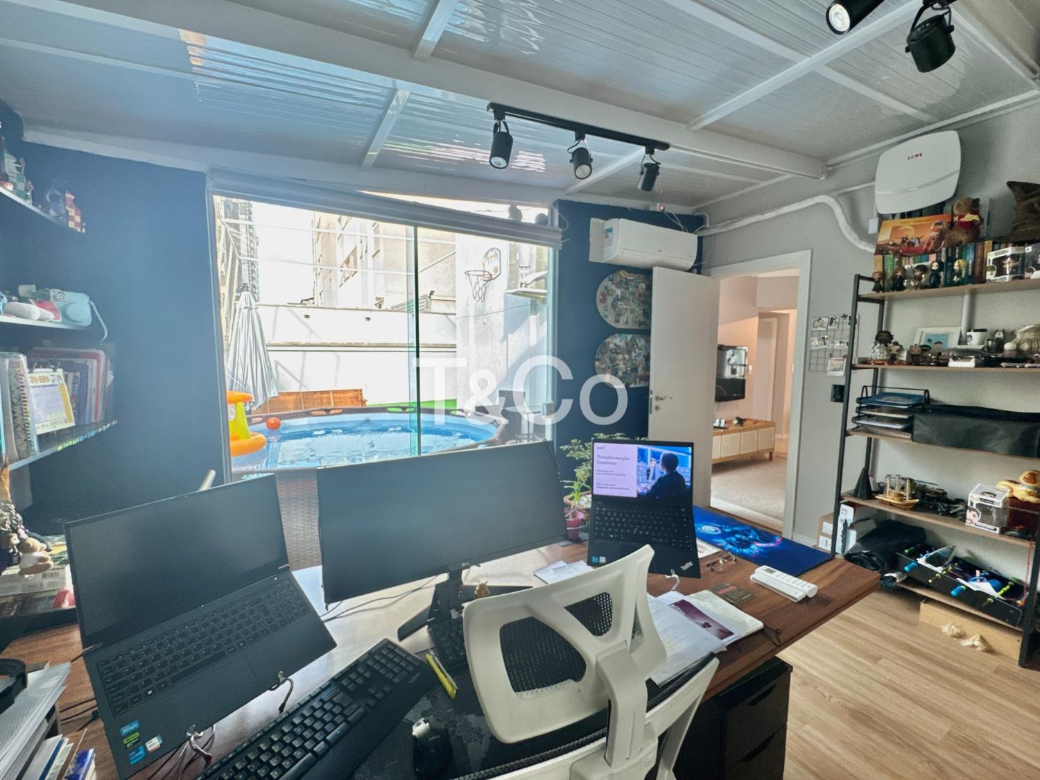 O imóvel possui 4 quartos, sendo 3 suítes — uma delas uma suíte master completamente reformada, com armários planejados e um super closet. A quarta suíte, anexa ao escritório, oferece flexibilidade para um espaço de trabalho ou para receber hóspedes. A automação completa por Alexa e os móveis planejados na cozinha, quartos e banheiros adicionam praticidade e sofisticação.
