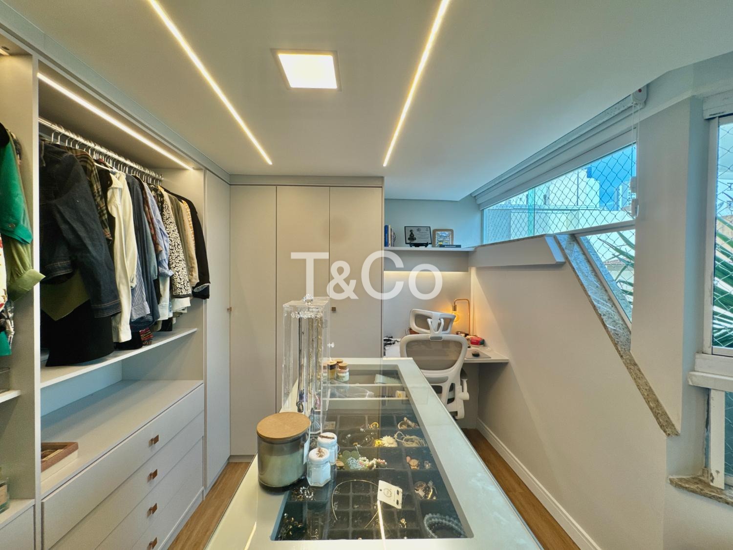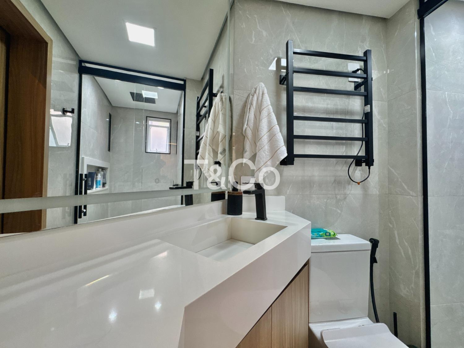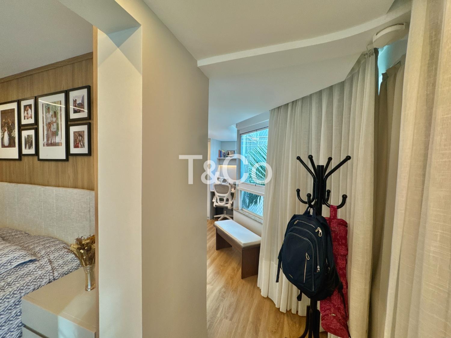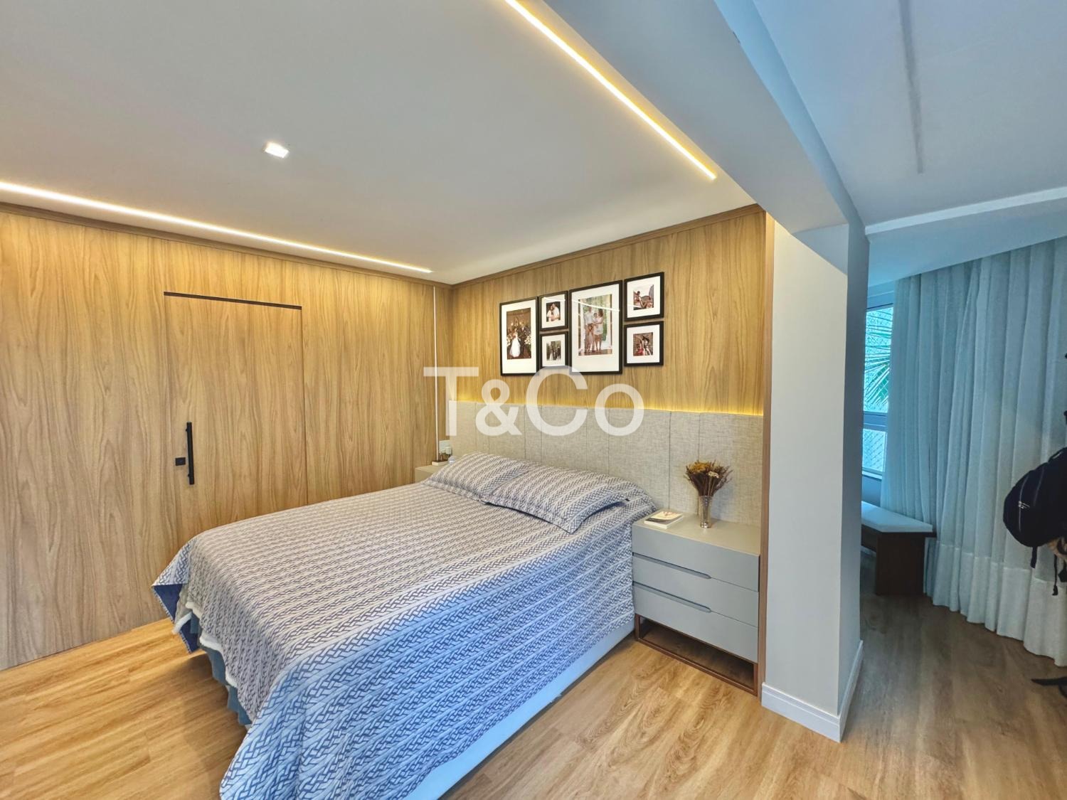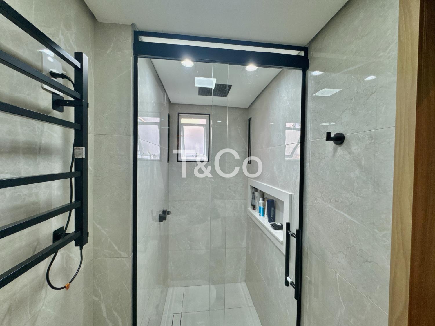 O imóvel possui 4 quartos, sendo 3 suítes — uma delas uma suíte master completamente reformada, com armários planejados e um super closet. A quarta suíte, anexa ao escritório, oferece flexibilidade para um espaço de trabalho ou para receber hóspedes. A automação completa por Alexa e os móveis planejados na cozinha, quartos e banheiros adicionam praticidade e sofisticação.
