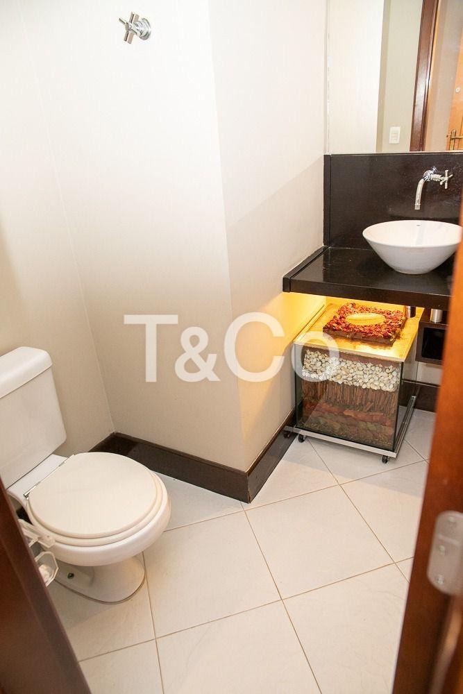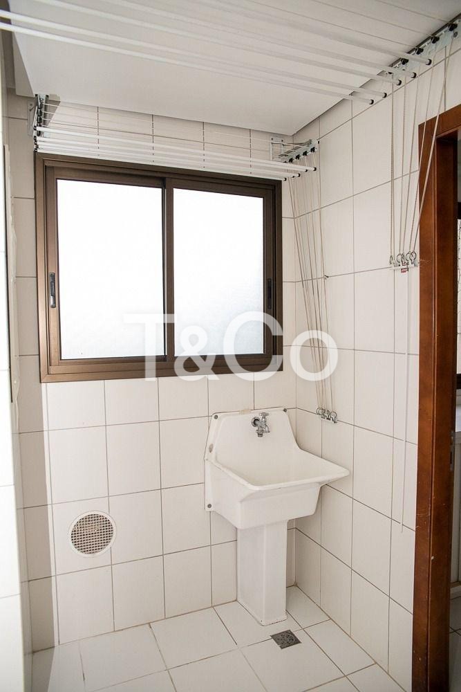 O apartamento dispõe de três dormitórios, sendo duas suítes, além de um banheiro social. A sala espaçosa comporta três ambientes com total comodidade e acesso a uma sacada ventilada e agradável. A cozinha ampla proporciona ótimo espaço para quem gosta de cozinhar, complementada por lavabo, lavanderia, quarto e banheiro de serviço.