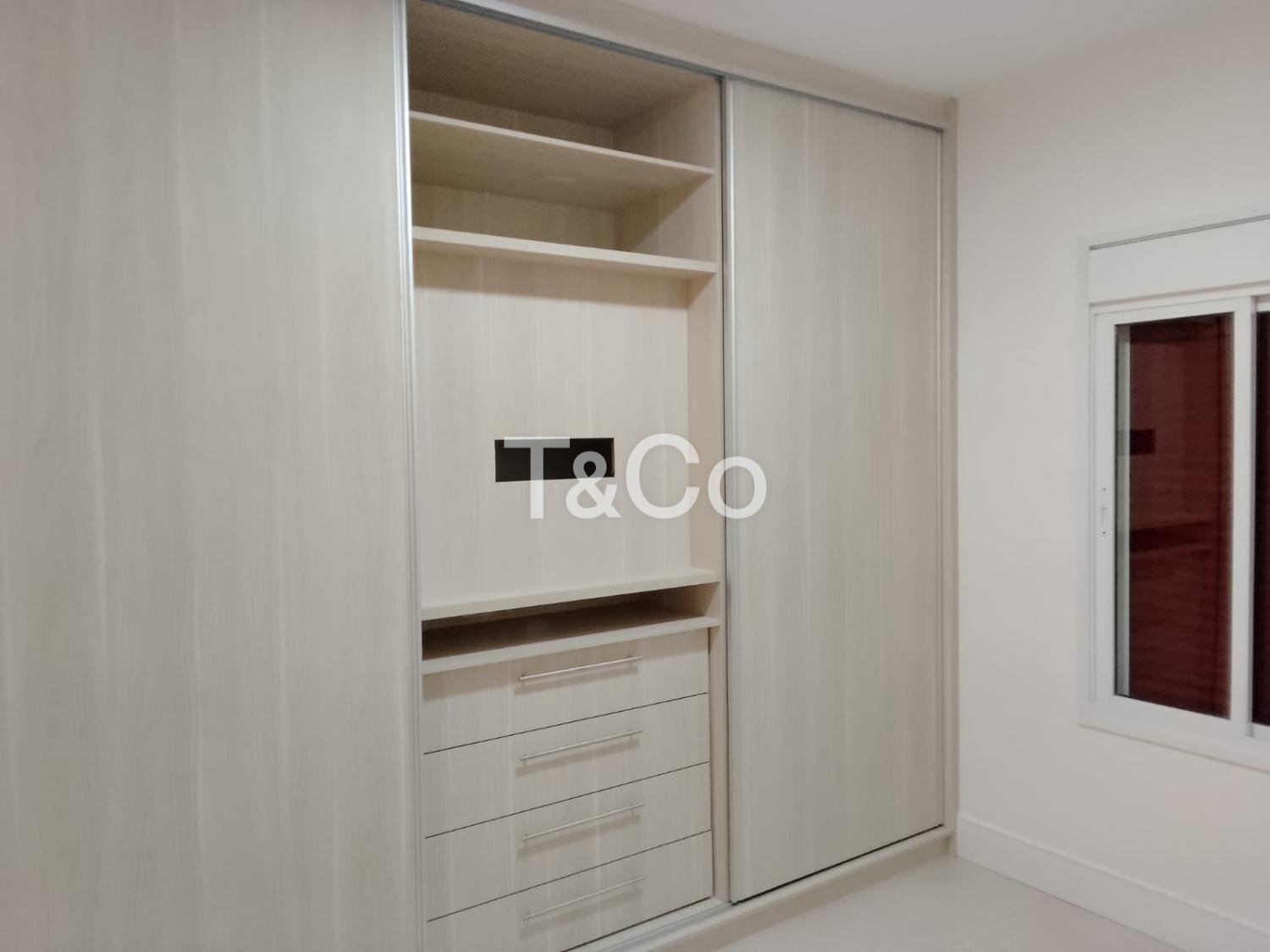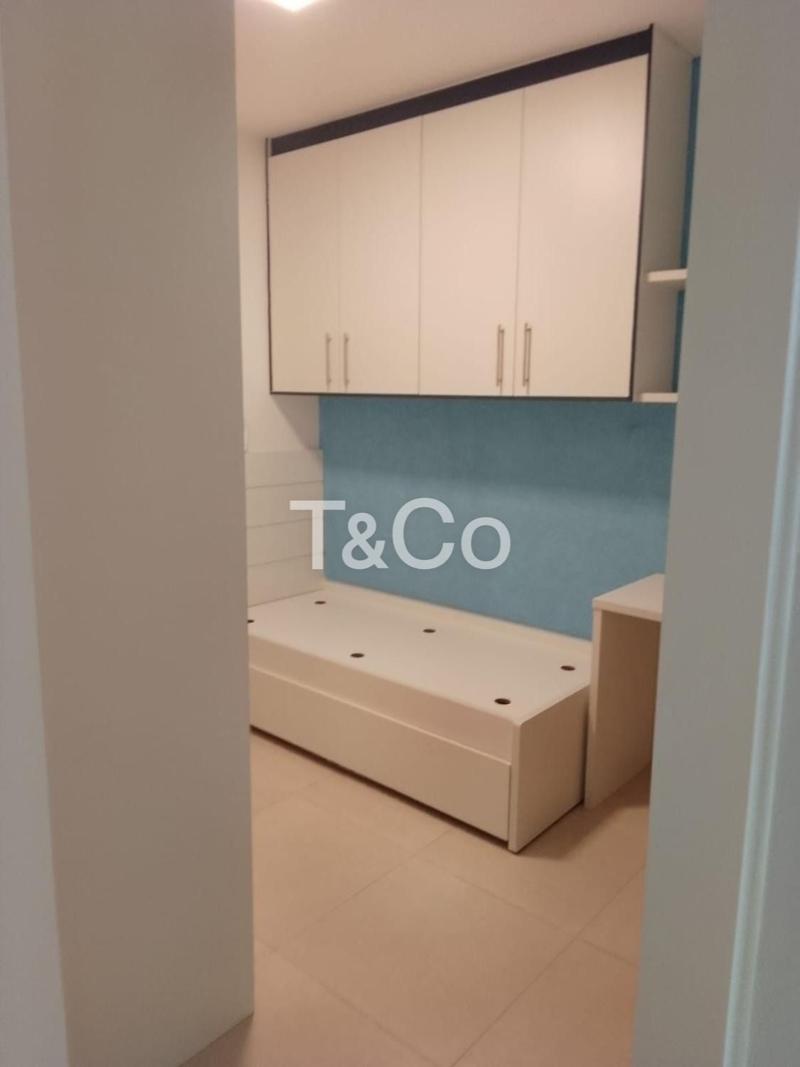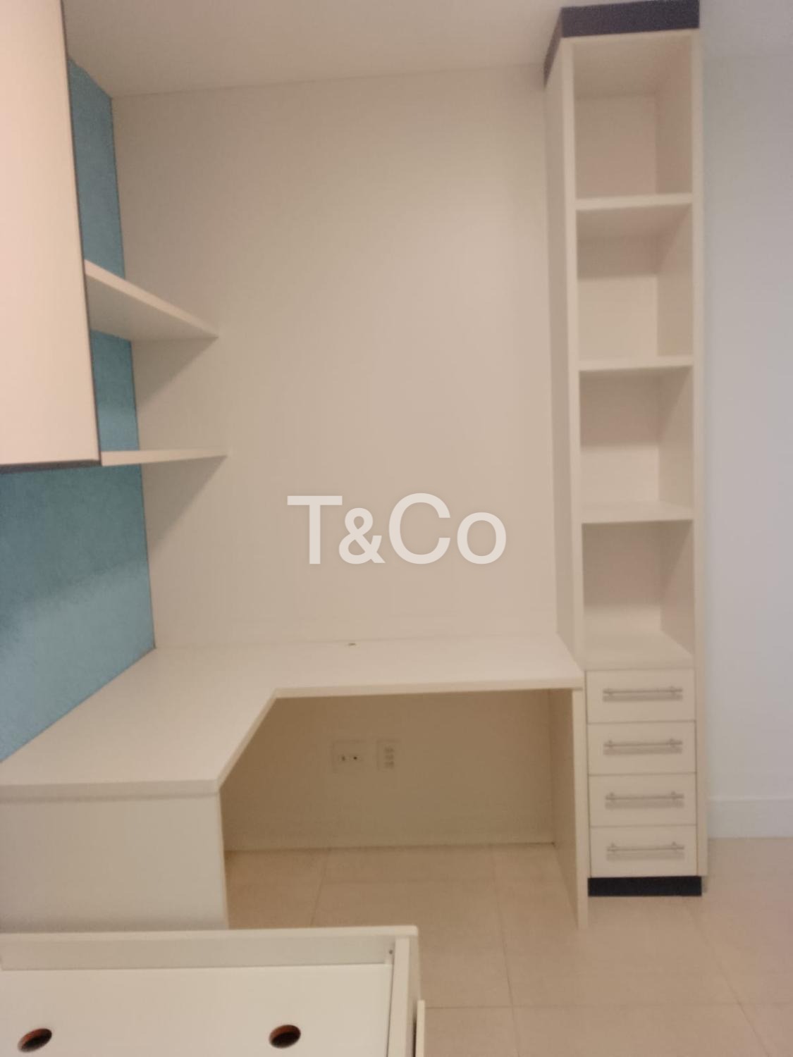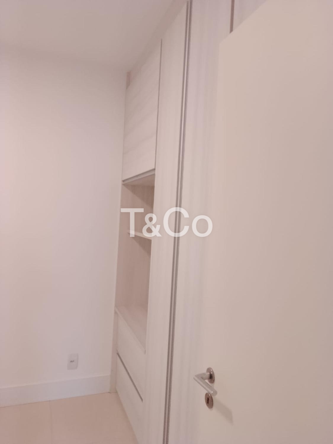 O imóvel dispõe de três suítes generosamente planejadas, cada uma enriquecida por armários sob medida, além de sala para três ambientes, marcada por porcelanatos de tom elegante e pela fluidez luminosa que permeia todos os espaços. A imponente varanda envidraçada, de 3m x 3m, cria um ambiente de contemplação e convivência, onde a vista frontal do condomínio funciona como moldura natural.