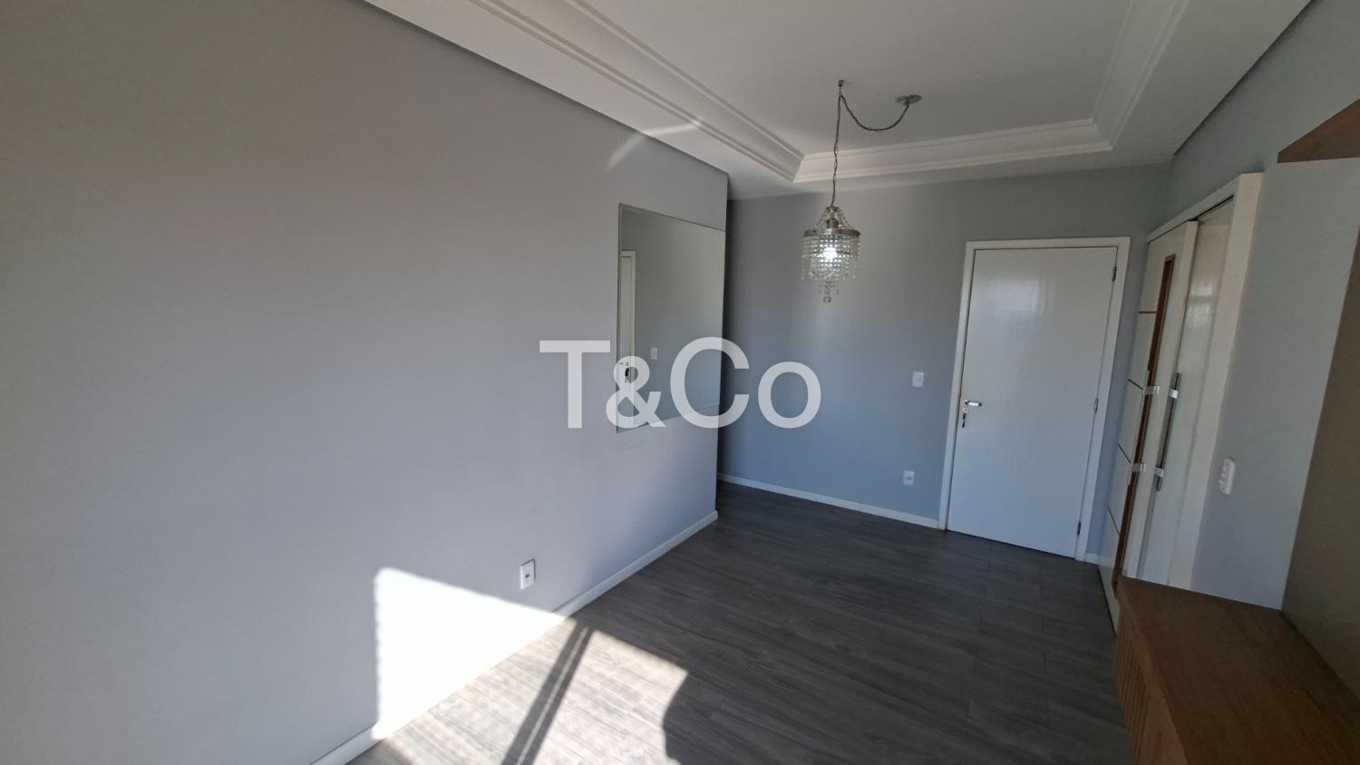 ● Moldura de gesso em todo o apartamento e rebaixo de gesso com lustre na sala