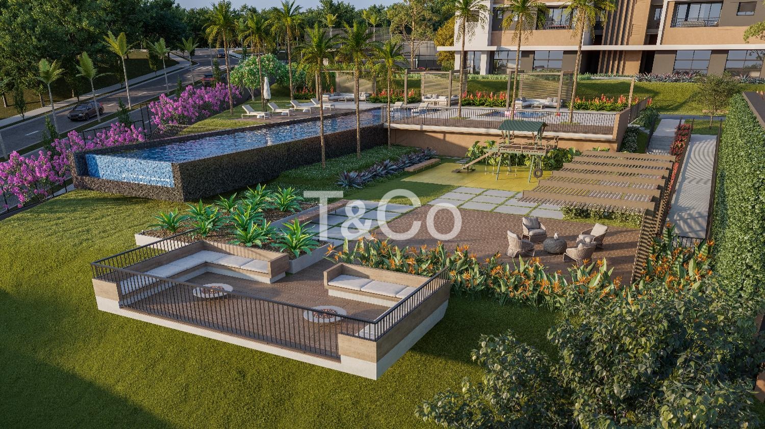 Salão de festas, espaço gourmet, churrasqueiras, 3 academias, piscina adulto e infantil, quadra de beach tennis e poliesportiva, brinquedoteca, playground, espaço pet, coworking, horta