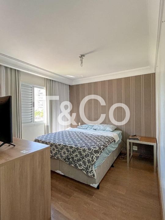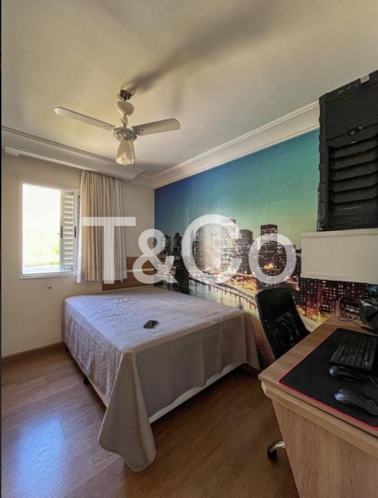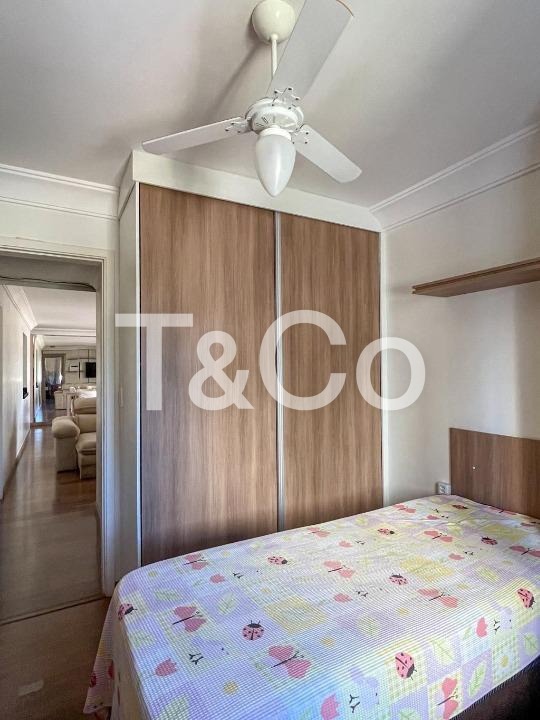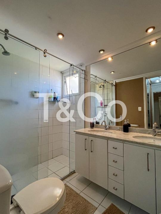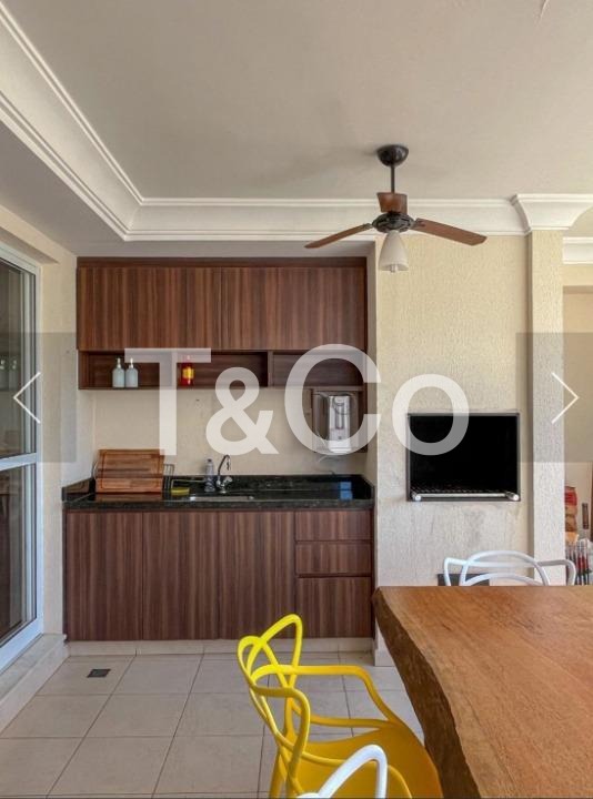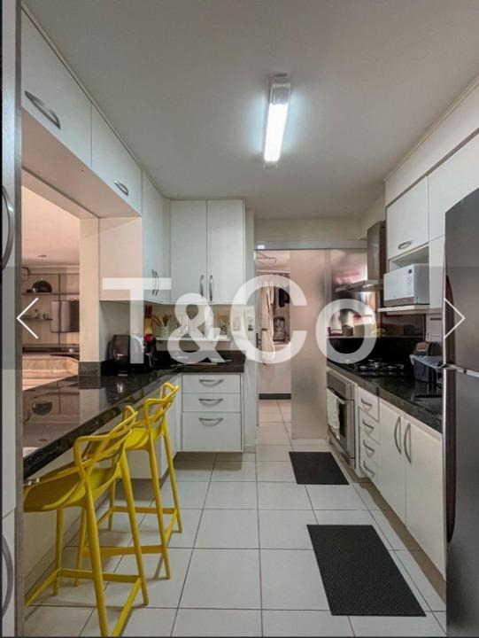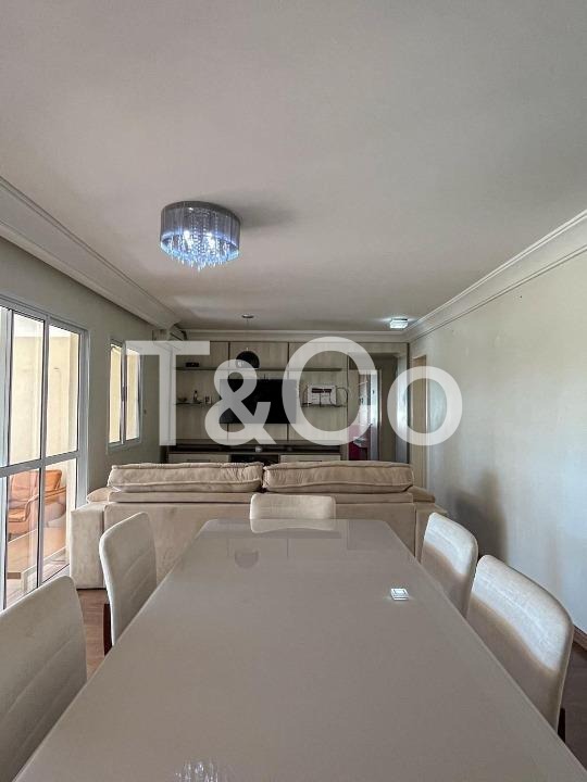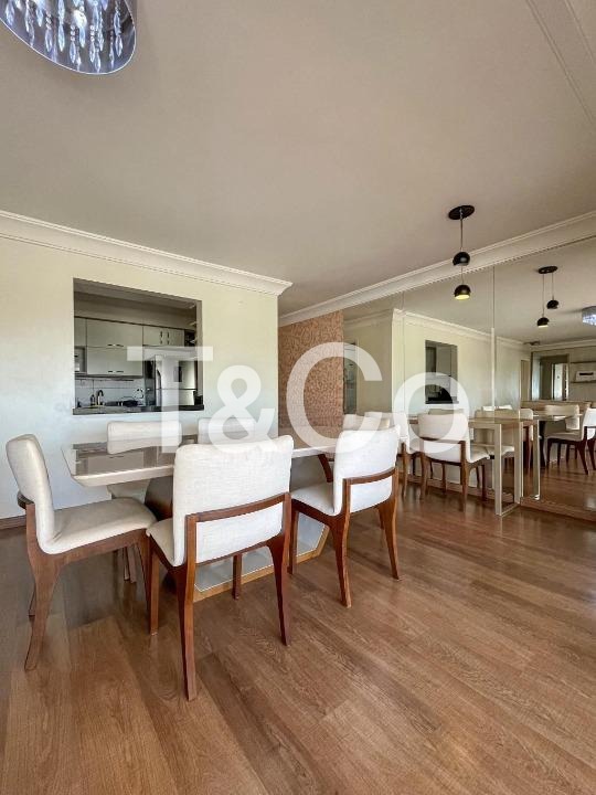 3 quartos, sendo 1 suíte, 3 banheiros, sala de estar espaçosa, sala de jantar integrada, varanda gourmet, cozinha equipada com forno, cooktop e coifa, área de serviço, armários planejados em diversos ambientes, aquecimento de água a gás, ar-condicionado instalado, ventiladores, 2 vagas de garagem cobertas e fixas