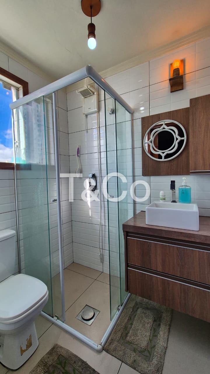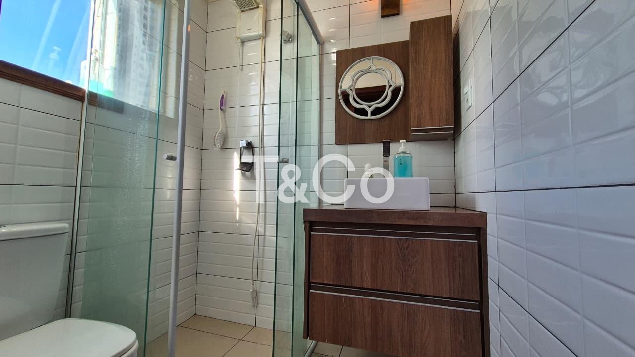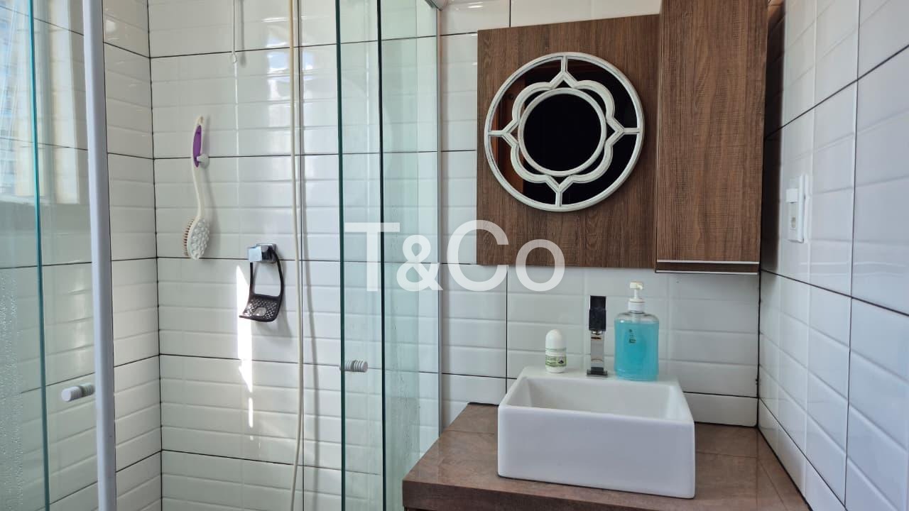 1 dormitório amplo com sacada, integração total com sala de TV e jantar – ambiente moderno e funcional, cozinha planejada com cooktop e exaustor, banheiro social com armários e box blindex, andar alto, sol da manhã – mais iluminação natural e conforto térmico, portaria 24 horas.