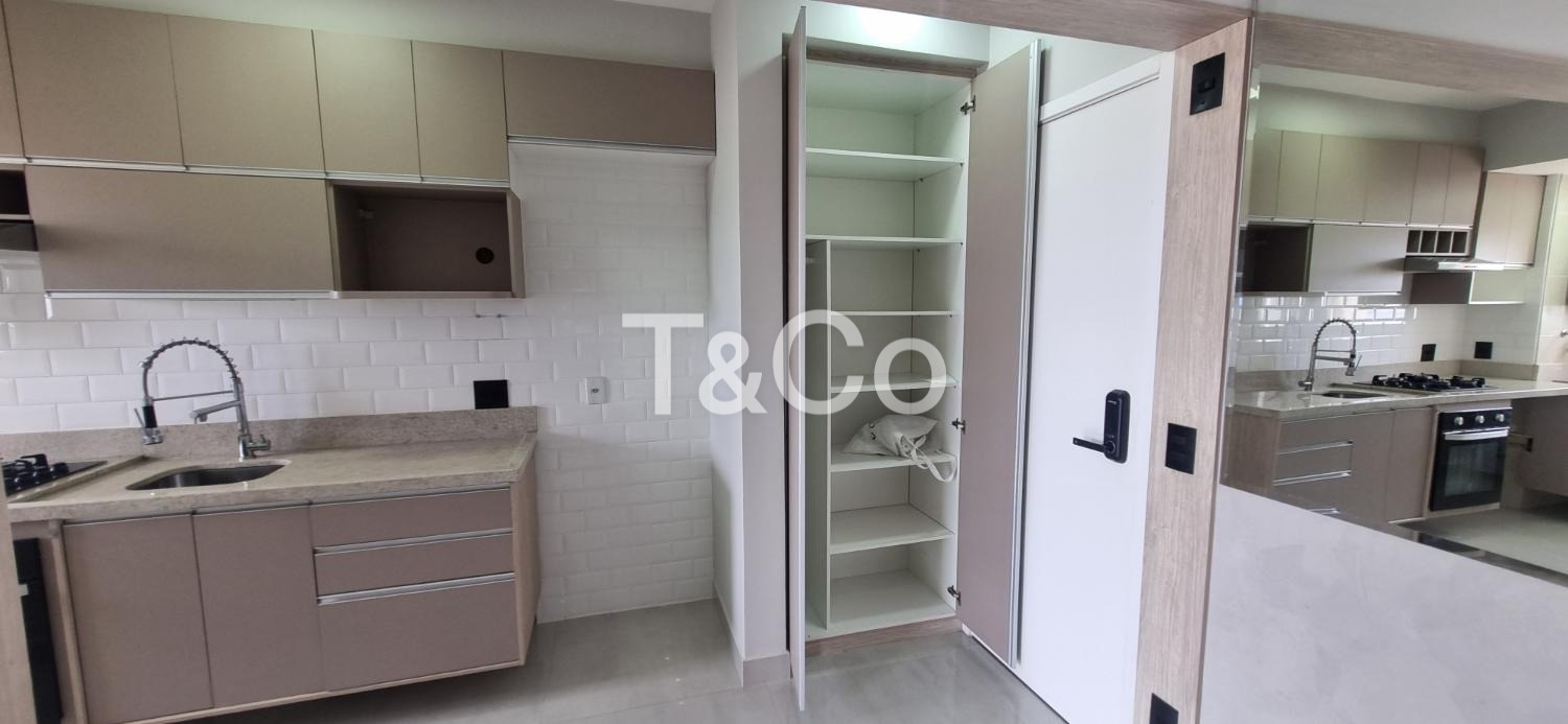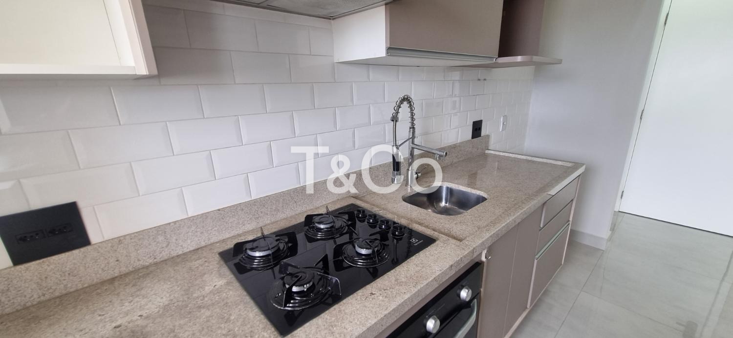 A cozinha é planejada e equipada com cooktop, forno e coifa em inox, com ótimo padrão de acabamento e funcionalidade. O imóvel possui armários planejados em todos os ambientes, garantindo organização e aproveitamento inteligente dos espaços.
