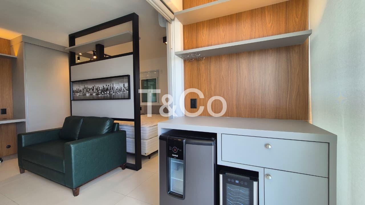 Móveis planejados de alto padrão - Projeto de iluminação moderno e sofisticado - Marcenaria diferenciada - Sofá confortável - 2 aparelhos de ar-condicionado - Janela do quarto automatizada - Cozinha completa e equipada: Geladeira - Micro-ondas - Fogão - Cervejeira - Adega