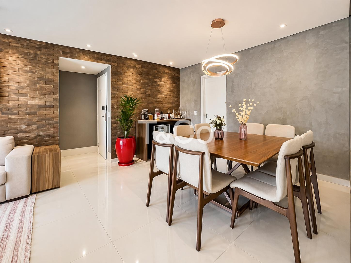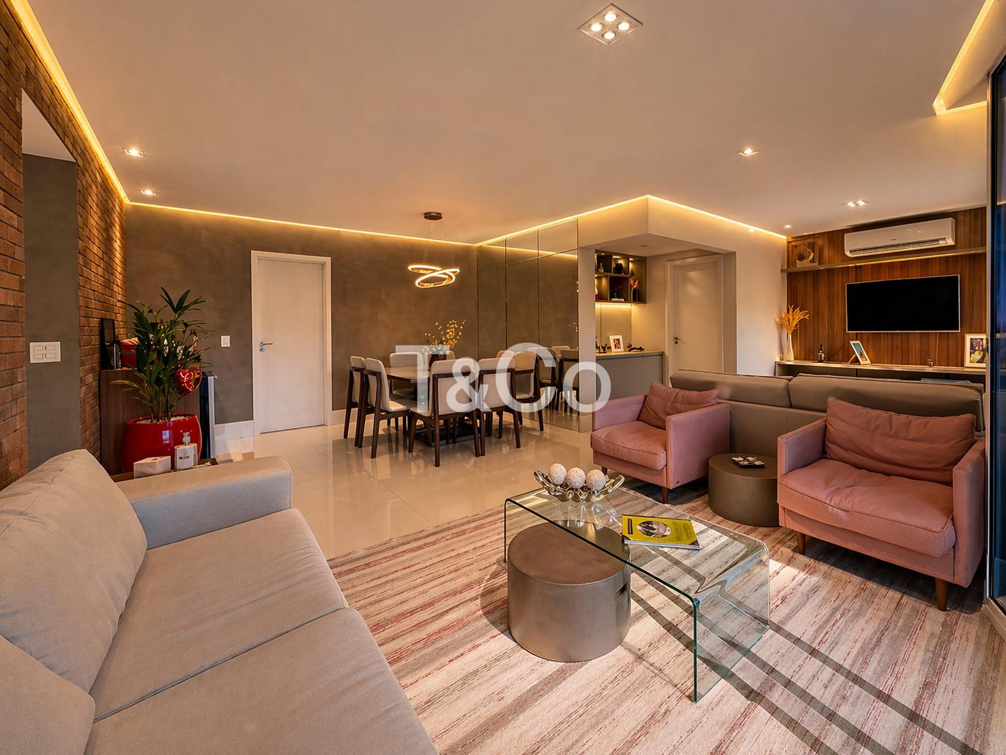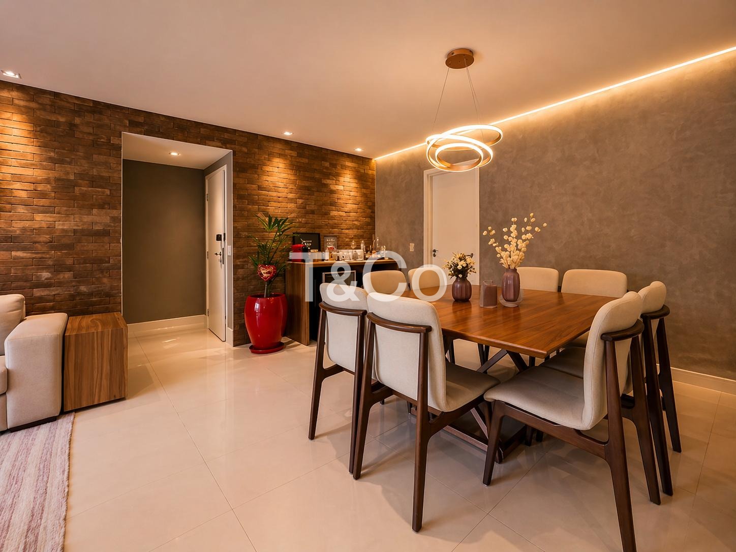 O apartamento conta com uma ampla sala para 3 ambientes, perfeita para receber amigos e familiares, integrada a uma charmosa varanda gourmet. São 3 suítes espaçosas, todas com ar-condicionado e excelente padrão de acabamento, além de lavabo para maior comodidade.