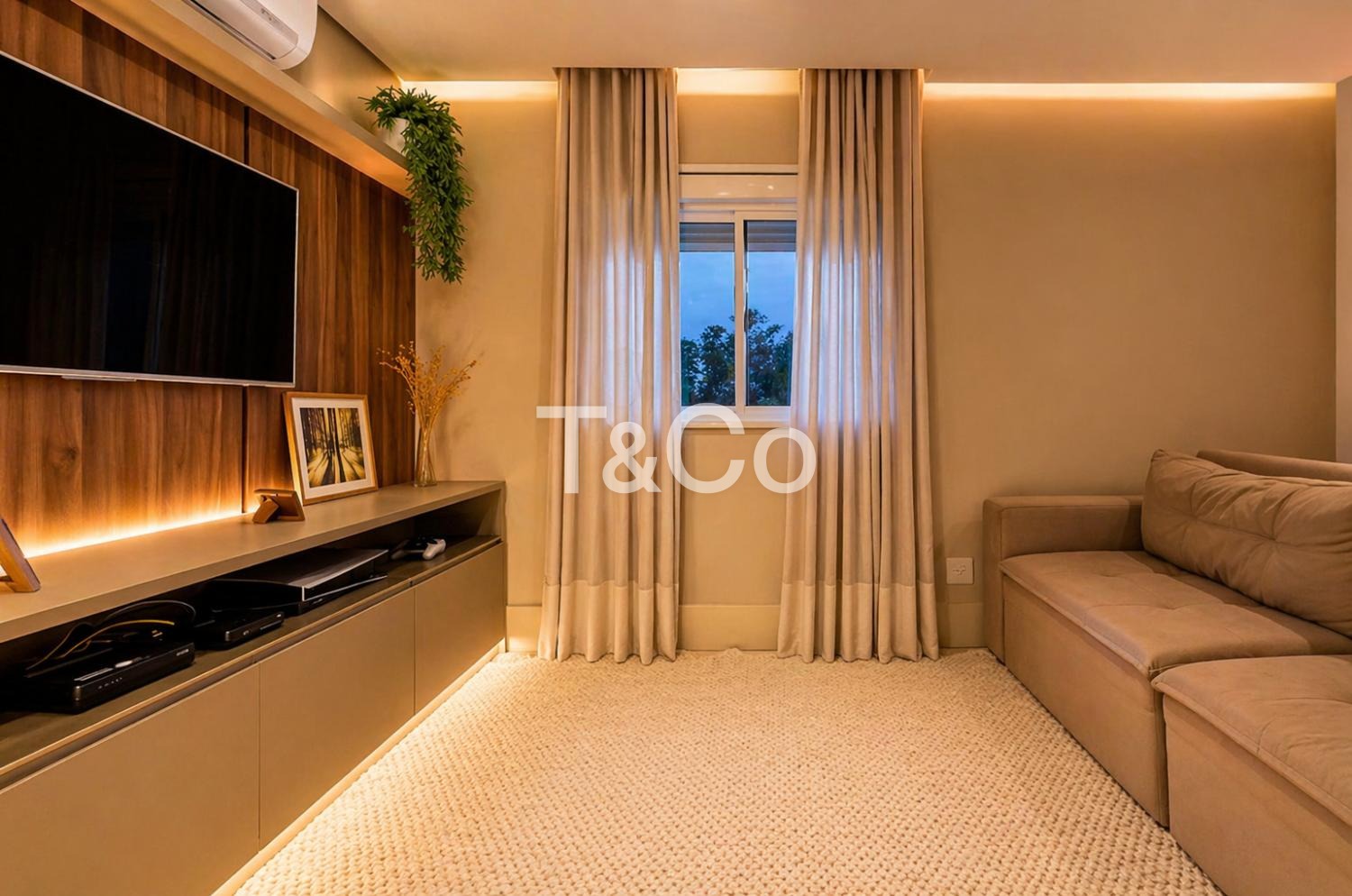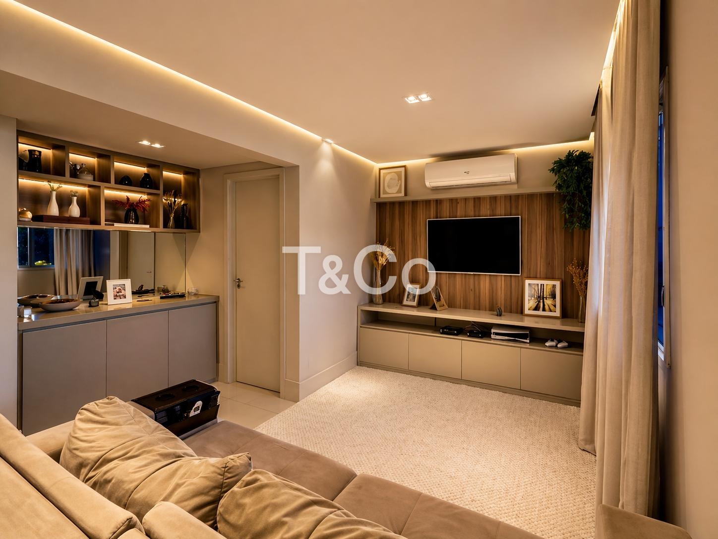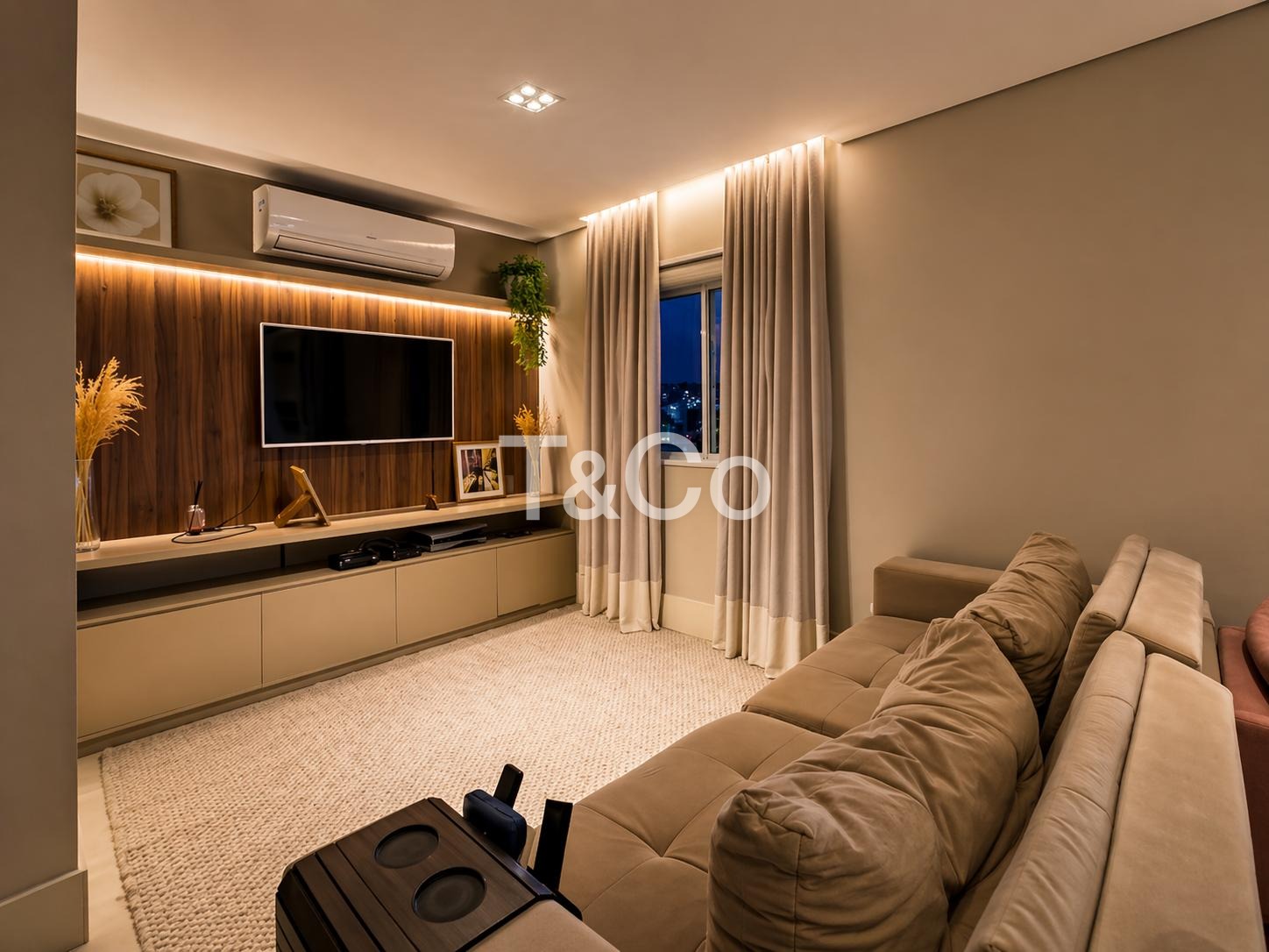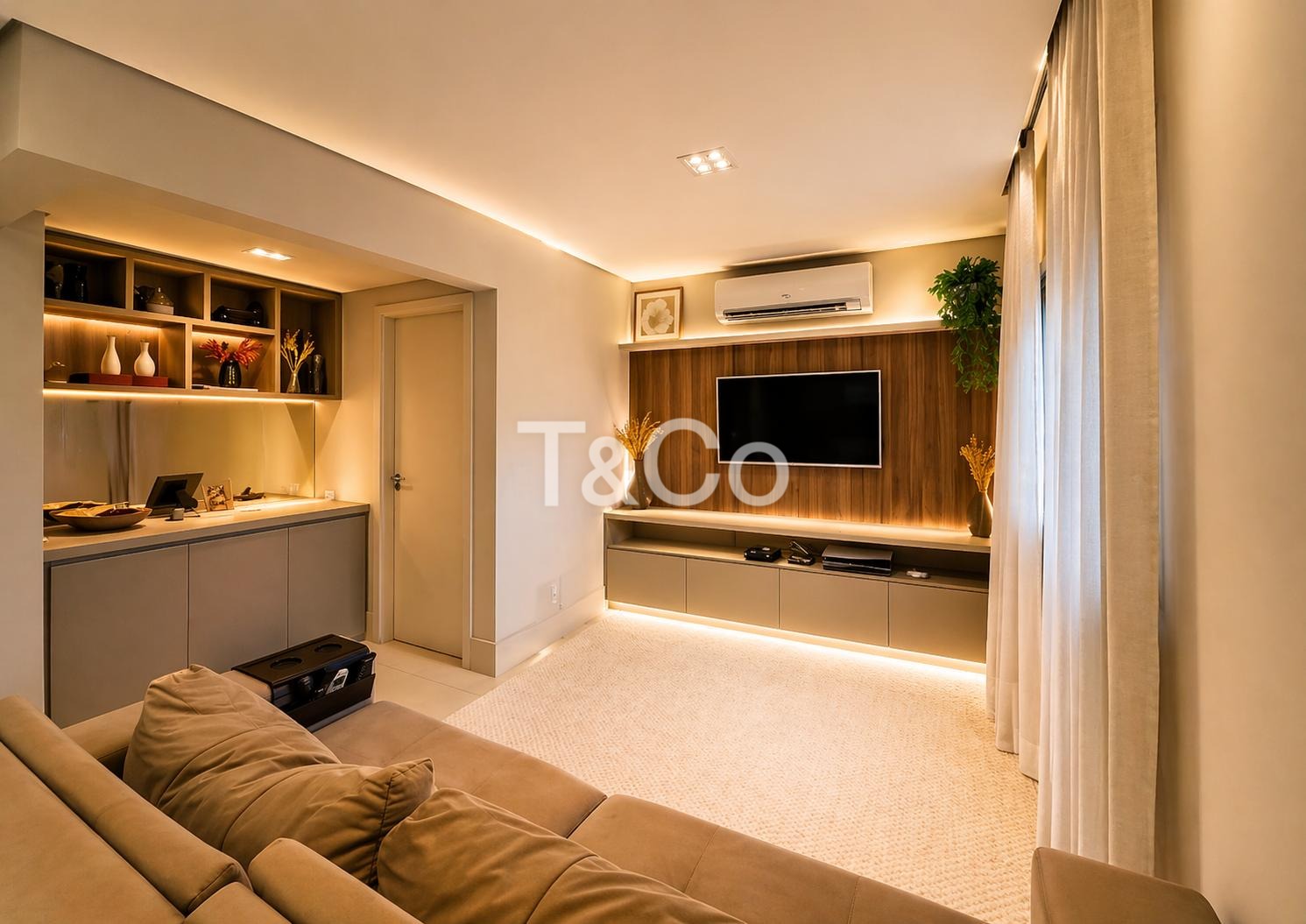 O apartamento conta com uma ampla sala para 3 ambientes, perfeita para receber amigos e familiares, integrada a uma charmosa varanda gourmet. São 3 suítes espaçosas, todas com ar-condicionado e excelente padrão de acabamento, além de lavabo para maior comodidade.