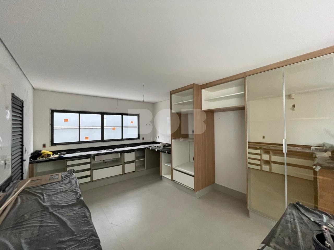 No closet da suíte master armário reto (masculino) e em "U" (feminino), gabinetes em todos wcs. (menos lavabo).