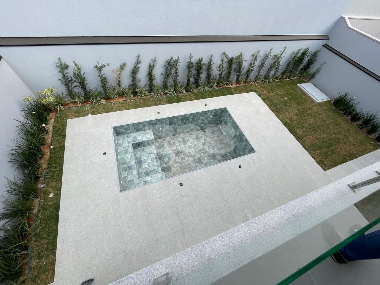 Piscina com hidro e aquecimento solar com Suporte elétrico, Paisagismo básico.
