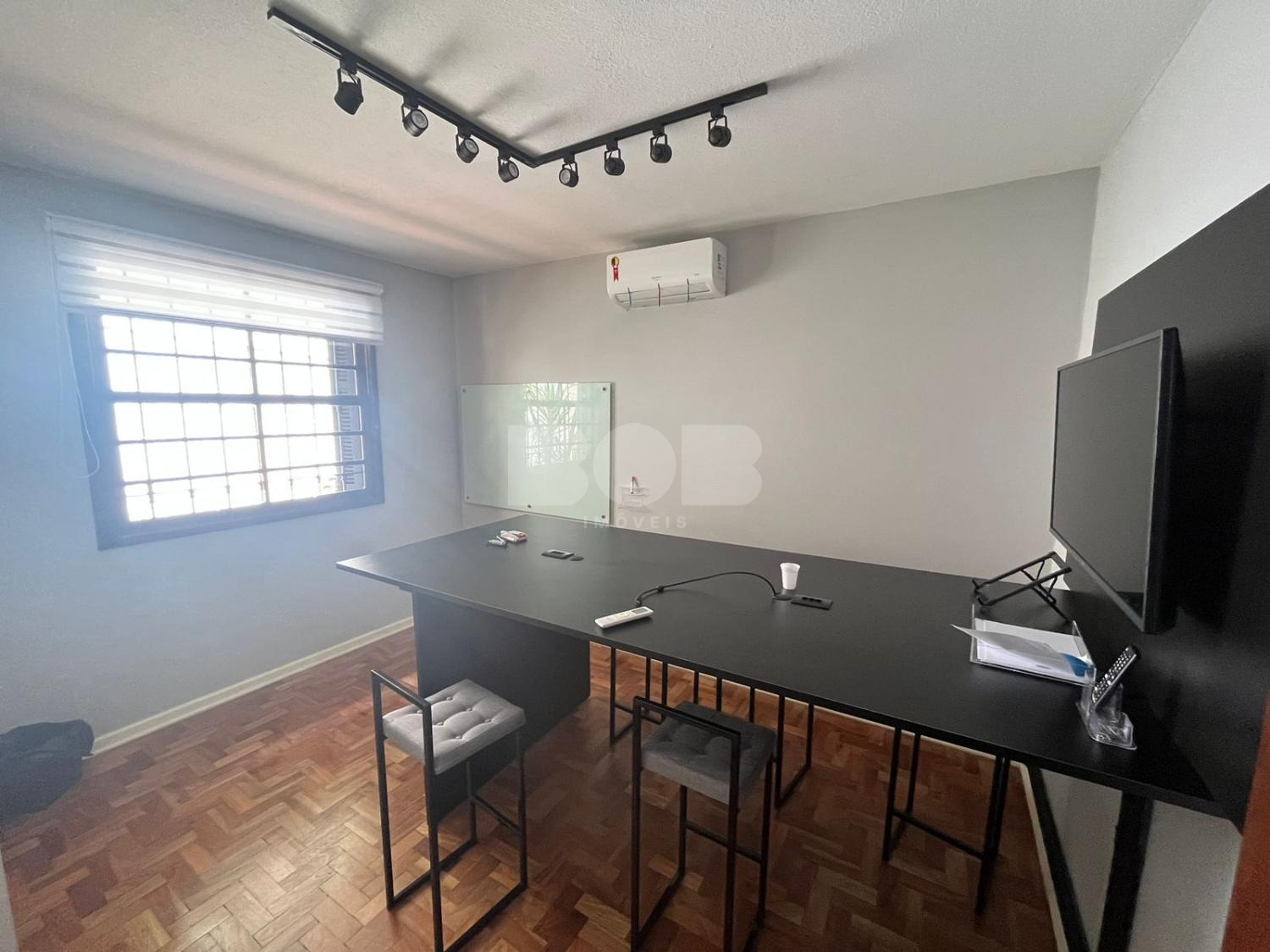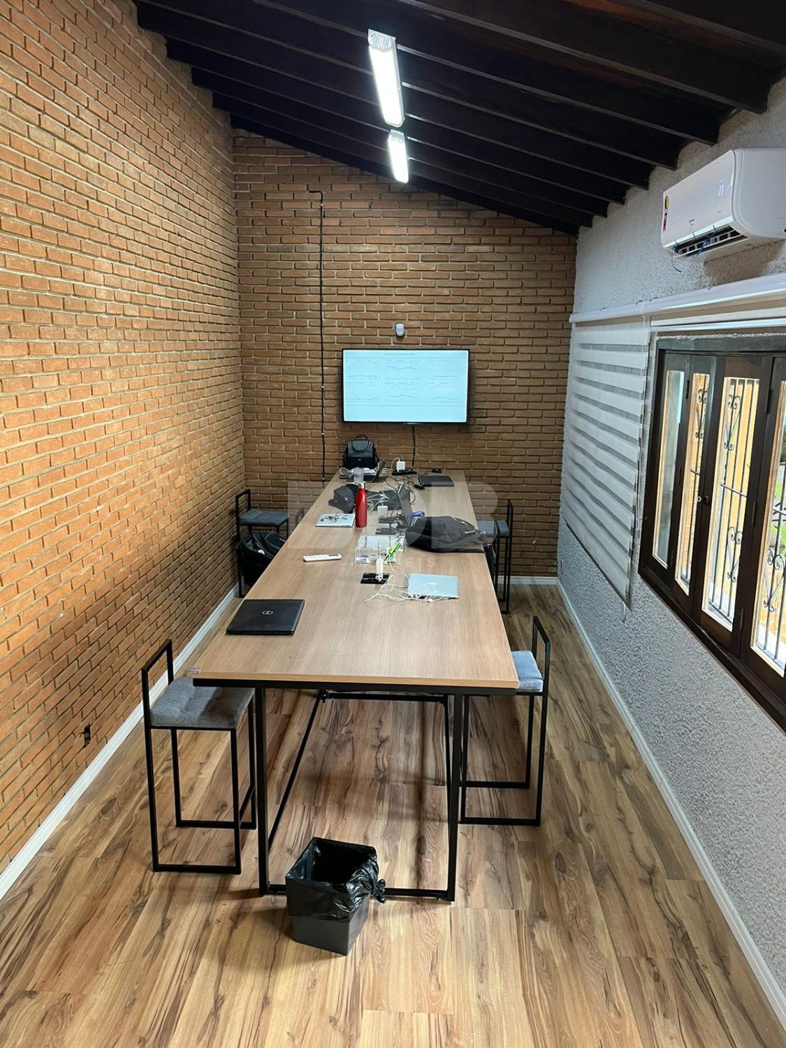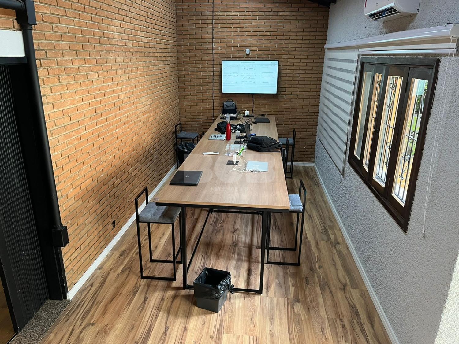Sala com estantes e banheiro para escritório privativo, sala de reuniões, copa