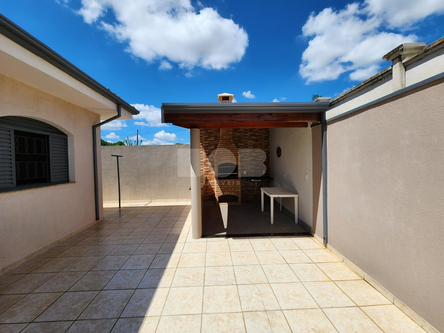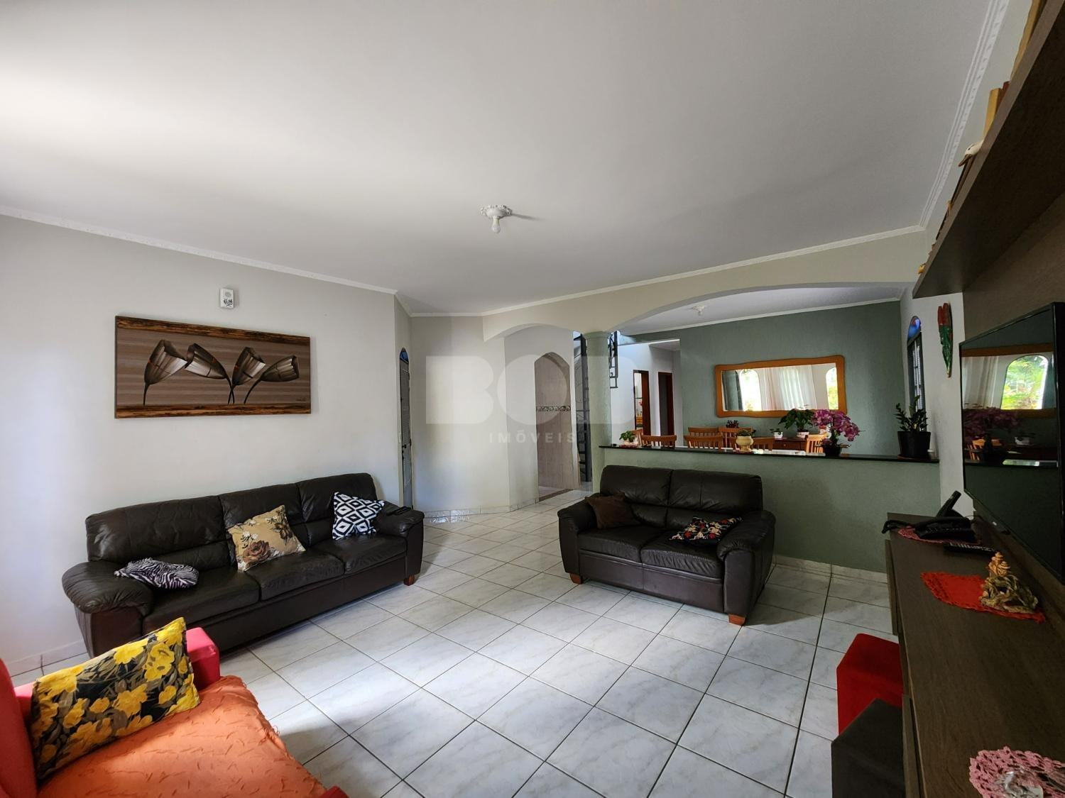 O terreno possui uma área de 320m² construção tem 217 m². A casa possui 3 quartos, incluindo 1 suíte, além de 1 banheiro social. No térreo, há uma ampla sala de TV, copa, cozinha e área de serviço. No piso superior, há outra sala de TV e um cômodo adicional. O quintal conta com uma área de churrasqueira, banheiro e quarto.