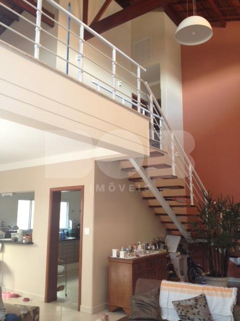 Casa sobrado onde possui no pavimento térreo ampla sala de estar e jantar, lareira, lavabo, uma suíte, cozinha americana, despensa, área de serviço. Amplo espaço de lazer com churrasqueira, deck em madeira, piscina, banheiro e quintal com arvores frutíferas. No pavimento superior sala de tv, 03 amplas suítes sendo uma com sacada.
