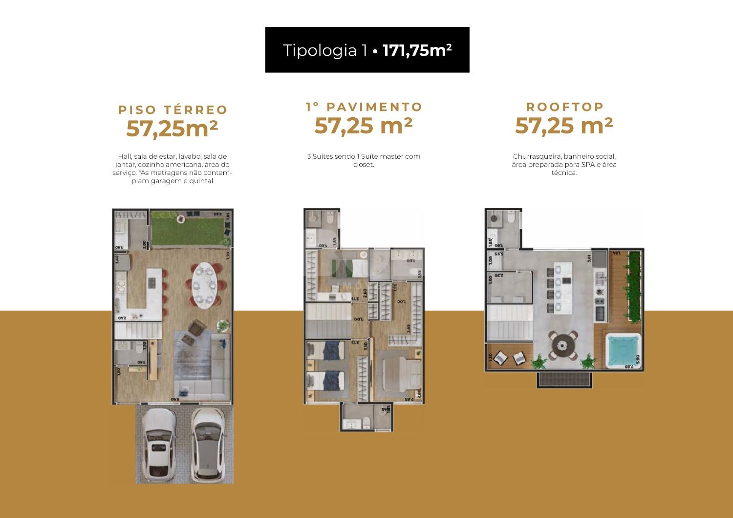 * Piso térreo com Hall, sala de estar e jantar, lavabo, cozinha americana, área de serviço separada.
