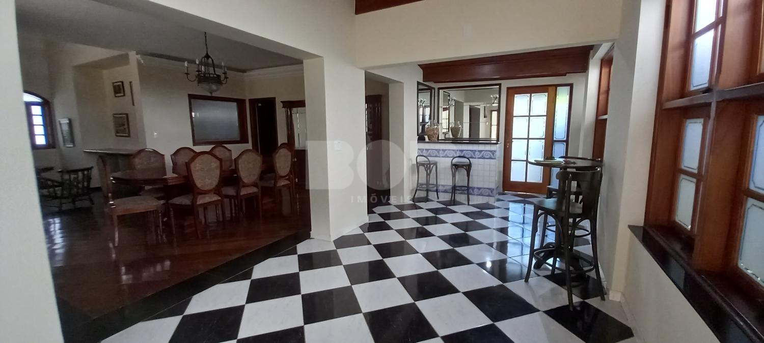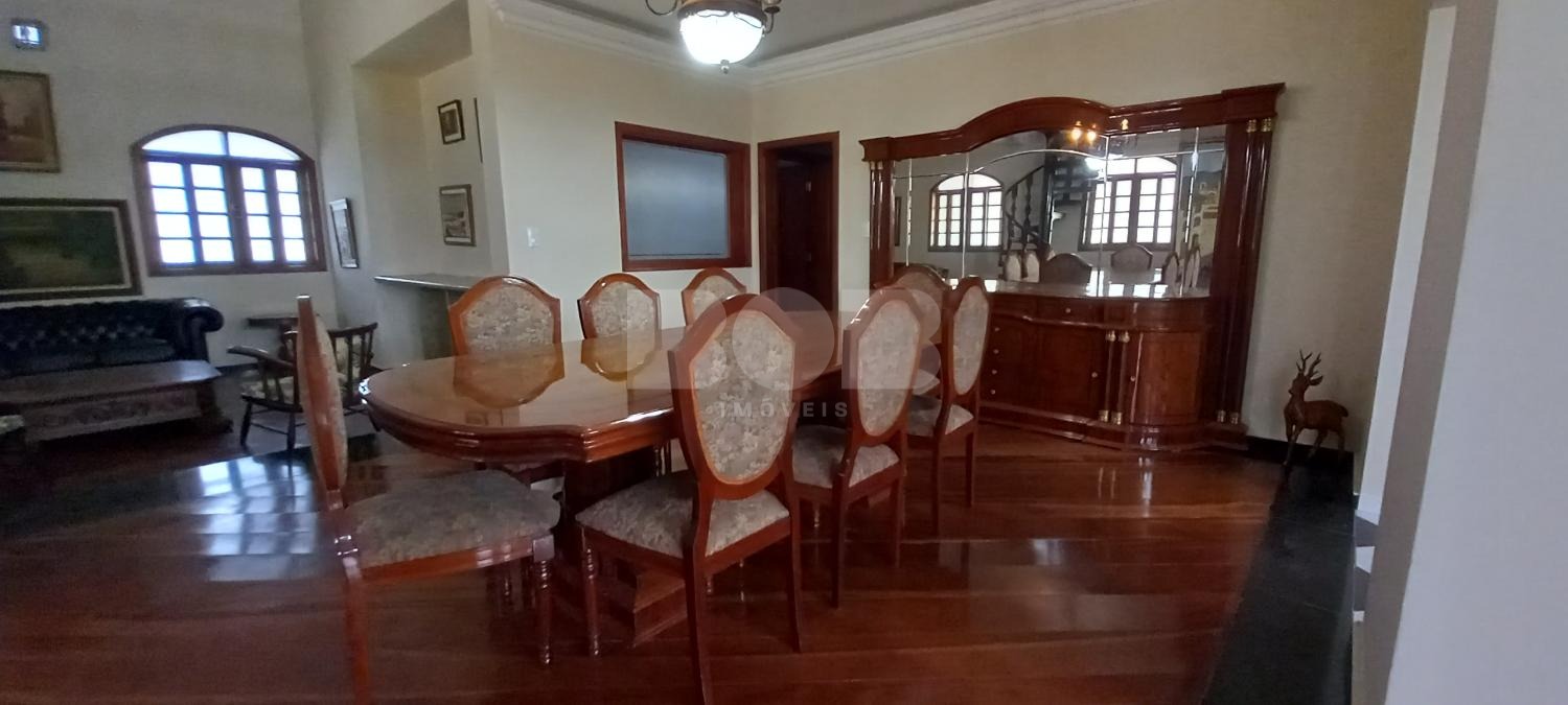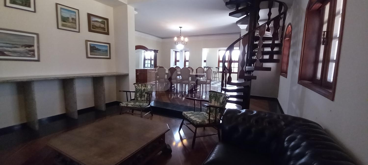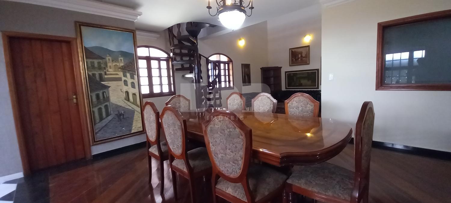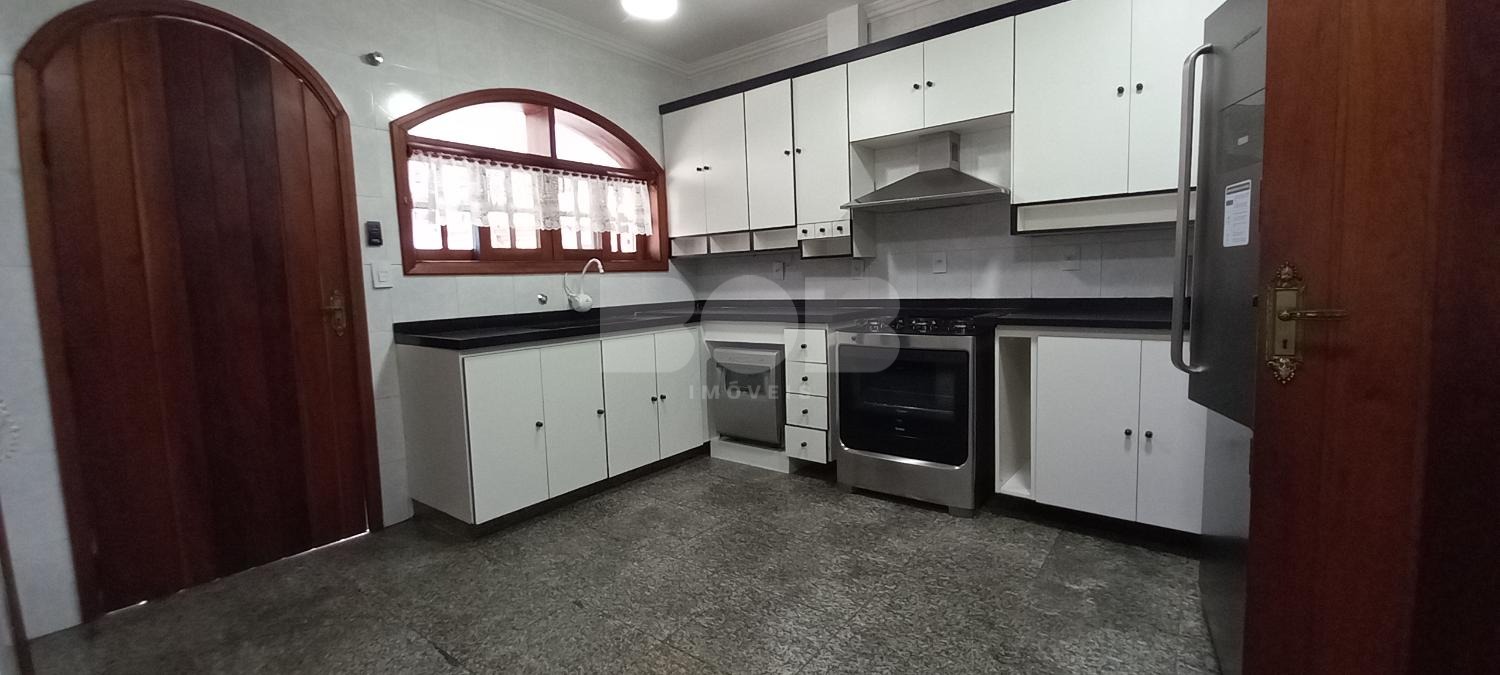 Casa térrea com 3 suítes amplas com armários, banheiros com box blindex, sala de estar e jantar, hall de entrada com bar, lavabo, mezanino com sala, 2 quartos e lavabo, cozinha rica em armários, lavanderia, box dependência de empregada, área externa com quiosque e cerca viva.