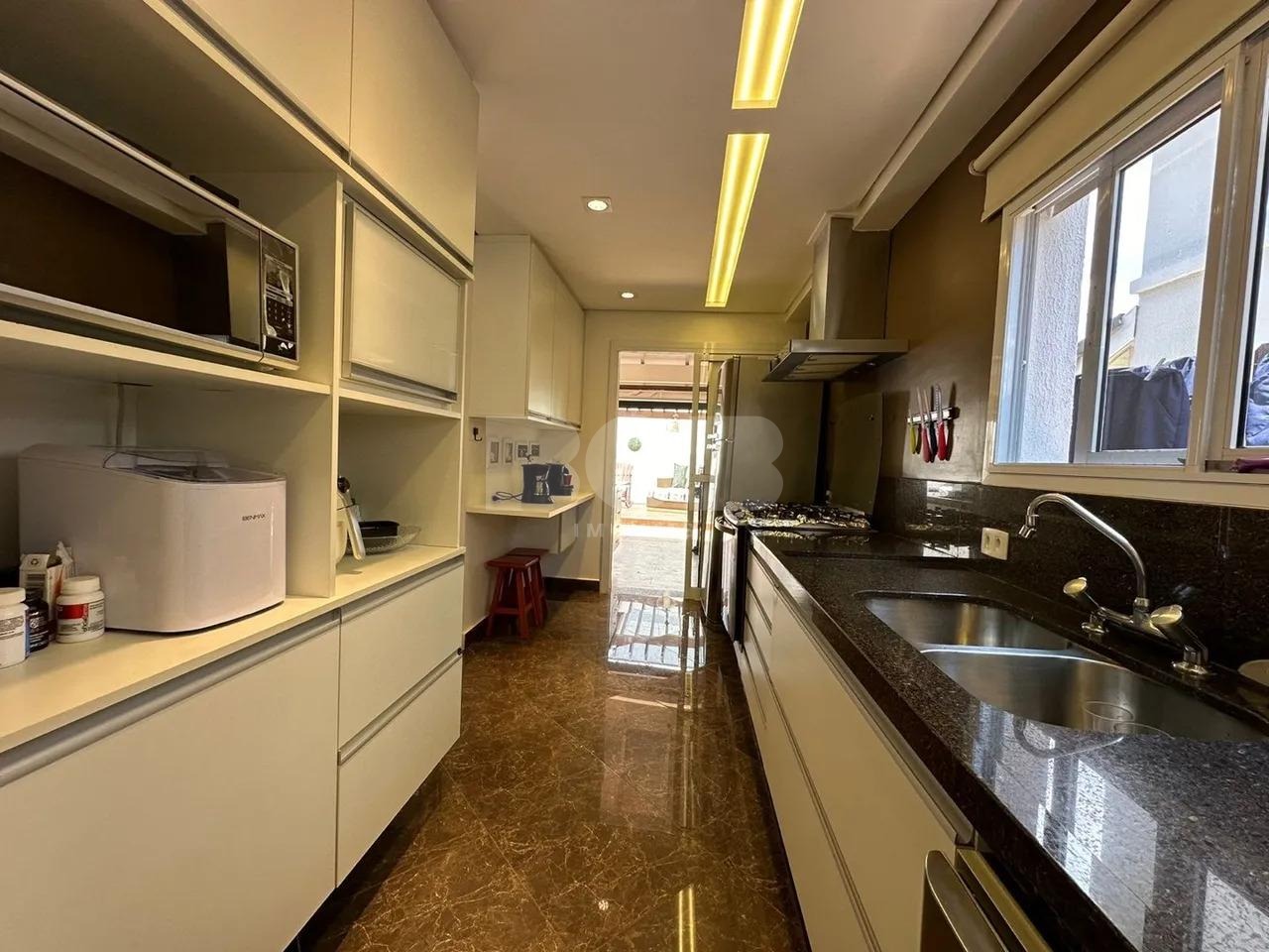 A cozinha, moderna e funcional, foi projetada para quem aprecia a arte de cozinhar. Com armários planejados e espaço para todos os seus utensílios, é o coração da casa. A área de serviço, com lavanderia e despensa, oferece toda a praticidade necessária para o dia a dia, enquanto o banheiro de serviço garante o conforto dos funcionários.