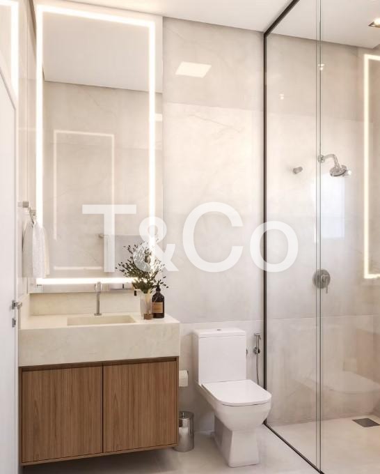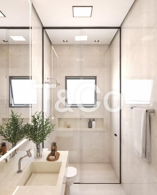 - Banheiros modernos com box blindex, gabinetes e duchas de alta qualidade