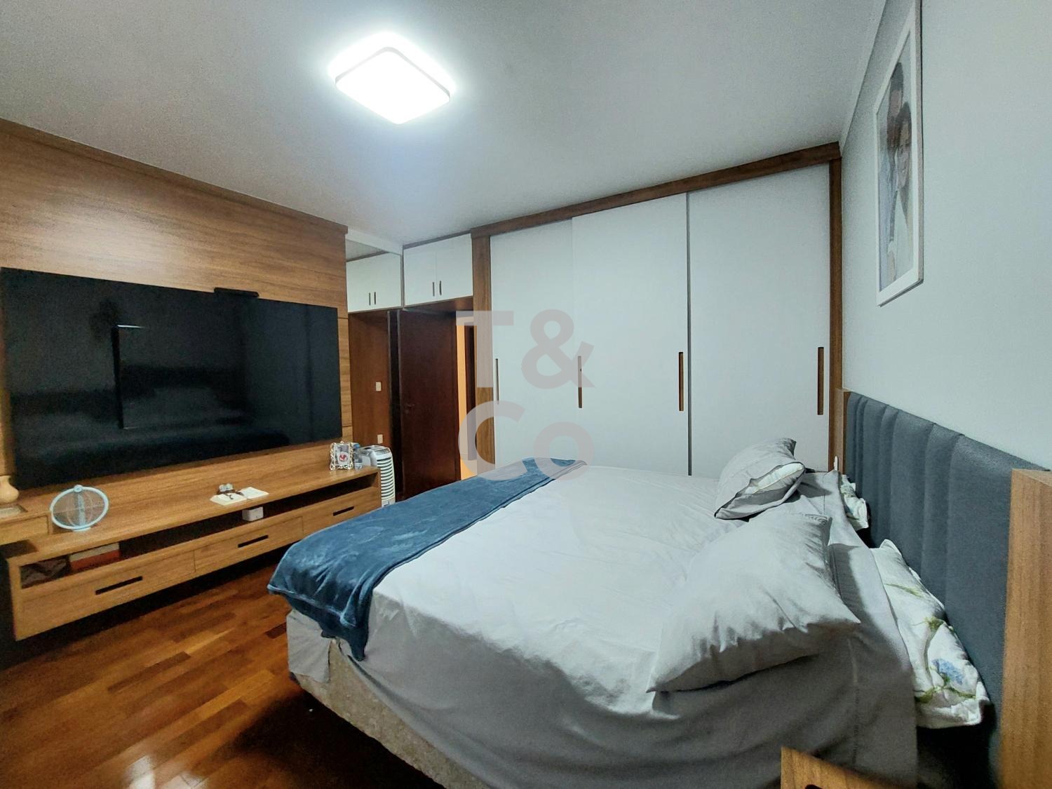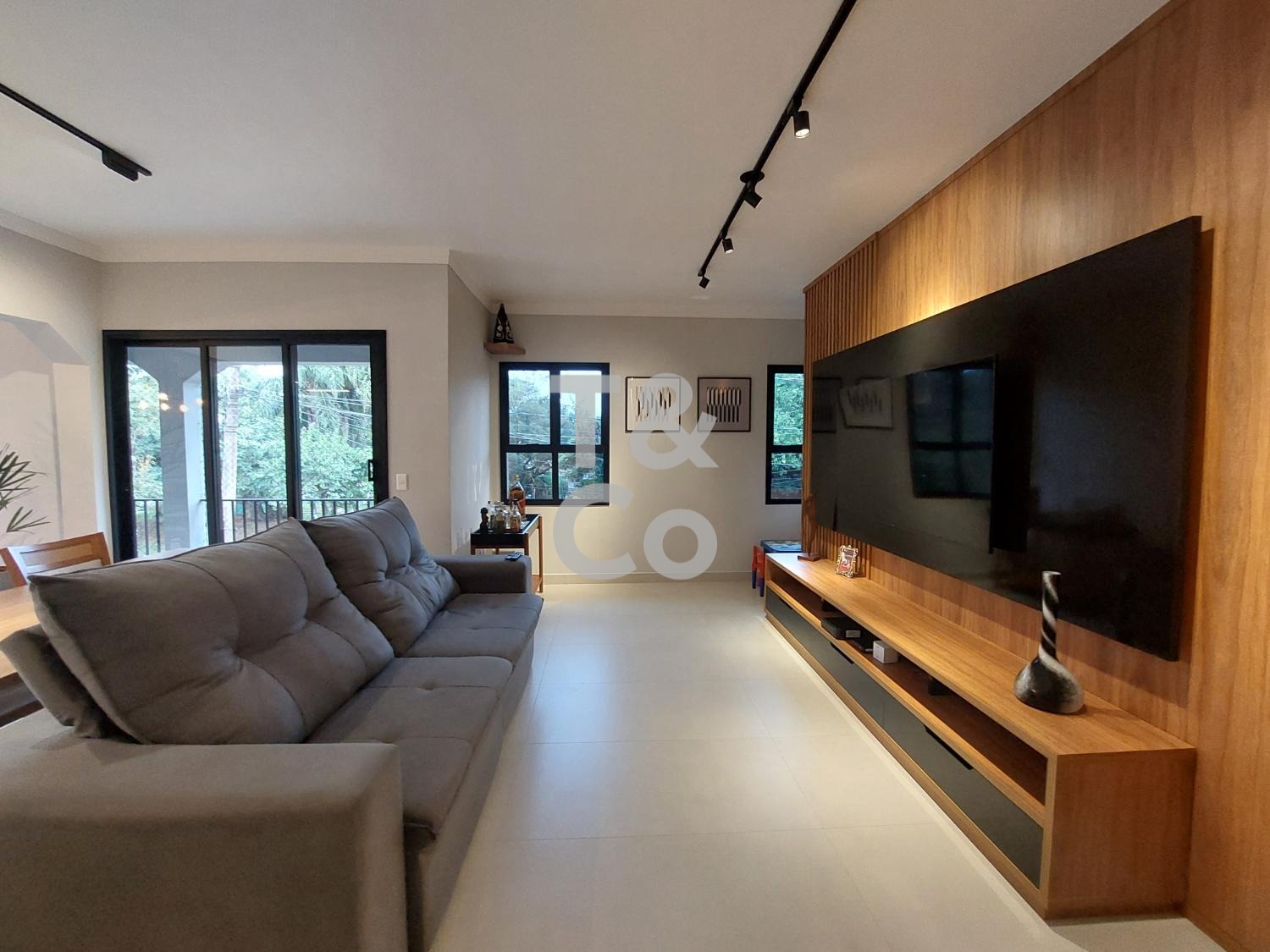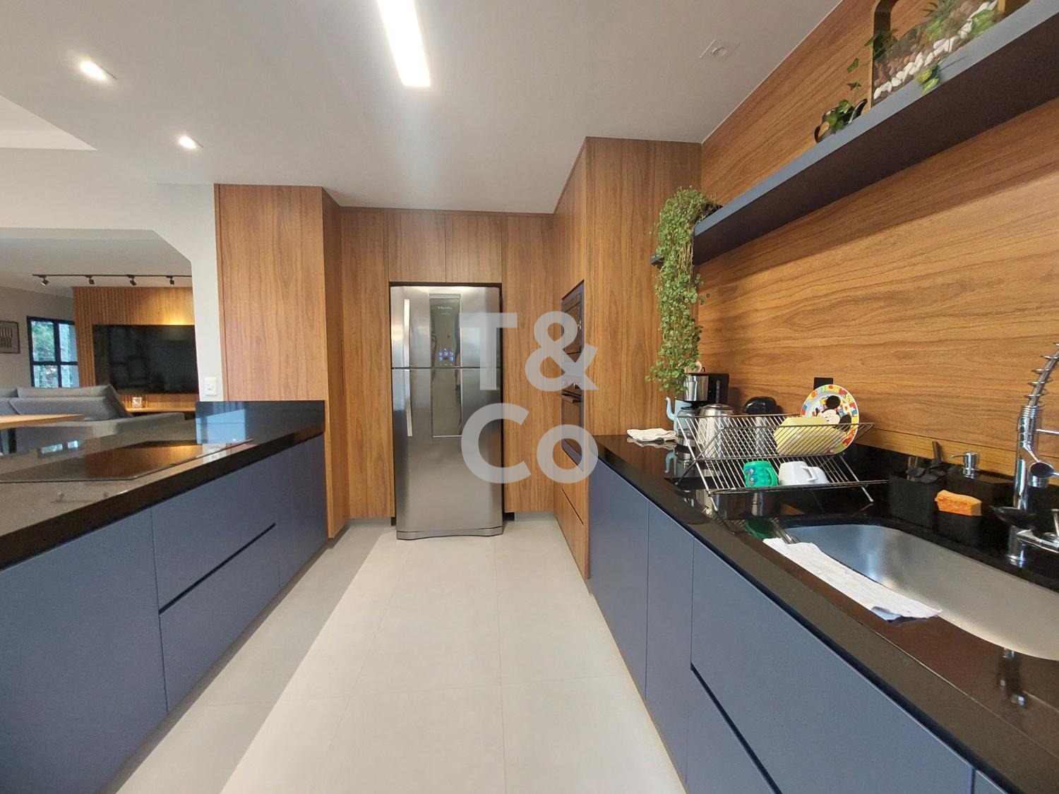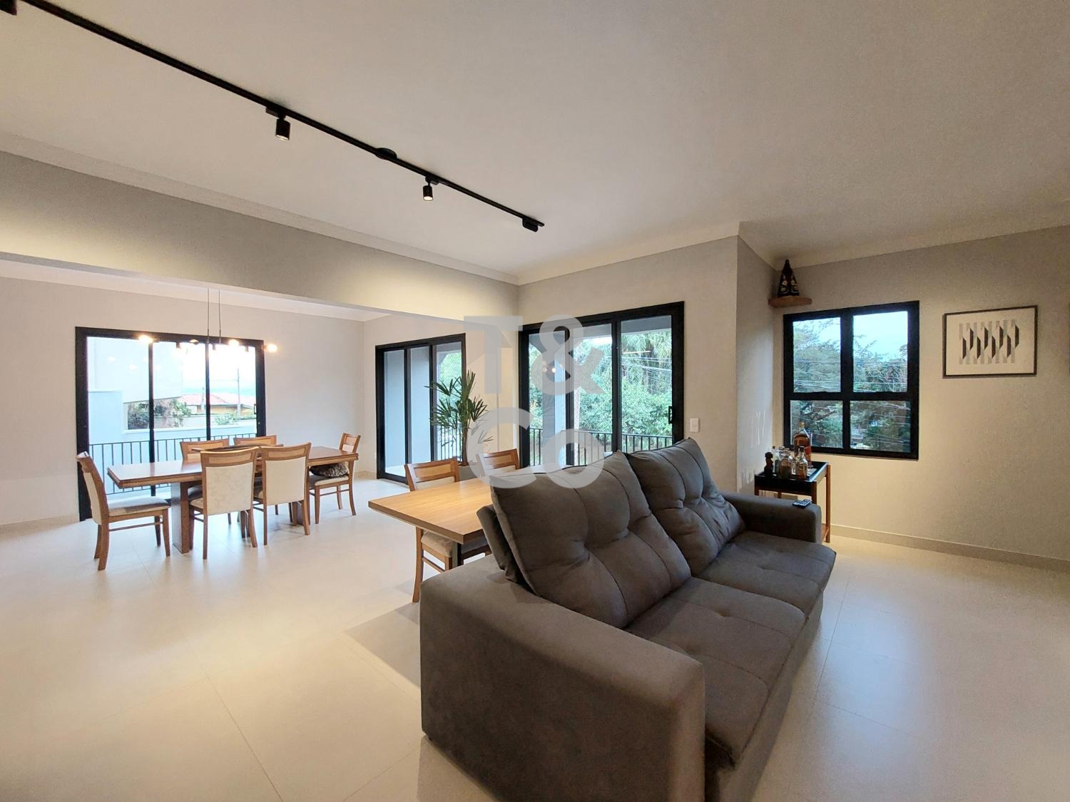 Repaginada, em rua tranquila e arborizada. No piso superior, todos os ambientes principais são distribuídos de forma linear, sem escadas: living amplo integrado à cozinha planejada, sacada com vista para área de preservação.