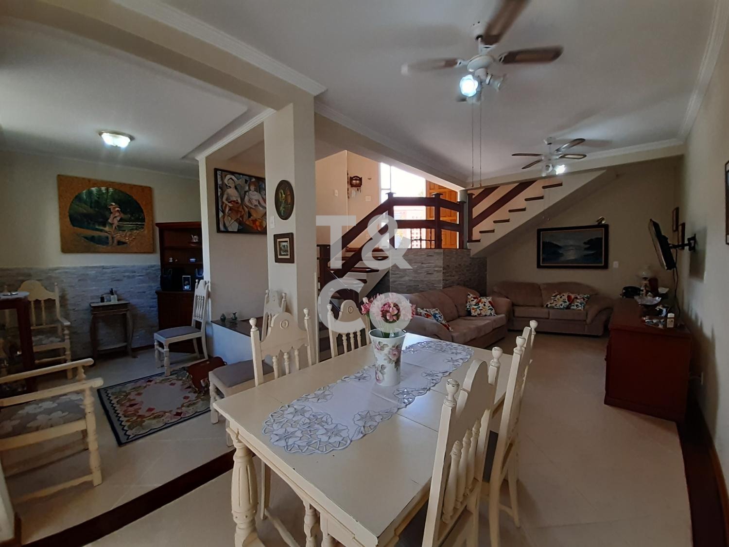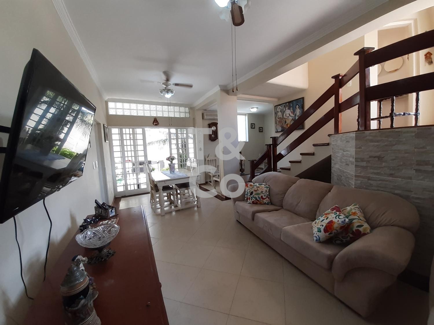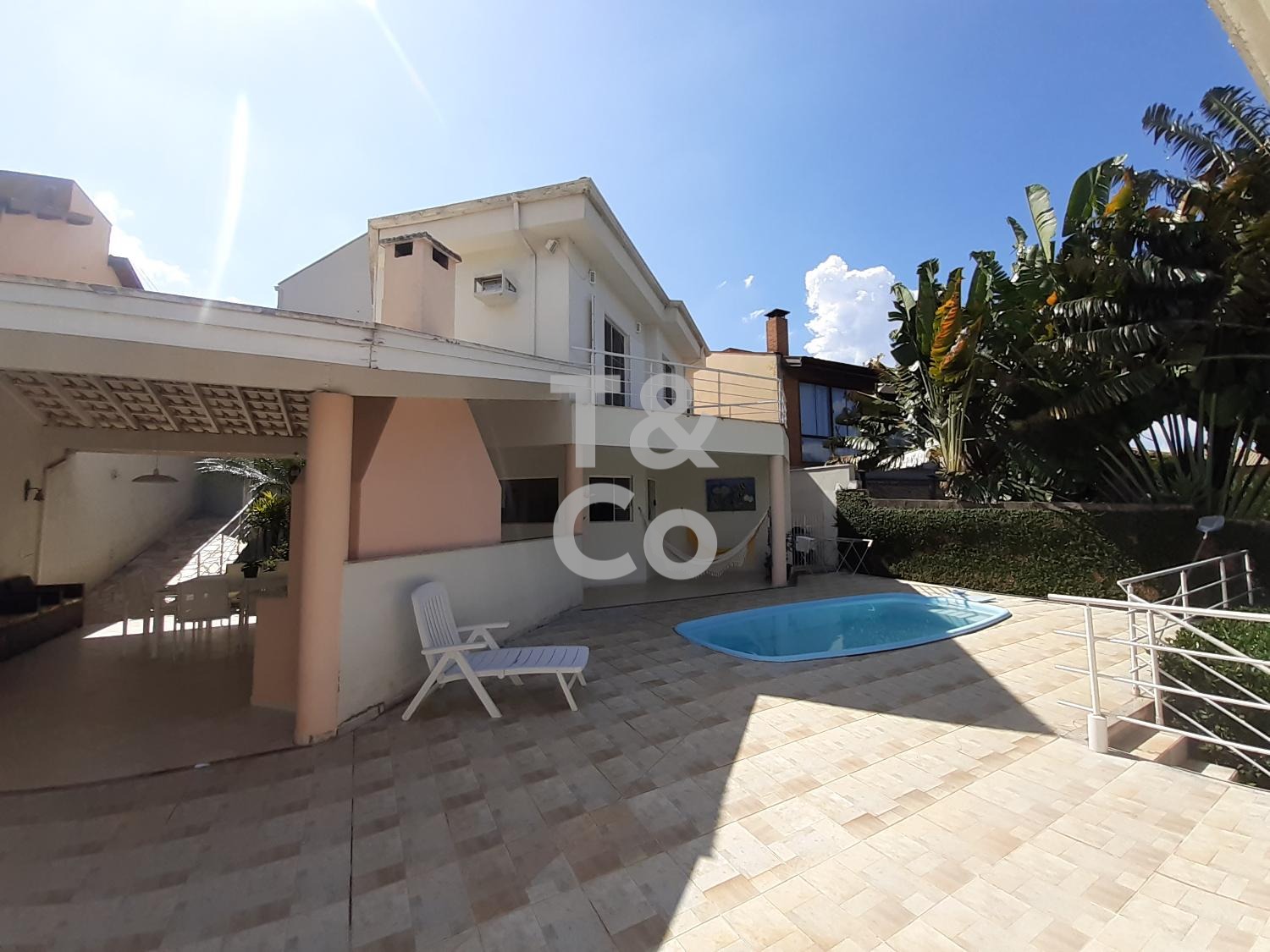 A casa principal é um sobrado com 3 dormitórios, sendo 1 suíte com closet, ar-condicionado e varanda com bela vista. Conta ainda com sala para dois ambientes climatizada, lavabo, cozinha e excelente acabamento.