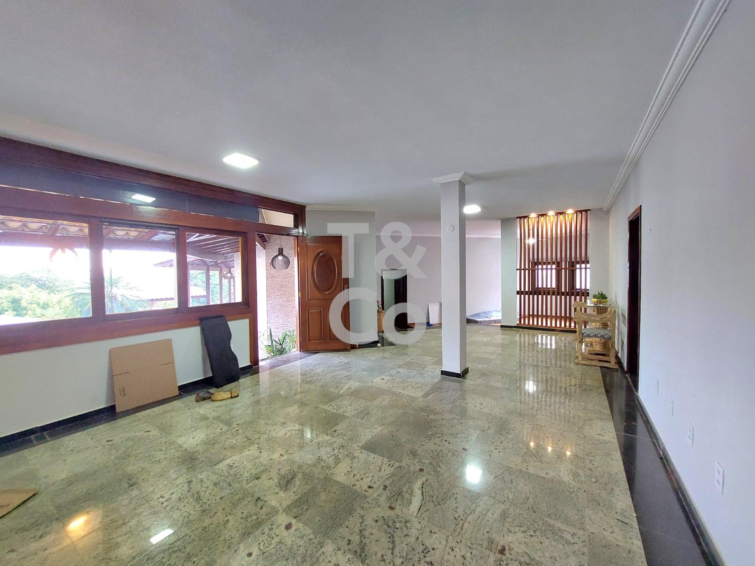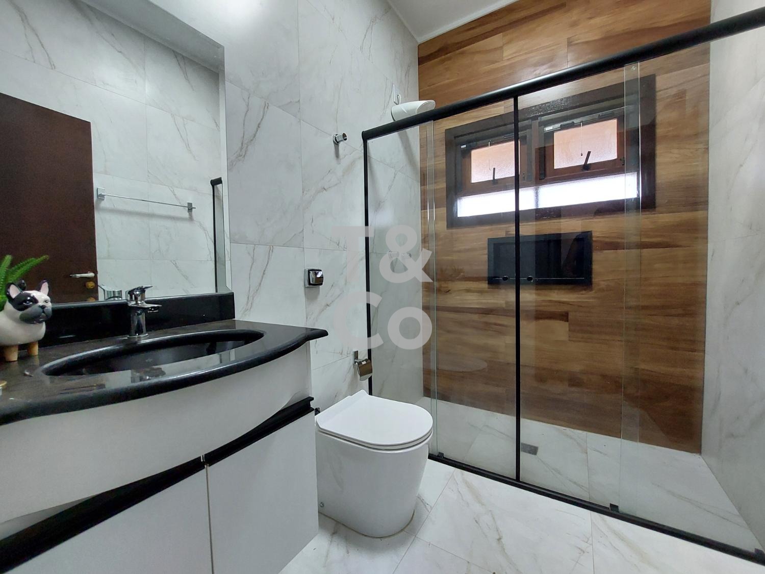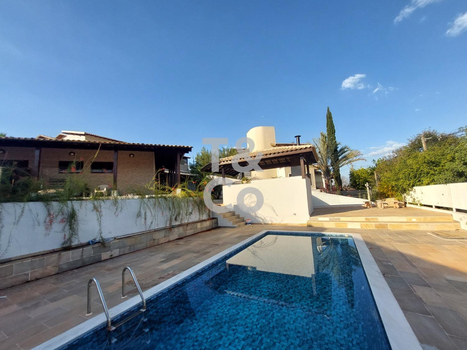 Os outros 2 dormitórios são no piso superior, também com um banheiro social. Portas-balcões voltadas à varanda, com uma vista incrível. Living para 4 ambientes, lavabo, sacada, cozinha planejada, ampla área de serviços e depósito. A segunda casa é térrea. Possui uma sala, pequena copa, 1 dormitório e banheiro. Ideal para quem quer trazer os pais, para ficarem mais próximos ou para reverter em um escritório completo. Lazer com piscina e área da churrasqueira. Espaço para academia ou atelier, com vista para a mata. Aquecimento a gás. Casa com habite-se (CCO).