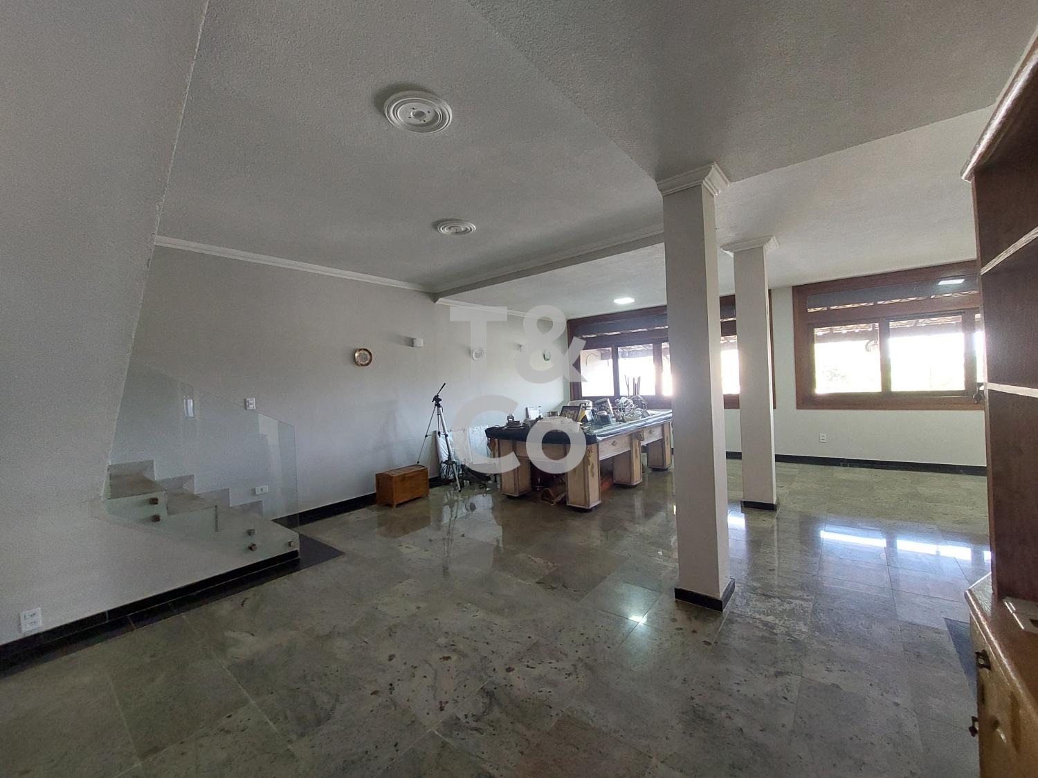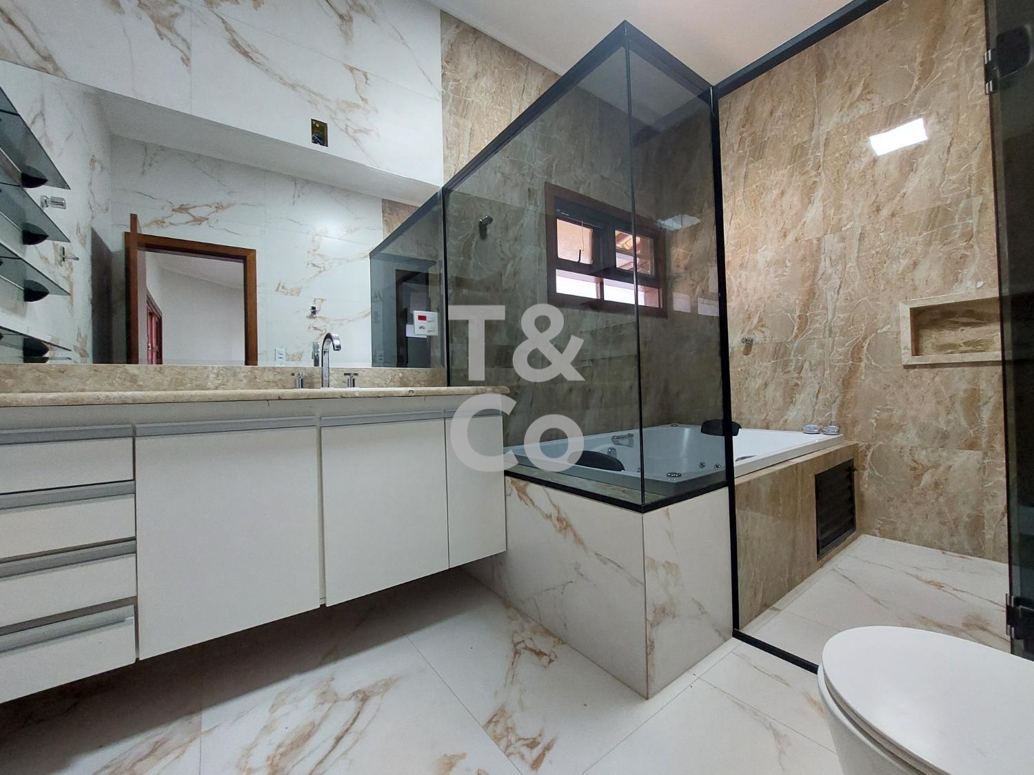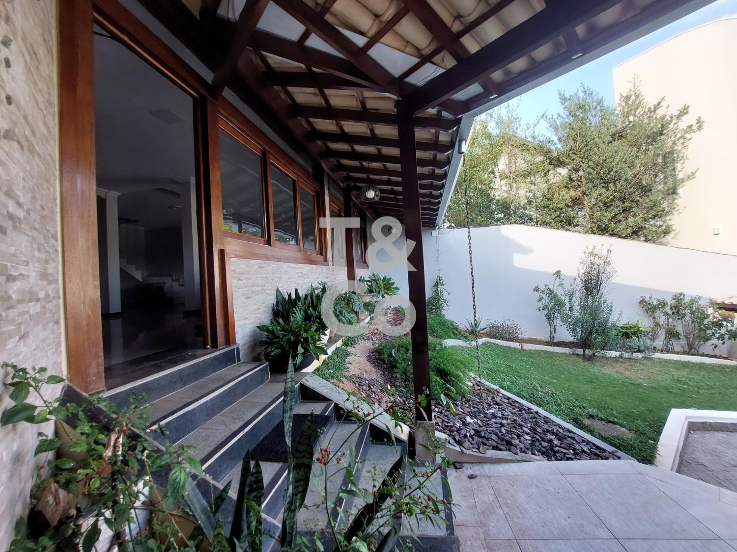 Os outros 2 dormitórios são no piso superior, também com um banheiro social. Portas-balcões voltadas à varanda, com uma vista incrível. Living para 4 ambientes, lavabo, sacada, cozinha planejada, ampla área de serviços e depósito. A segunda casa é térrea. Possui uma sala, pequena copa, 1 dormitório e banheiro. Ideal para quem quer trazer os pais, para ficarem mais próximos ou para reverter em um escritório completo. Lazer com piscina e área da churrasqueira. Espaço para academia ou atelier, com vista para a mata. Aquecimento a gás. Casa com habite-se (CCO).