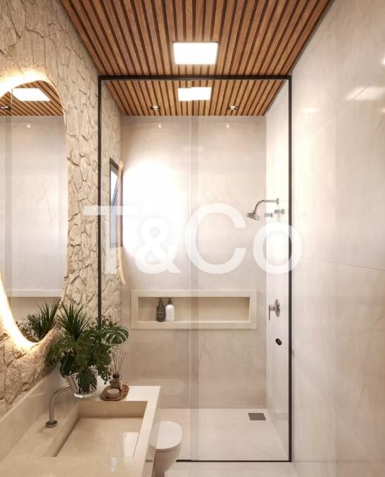 - Banheiros modernos com box blindex, gabinetes e duchas de alta qualidade