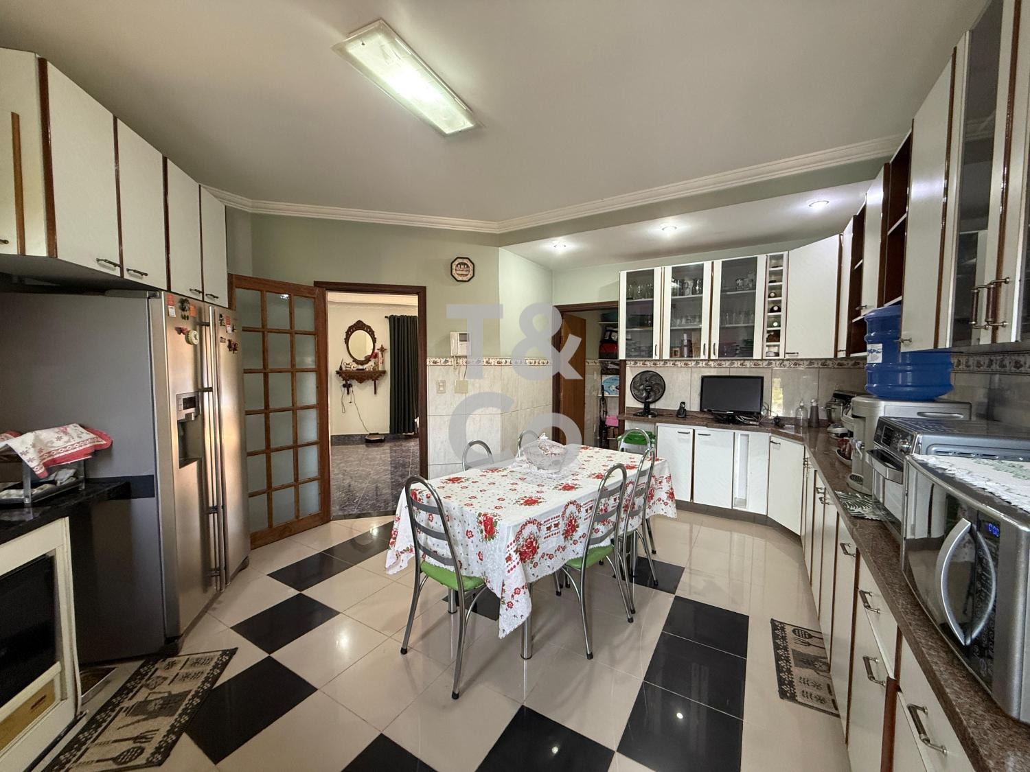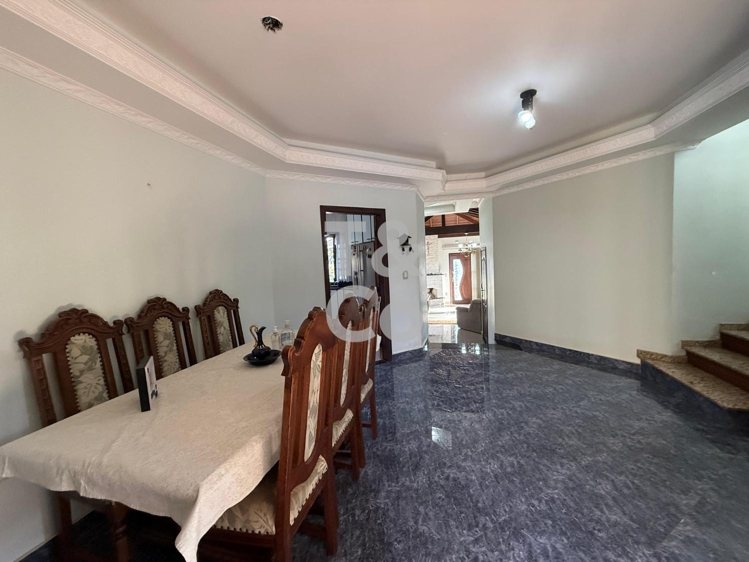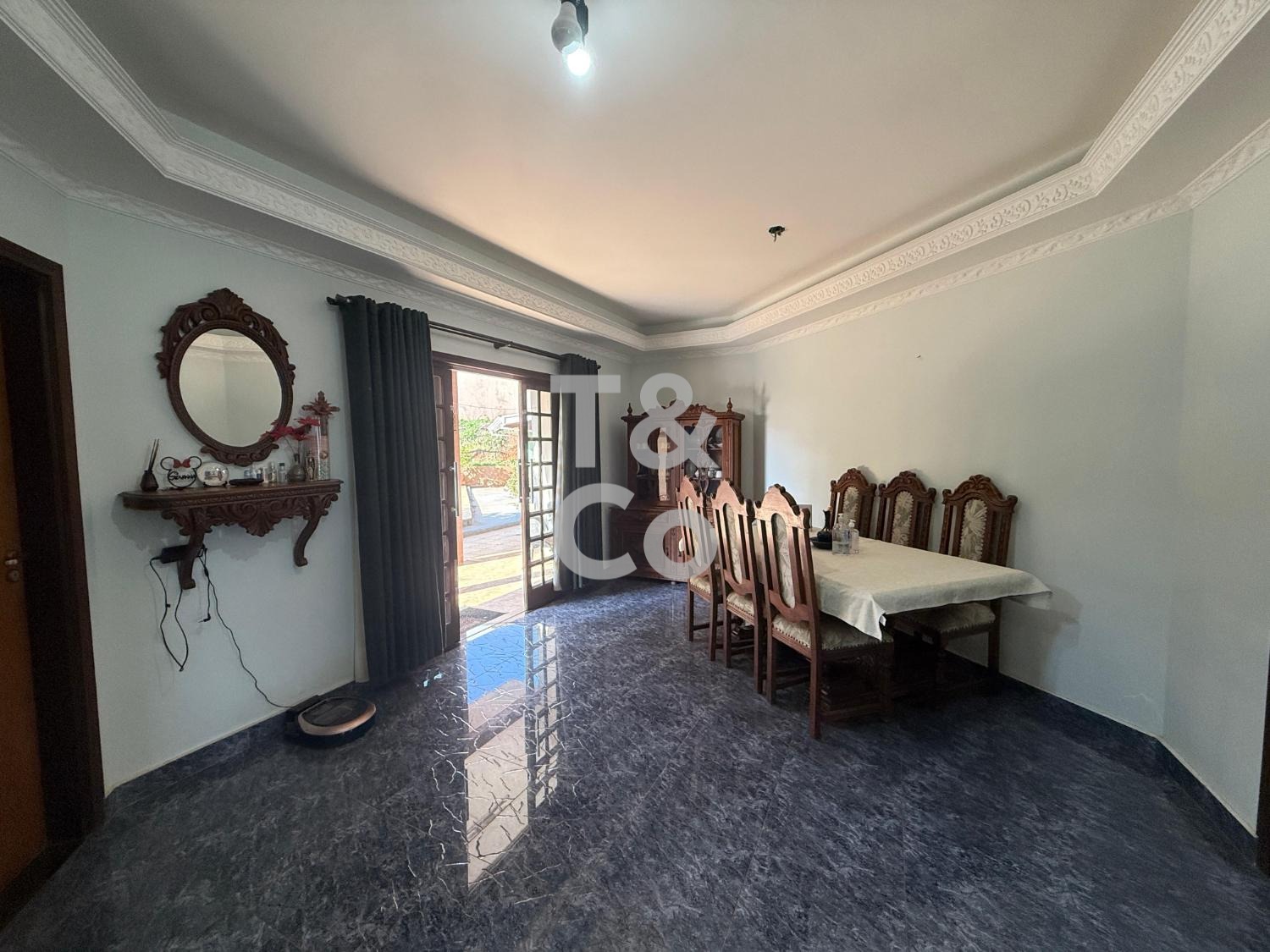 – Sala de jantar com portas voltadas à piscina
