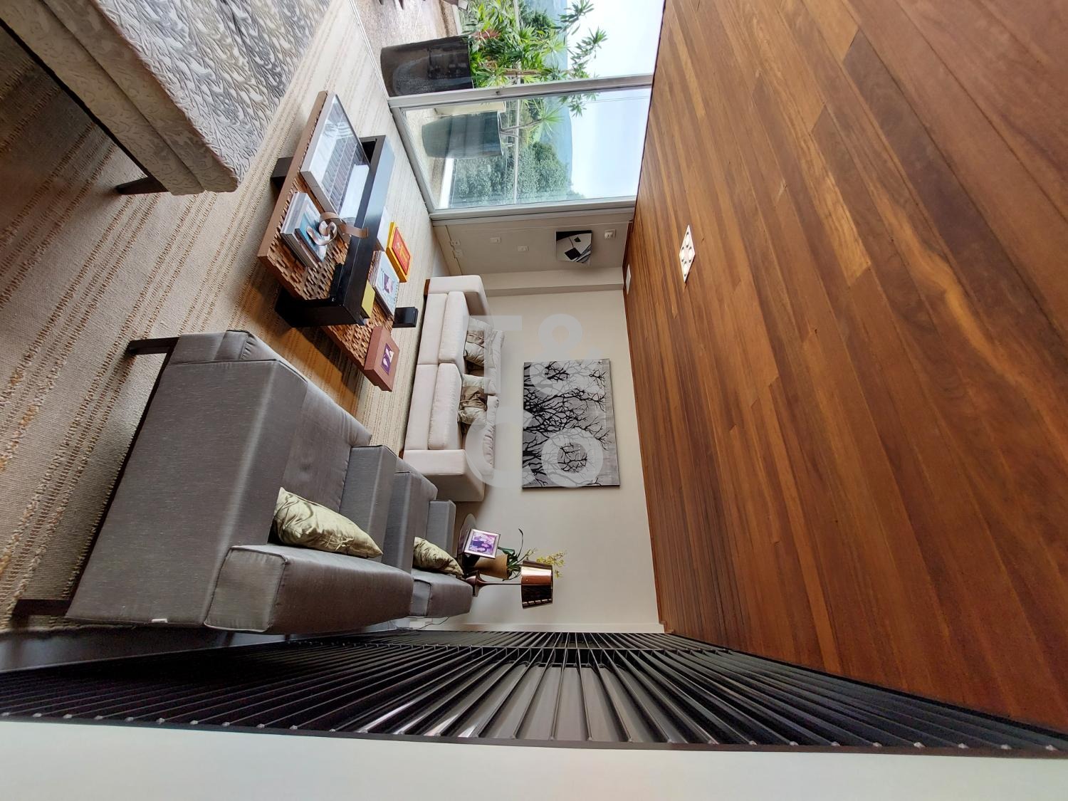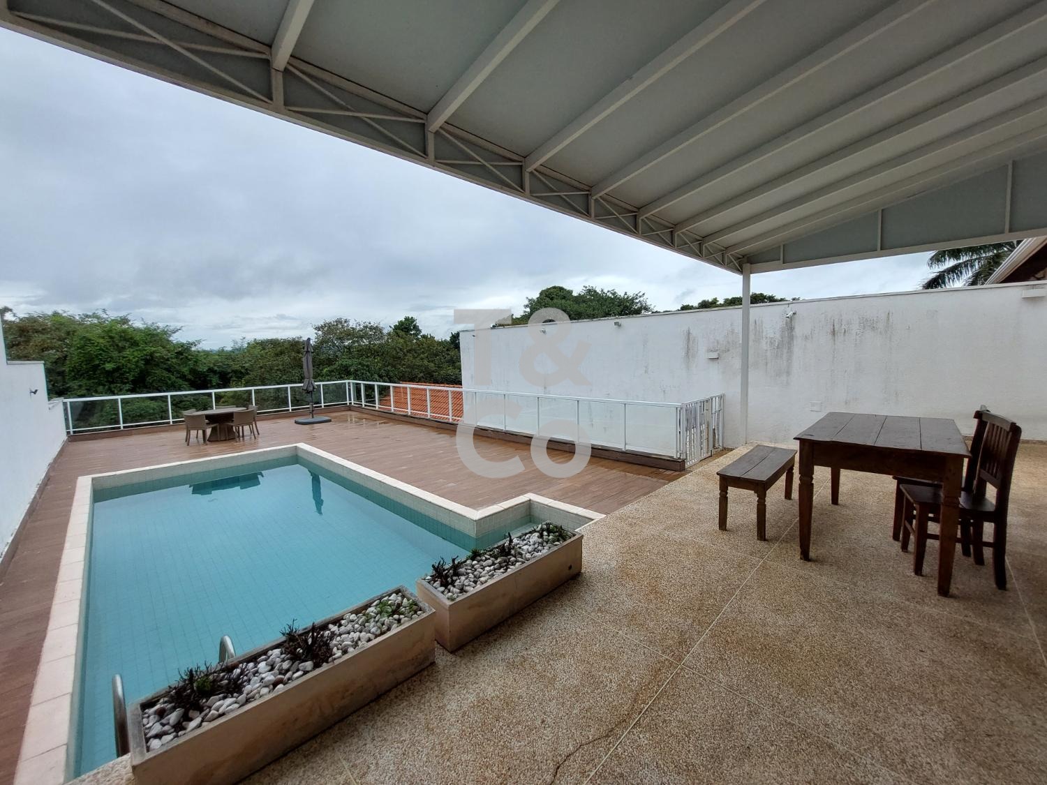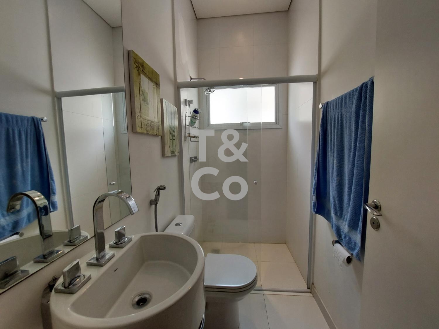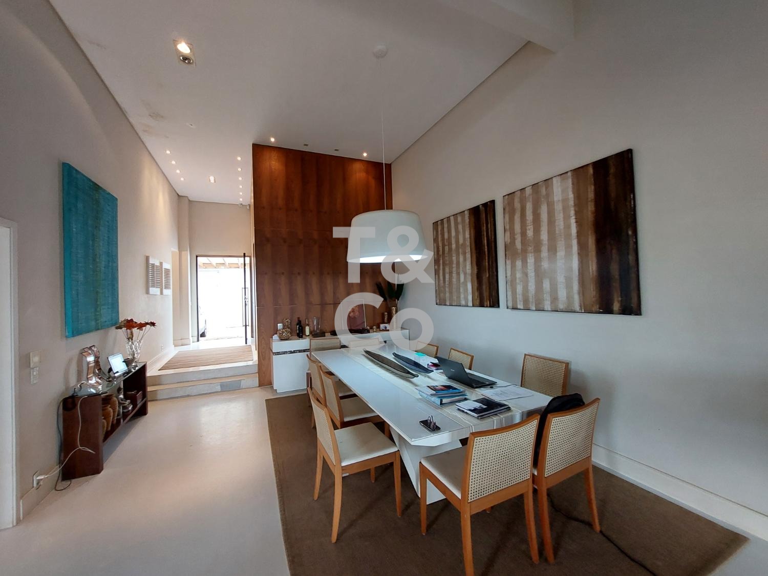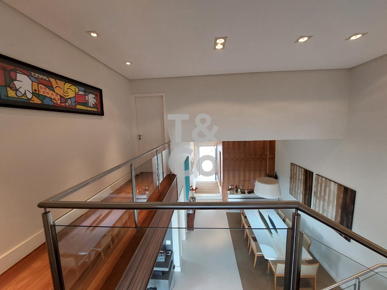 Esta casa surpreende pelo design elegante e pelos acabamentos de alto padrão. O living com pé-direito duplo integra vários ambientes com sofisticação. A cozinha Kitchens, equipada com bancada em Corian e armários Kitchens e Ornare, oferece funcionalidade e requinte.