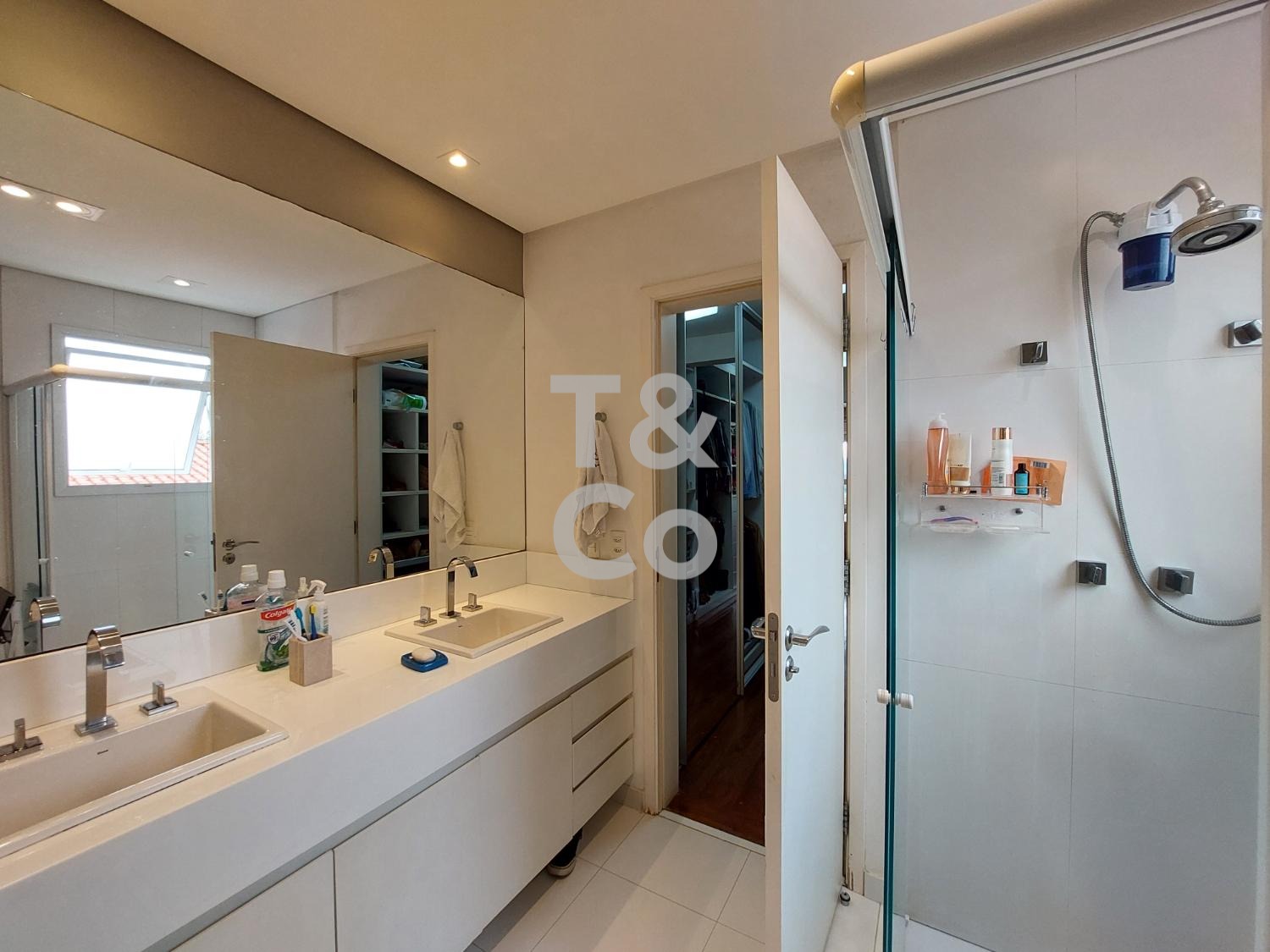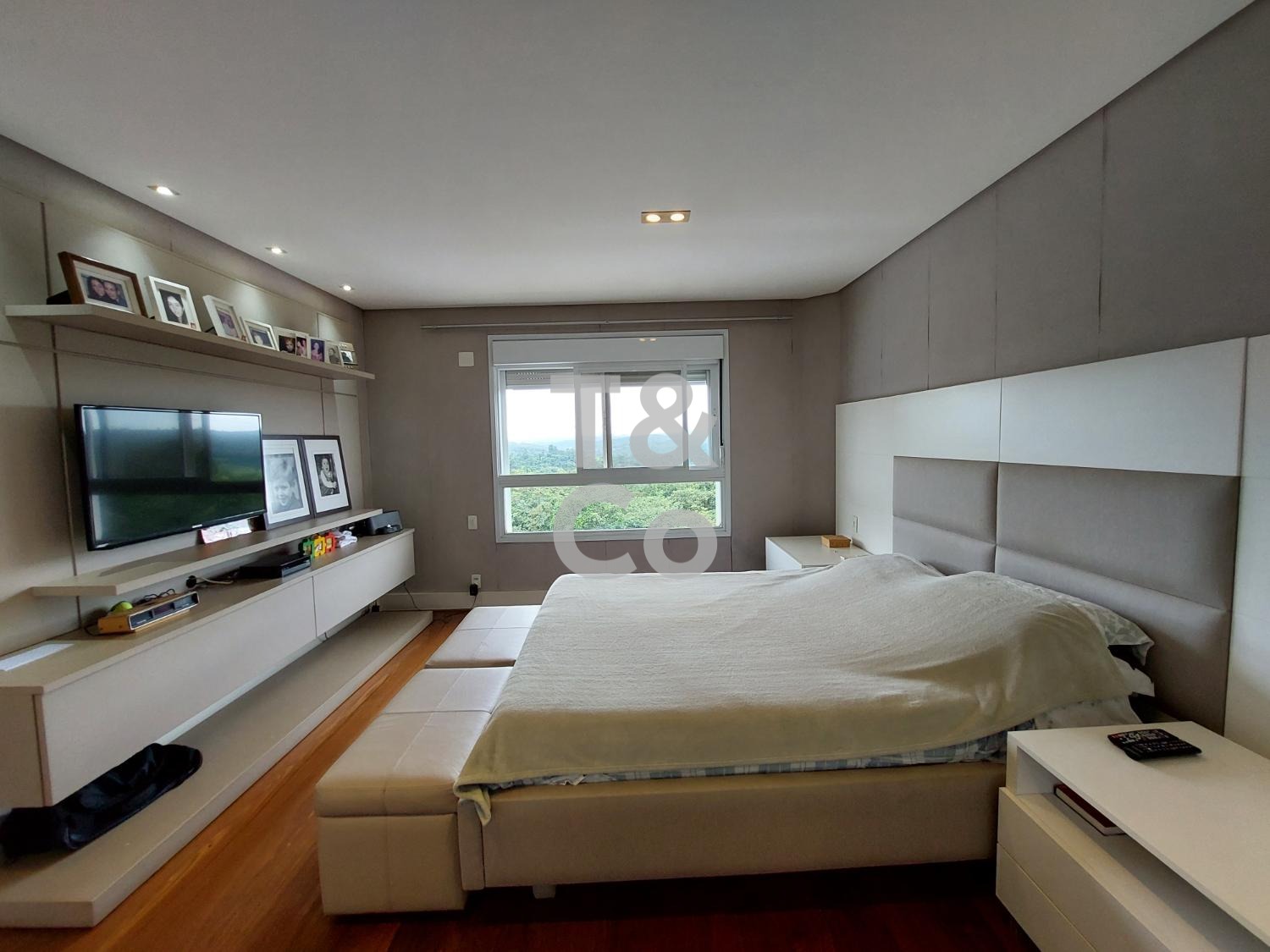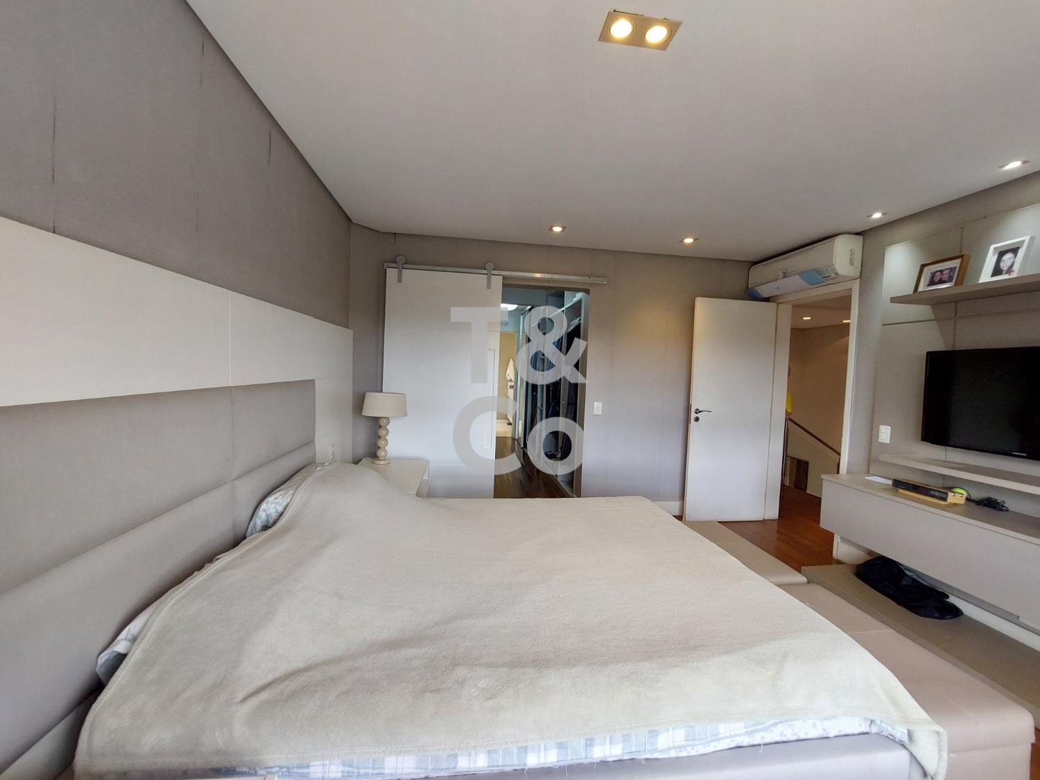 São 4 suítes espaçosas, sendo a principal com um amplo closet. O lazer é completo: sala de TV, espaço gourmet com churrasqueira e fornos, piscina aquecida, sauna e academia.
