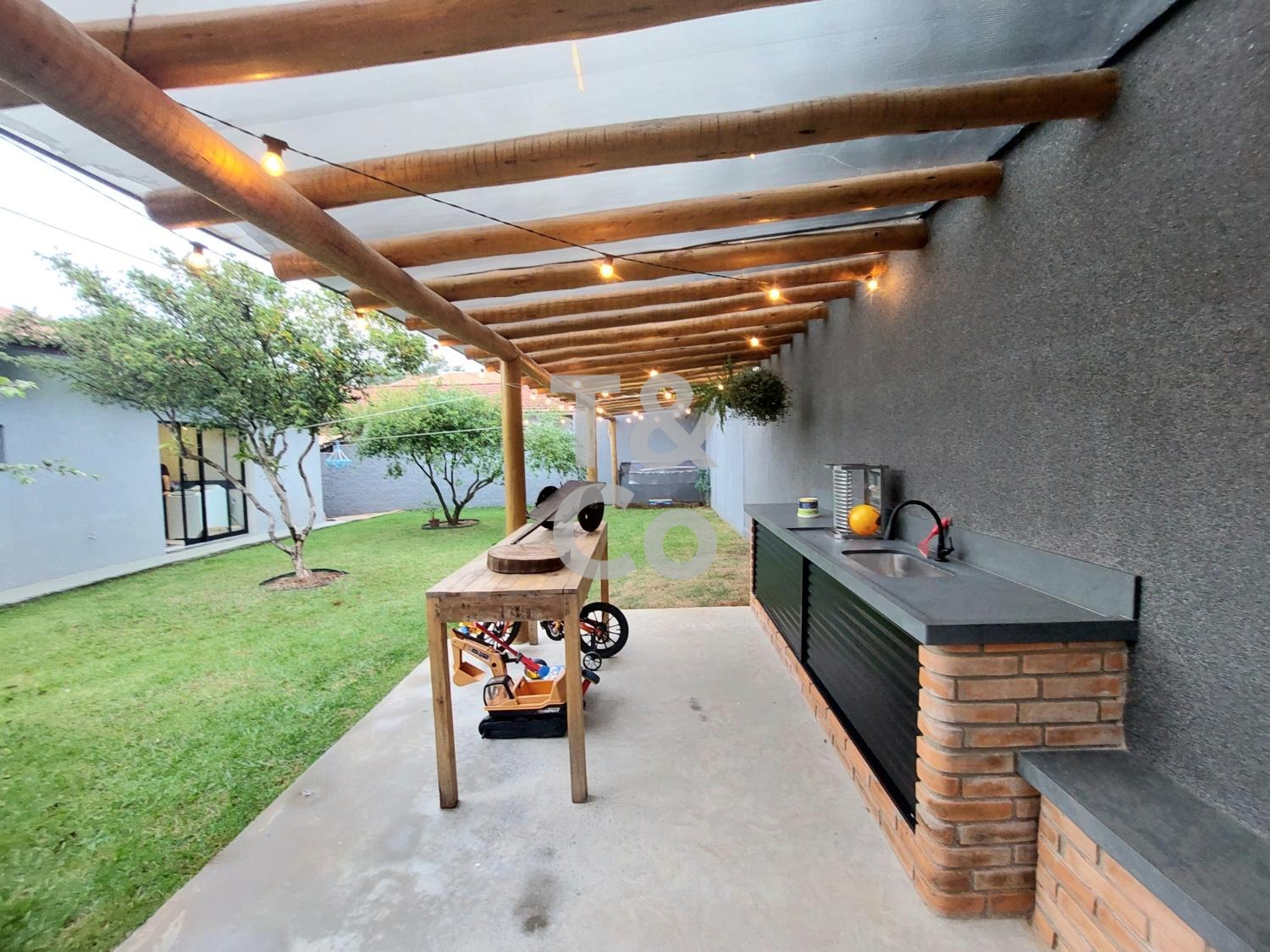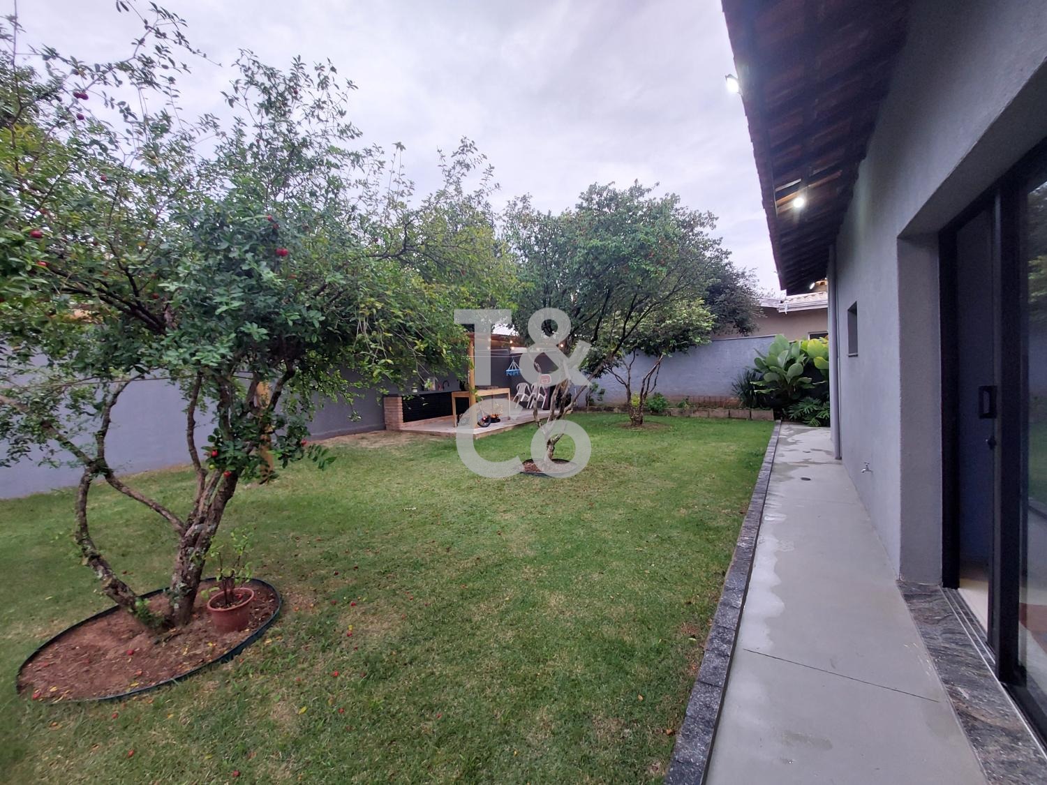 Quintal gramado com árvores frutíferas e pergolado, ideal para área gourmet.