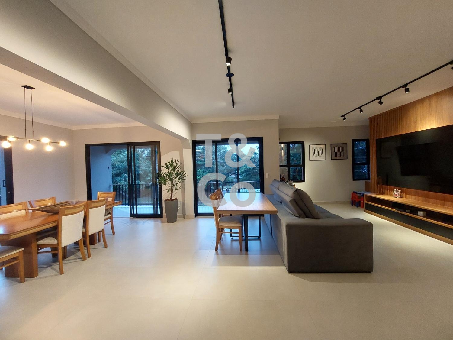 Repaginada, em rua tranquila e arborizada. No piso superior, todos os ambientes principais são distribuídos de forma linear, sem escadas: living amplo integrado à cozinha planejada, sacada com vista para área de preservação.
