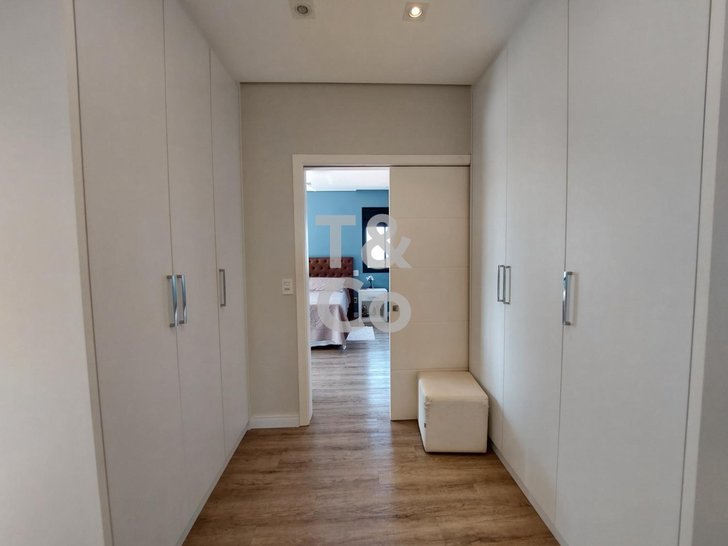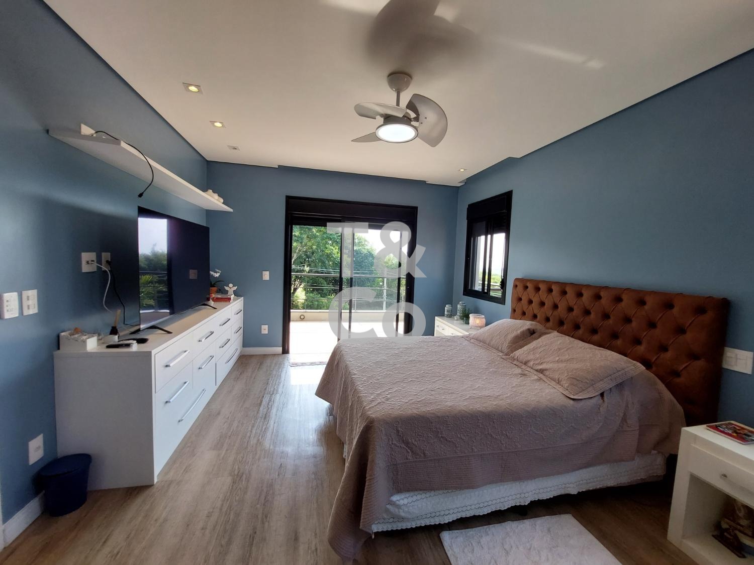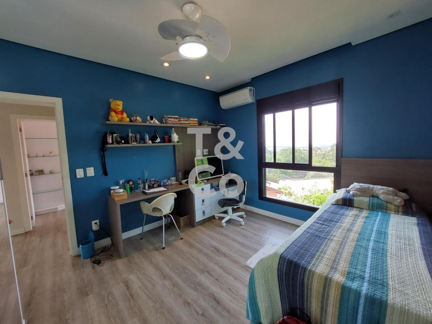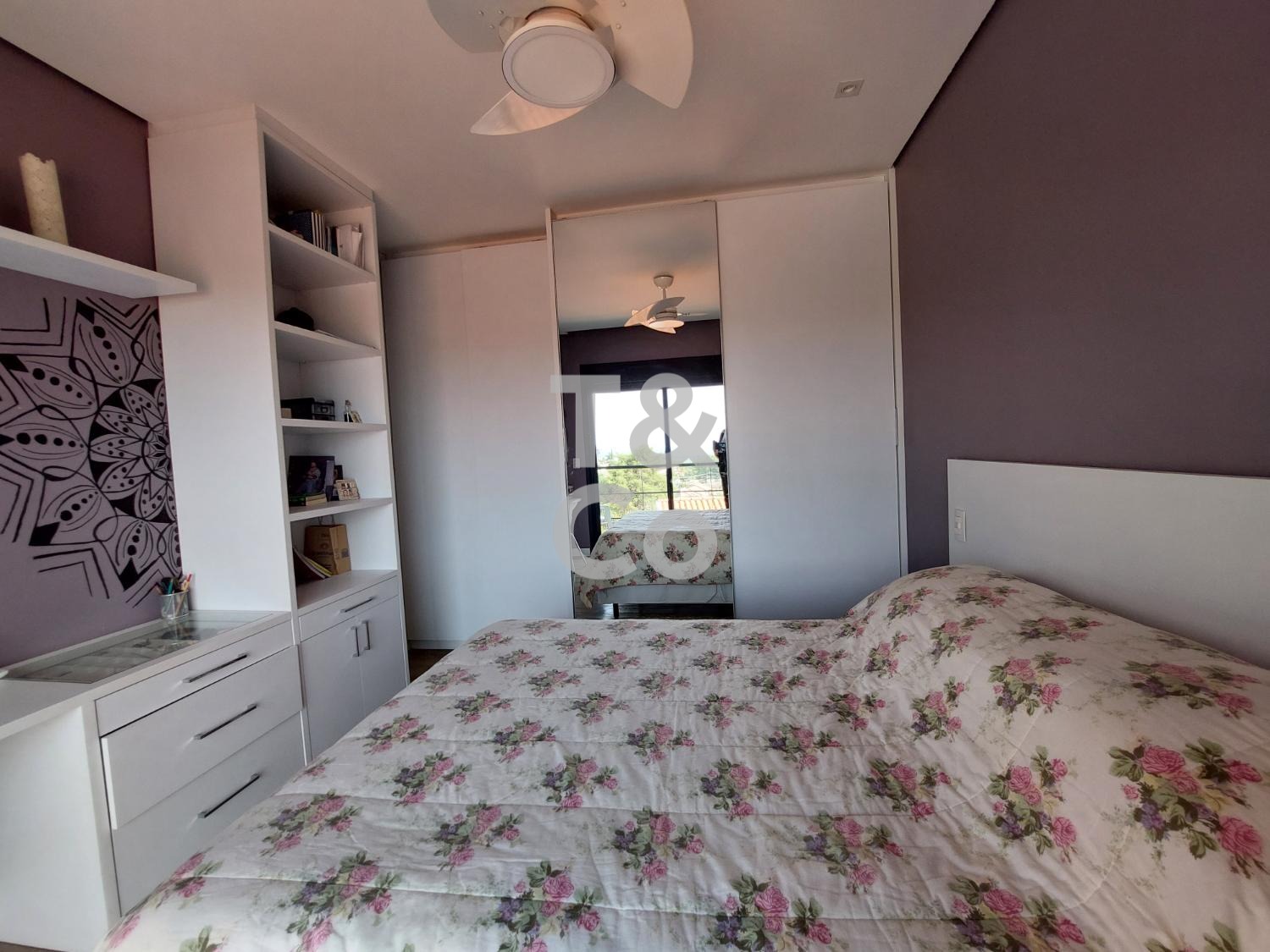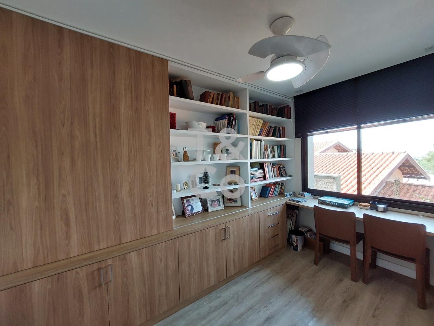 No pavimento superior estão os espaços íntimos: a suíte máster conta com escritório, closet e sacada com vista permanente para a mata. Há ainda uma segunda suíte com sacada e mais dois dormitórios atendidos por um banheiro social. Todos os dormitórios possuem persianas motorizadas e aparelhos de ar-condicionado. O imóvel dispõe de aquecimento solar e é rico em armários planejados, oferecendo praticidade e conforto no dia a dia.