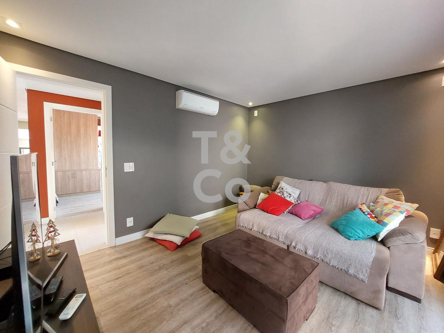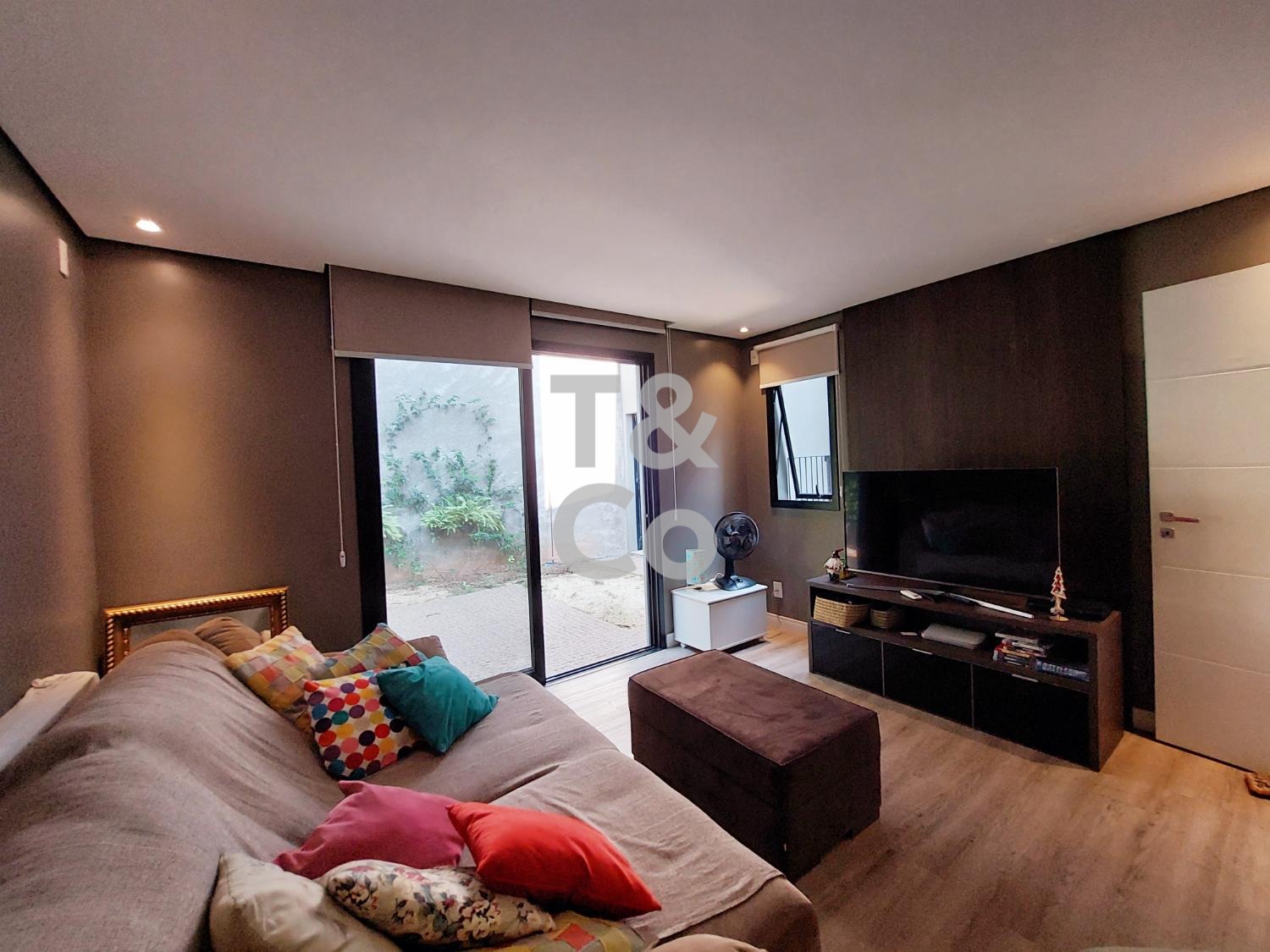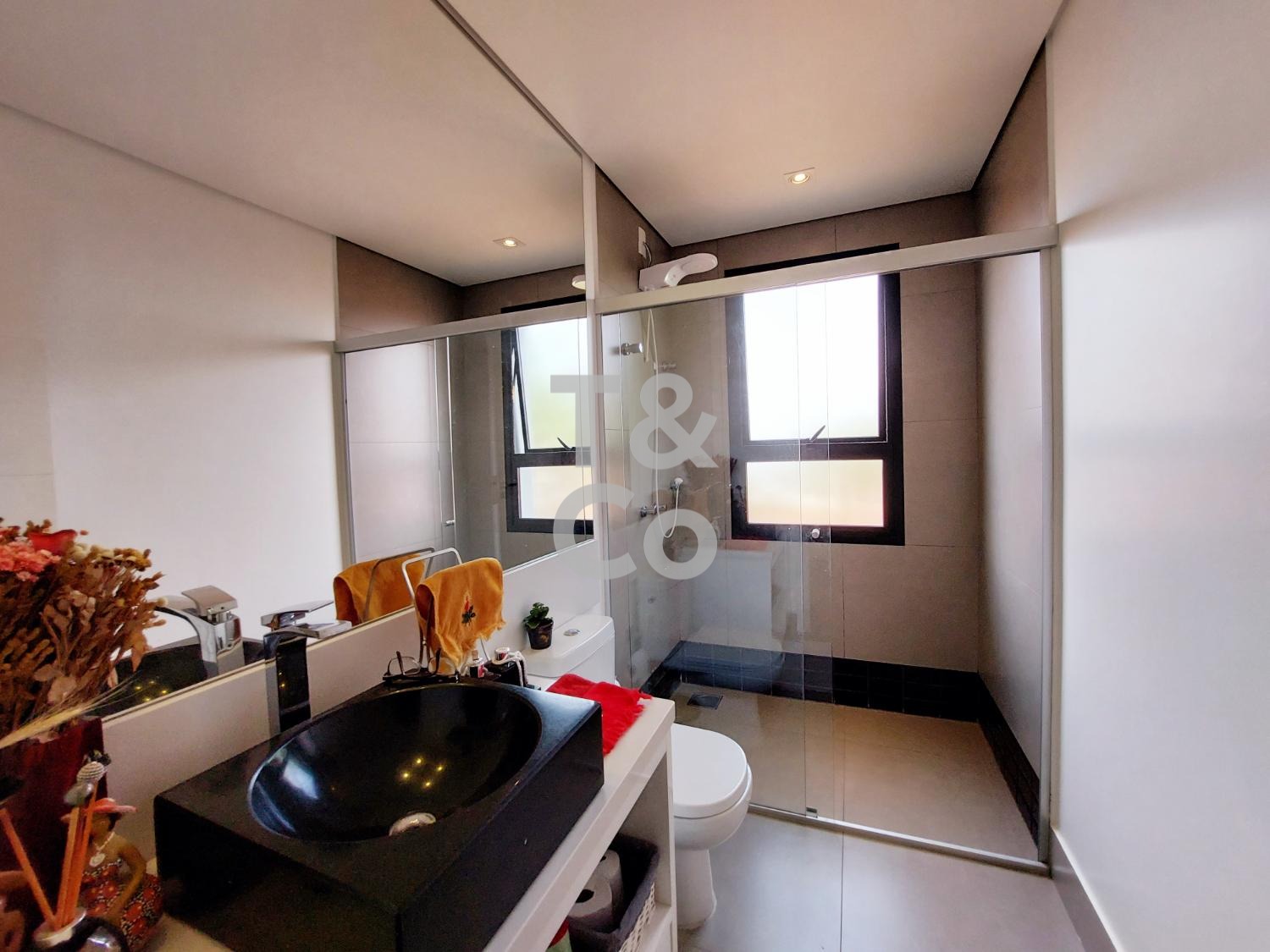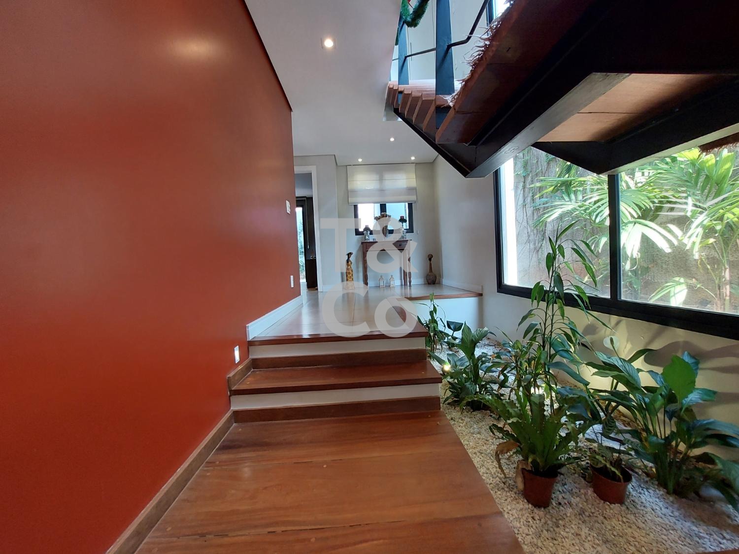 No pavimento superior estão os espaços íntimos: a suíte máster conta com escritório, closet e sacada com vista permanente para a mata. Há ainda uma segunda suíte com sacada e mais dois dormitórios atendidos por um banheiro social. Todos os dormitórios possuem persianas motorizadas e aparelhos de ar-condicionado. O imóvel dispõe de aquecimento solar e é rico em armários planejados, oferecendo praticidade e conforto no dia a dia.