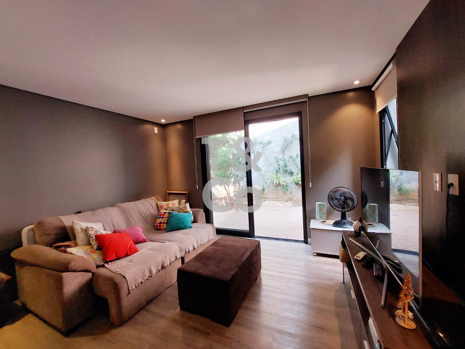 O living é amplo e integrado à cozinha planejada e à área gourmet, criando um ambiente social em conceito aberto com acesso direto à área de lazer. A área externa conta com uma convidativa piscina aquecida com spa e ducha, ideal para relaxamento e convivência. Um banheiro completo atende ao espaço gourmet e à piscina. A casa possui ainda sala de TV, escritório (reversível para suíte), banheiro social, área de serviço, despensa e depósito.