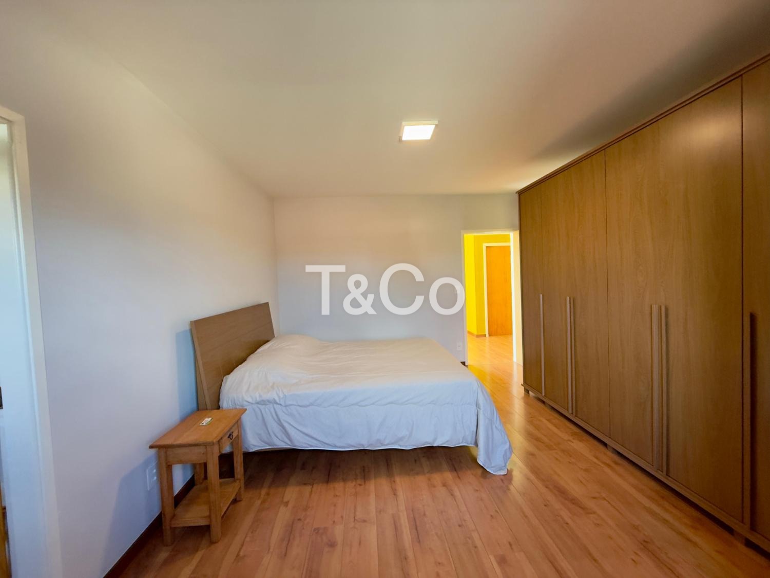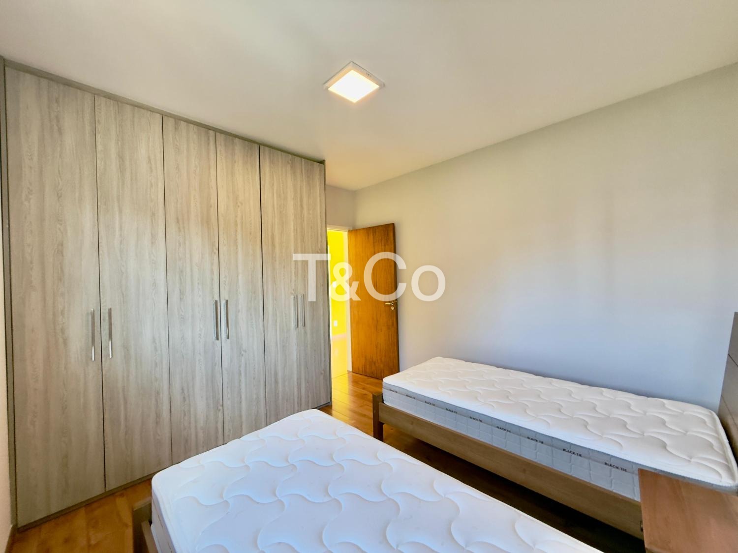 No piso superior, são três dormitórios, sendo uma suíte, além de banheiro social.