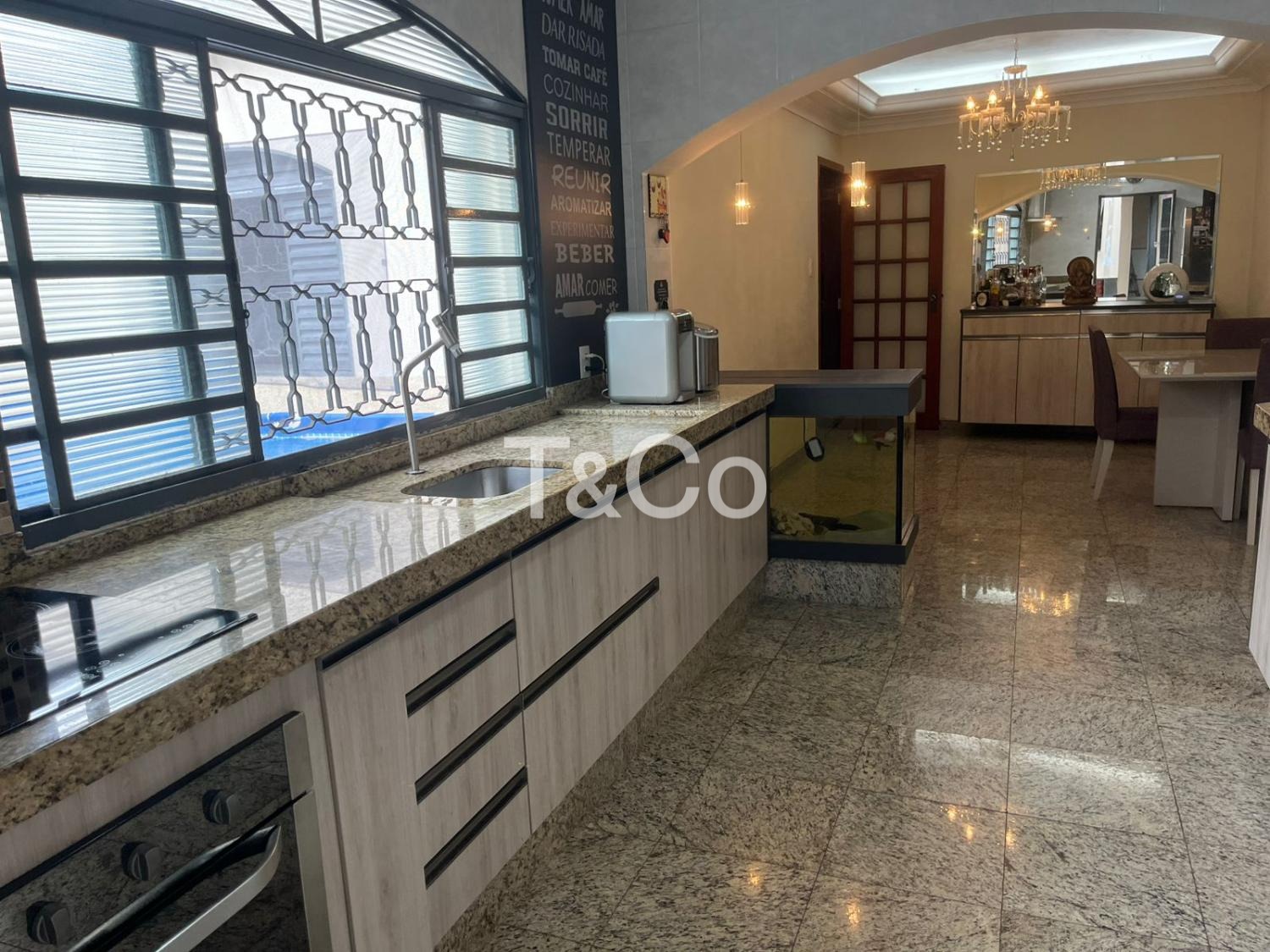 Residência nova, restilizada, cozinha com conceito aberto, permitindo entrada de luz natural e circuação de ar natural.