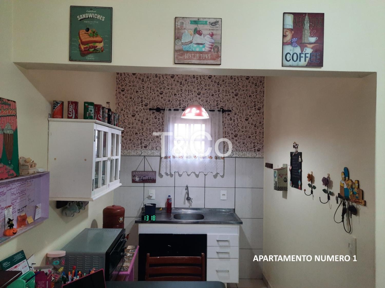 Casa principal: sala para dois ambientes (estar e jantar), duas suítes, cozinha planejada, despensa, lavanderia e lavabo.