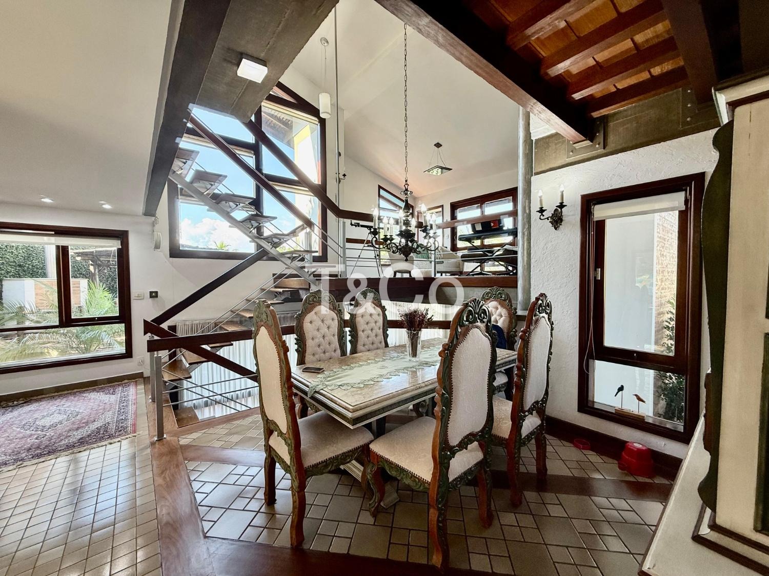 Casa com três pavimentos integrados e projeto que combina detalhes rústicos e modernos, com muitos vidros, o que proporciona excelente iluminação natural, ventilação e integração entre os ambientes.