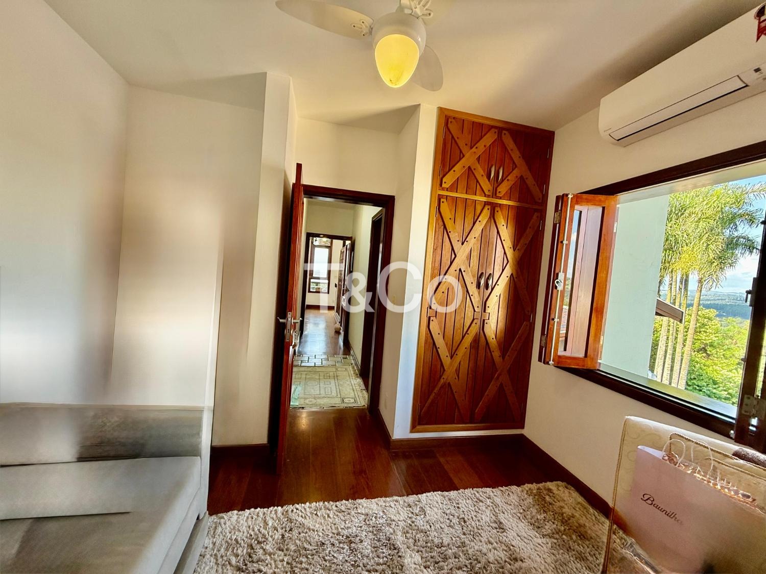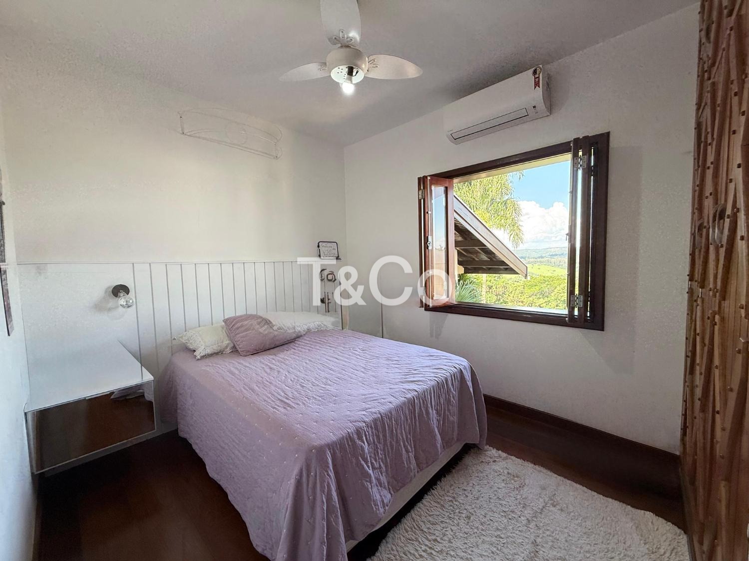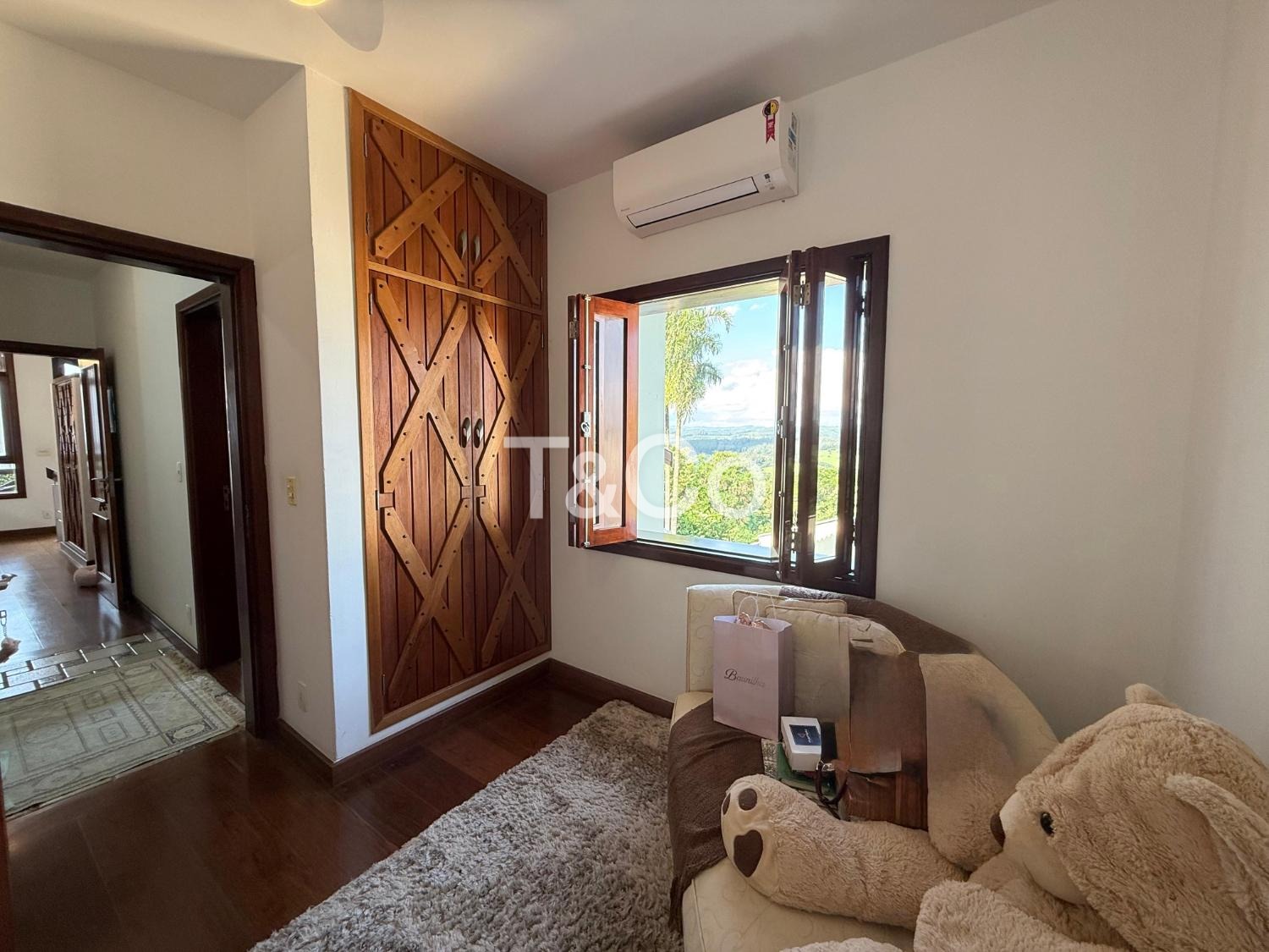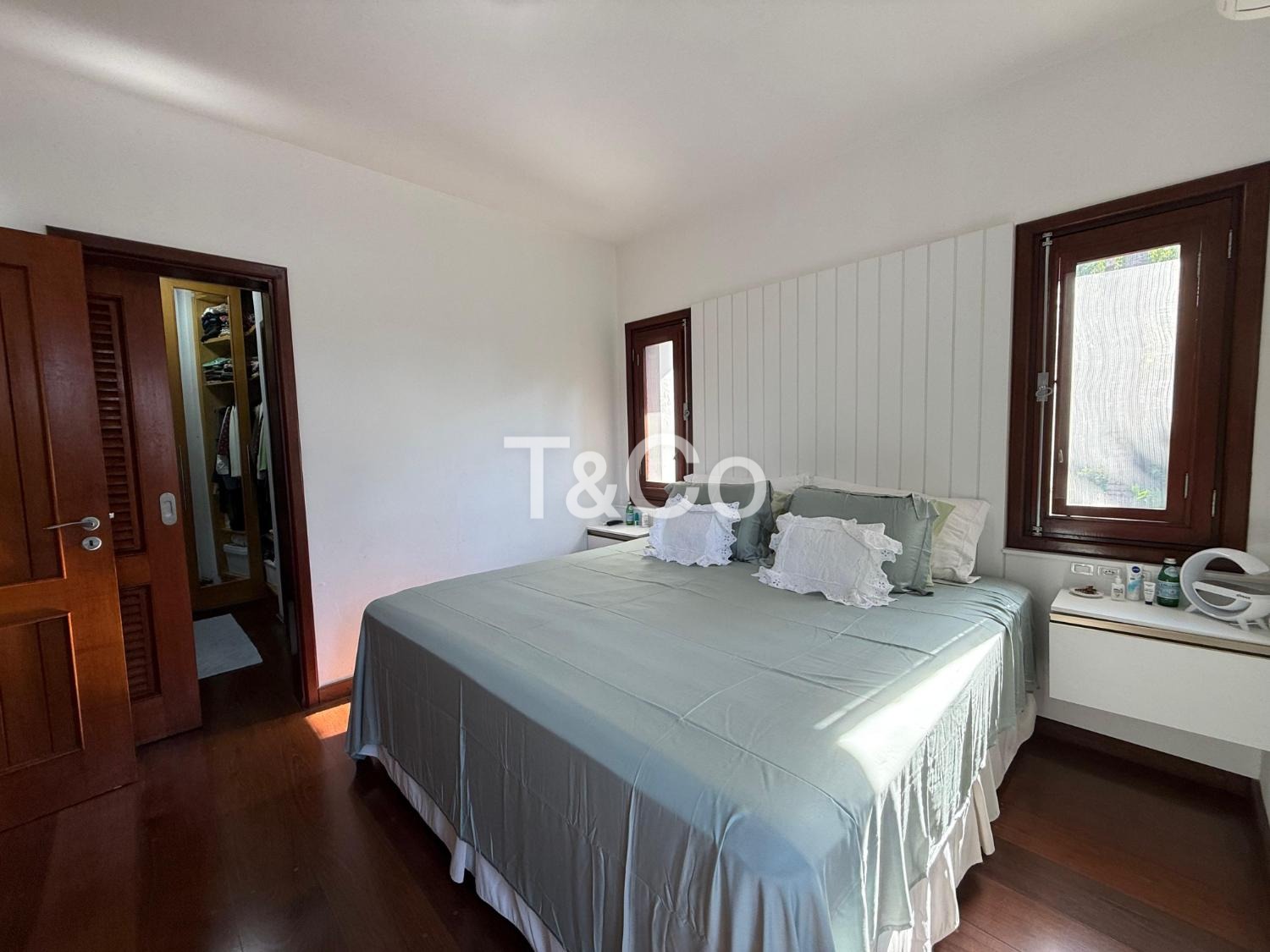 O imóvel oferece conforto e estrutura com sala de TV com lareira, adega e ar-condicionado em todos os ambientes.